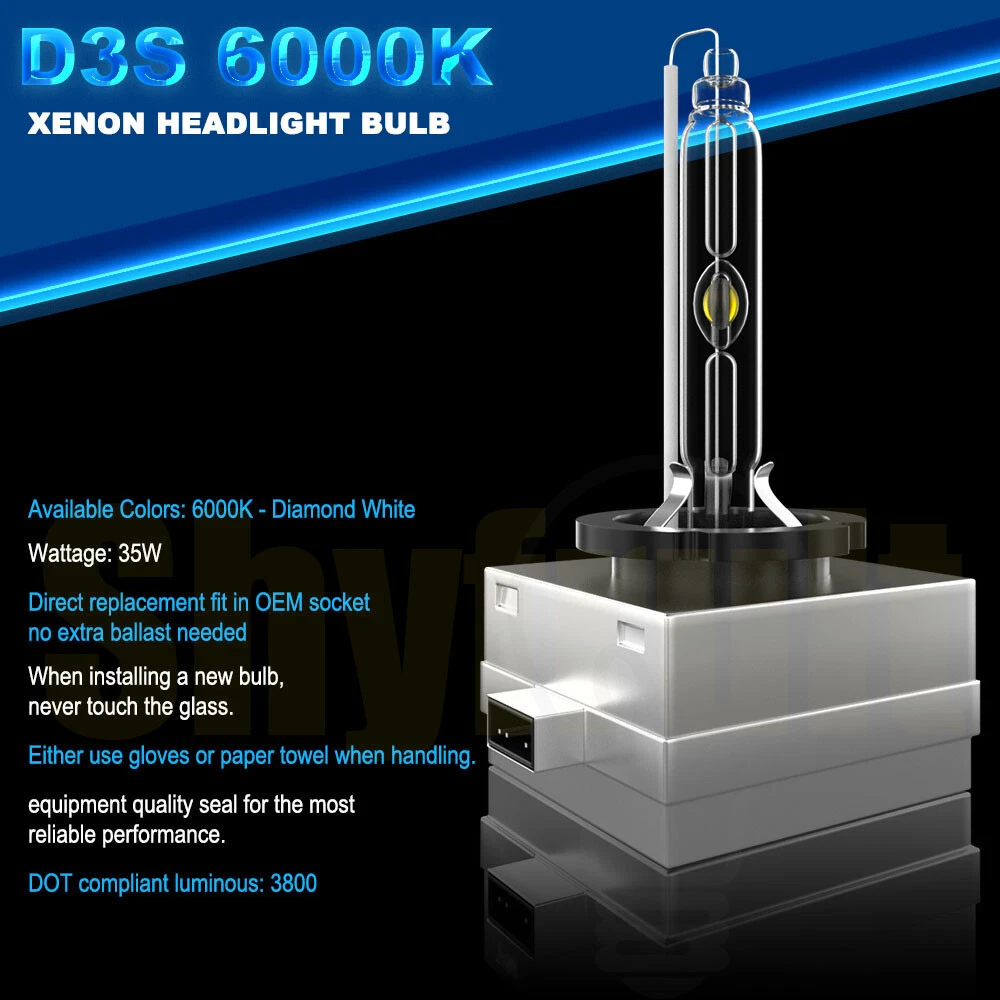 Note: wholesale!!! Products can be wholesale!!! If you have any needs, please send us a message to contact us. Information: a)Compatible List can not show up all Car model. Please check the Correct item size of your vechicle. it will work and fit.Thank you! b)If you are unsure the item fit or not , please do remember send message to tell us your car make, model, year and other information which is helpful to check the item fit or not. For example: For 2004 Ford F 150, high/low beam For 2015 RAM 1500 with projector-type, high beam For 2019 Ford F 150 ,XL Crew Cab Pickup 4-Door 2.7L Specification: Low power consumption and long lifespan Waterproof and dustproof HID Simple to install With enhanced durability and shock resistance You can see more clearly when driving at night Enhance driving safety Color temperature:6000K-6500K Light Color: White Power: 35W/pcs Type: D1S Operating Voltage: 9-32VDC Waterproof Rate: IP 68 Iuminous Flux: 3800LM/pcs Life span: 50000 hours Body Color:Silver Working Temperature: -40℃ - +80℃ Compatibility: Car, motorcycle, electric motor car Package Includes 2pcs 35W HID Xenon Light Bulbs New and old packaging will be shipped randomly Xenon light is a real highlight for all drivers looking for high performance and stylish design packed with special features and innovative technology. In addition to many other benefits, xenon technology achieves excellent road illumination as well as individual light design. Feedback As we are honest seller,we live on feedback ,so your positive feedback and 5-star DSRs means a lot to us. We would very much appreciate it if you would leave us a 5-star positive feedback. After service Notification: If you are satisfied with our product and service please leave us a positive feedback,if there is any problem when you received the package,please feel free to contact us,we will be definitely give you a satisfying solution,when you choose the return reason .please choose the reason"i don't like it". by this option we will accept your return immediately and provide return label for full refund. the others reason to return will take both of us many troubles to handle.