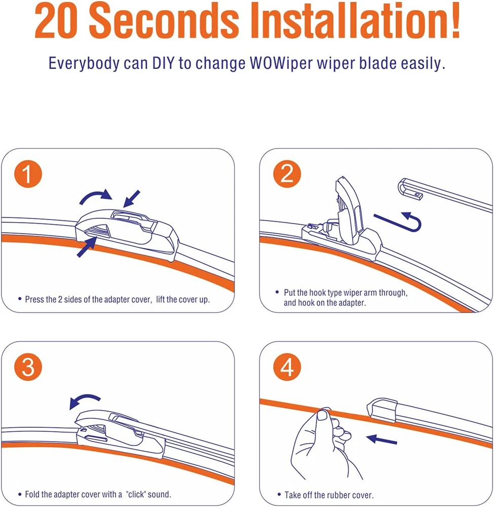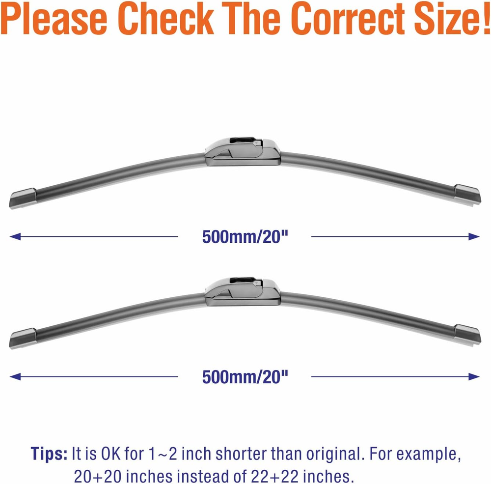 Store New Arrivals Add to Favorite View Feedback Contact Wiper Blades 20" + 20" Automotive Windshield Wiper Blades for My Car Premium All-Seasons OE Quality Wipers for Front Windshield(Set of 2) Description Item model number 20"+20" Style Front(U/J-Hook) Fit Type Vehicle Specific Fit Seasons Autumn, Winter, Spring Mounting Type Hook OEM Part Number function(f) {var _np=(window.P._namespace("DetailPageProductOverviewTemplatesJava"));if(_np.guardFatal){_np.guardFatal(f)(_np);}else{f(_np);}}(function(P) { P.when('A').execute(function(A){ A.on('a:truncate:po-attribute-truncate-4:updated', function(data) { var isTruncated = !data.truncateInstance.getIfTextFits(); var seeMoreElement = document.getElementById('po-attribute-see-more-id-4'); if(seeMoreElement) { seeMoreElement.style.display = isTruncated ? '' : 'none'; } }) }); })); Bosch ICON 20A 20A, Goodyear Assurance WeatherReady 20 Inch & 20 Inch, K&N EDGE 20" + 20", Rain-X 5079277-2 Latitude, TRICO Gold 18-2020 See more Auto Part Position Front Material Natural Rubber, Alloy Steel, Plastic, Metal, Acrylonitrile Butadiene Styrene (ABS) See more Country of Origin China Manufacturer Part Number 542020 Vehicle Service Type Bus, Van, SUV, Pickup, Car, Truck Item Weight 9.1 ounces Item Length 20 Inches Exterior Polished Model Beam Basic - B01 Special Features Metal Base Size 20"+20" 【METAL BASE FOR SUPER SOLID】With the unique metal base, WOWIPER front wiper blades will Never be broken, Never fall off, Never be disjointed. 【NO WATER REPELLENCY】Many streak, jitter, blur, noise are caused by Water Repellency treatment. Please wash off such treatment on your windshield before using new wiper blades. 【OE QUALITY MATERIALS】The rubber, spring, adapters, clips, spoiler of WOWIPER windshield wiper blades are same as OE, 50% better than OEM level. 【DOUBLE CHECK THE SPECIFICATION】Wiper Arm type: ½" & ¾" J Hook; Length: 20" +20" (Set of 2pcs) 【1 YEAR QUALITY WARAANTY】We offer unconditional warranty for 60 days, 30 days more extended from official, together with 1 year quality warranty. Enjoy! Product Description Reliable Quality! Long Life Our Windshield Wipers passed the test of 1,500,000 times wiping test, equals about 1 year life. For quality issue, you can claim for in 1 year. Metal Base Our Beam Blades use Metal Base, not plastic, which are stable in all conditions, no need to worry about to be broken or to be disjointed. Many other wipers are easy to broken, because they use plastic base. Stable End Clips The end clips are using high quality POM plastic, can hold the springs / wiper body firmly. Don't worry about to be fallen off. Silence Performance After more than 30 years R&D, our rubber are improved to be working smooth on windshields quietly. Don't wiper without any water/rain. It's better to clear Water Repellency treatment before use. Snow Weather Please use the washer fluid before wiping the snow directly, to avoid the sharp ice broken the rubber, or scratch the windshield. Heavy Rain We will be your reliable friend in heavy rain, to keep you seeing well. High Speed The wiper is designed to wiping perfectly even in 120 MPH. Very Hot Weather The rubber keeps performance up to 150 °F. Snow Weather Heavy Rain High Speed Very Hot Weather High Technology Spring, Fits Different Windshields Flat Windshield The spring is designed to fit different curve of windshield. Curved Windshield The material is different from OE wipers, because OE wipers only need to fit 1 kind of windshield. Very Curved Windshield On some special cars, they have a straight curve near the windshield frame, in this case, it is better to use 1 inch shorter than original. ABOUT US We offer the best prices around on high quality products. Our E-store includes media such as books, movies, music and games while offering electronics, toys, sporting apparel, clothing, tools, general home, garden items and more. SHIPPING We are always working hard to ensure your package arrives as soon as possible. Please understand that some factors like weather, high postal traffic, and the performance of shipping companies are outside of our control. We offer free shipping to the lower 48 states and ship within 2 business days of payment, usually sooner. We do not accept P.O. Boxes. Please provide a physical address. For shipping outside of the continental USA, we only use eBay's Global Shipping Program.The item is shipped to KY and then sent to the rest of the world. International customers are responsible for all duties and taxes. Continue to check out in order to calculate costs for shipping the item to your country. Messages regarding eBay's Global Shipping Program MUST be directed at eBay EXCLUSIVELY. RETURNS We offer a 30-Day Return Policy on items which you are not completely satisfied with. You have the option for a full-refund or an exchange of the item. No returns are available on items shipped outside of the USA. PAYMENT We accept PayPal. CONTACT US This page content is yet to come Please ad us to your favorite seller and visit again later Thank You CUSTOMER SATISFACTION We try our very best to make sure every customer is completely satisfied. If there's a problem, message us! We're happy to help. WE ACCEPT Copyright © 2021 AutoDS. | All Rights Reserved