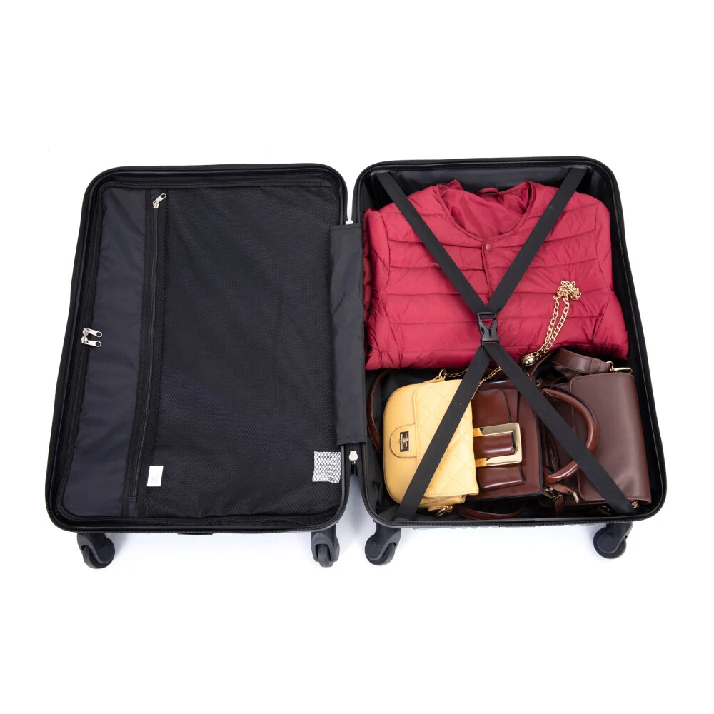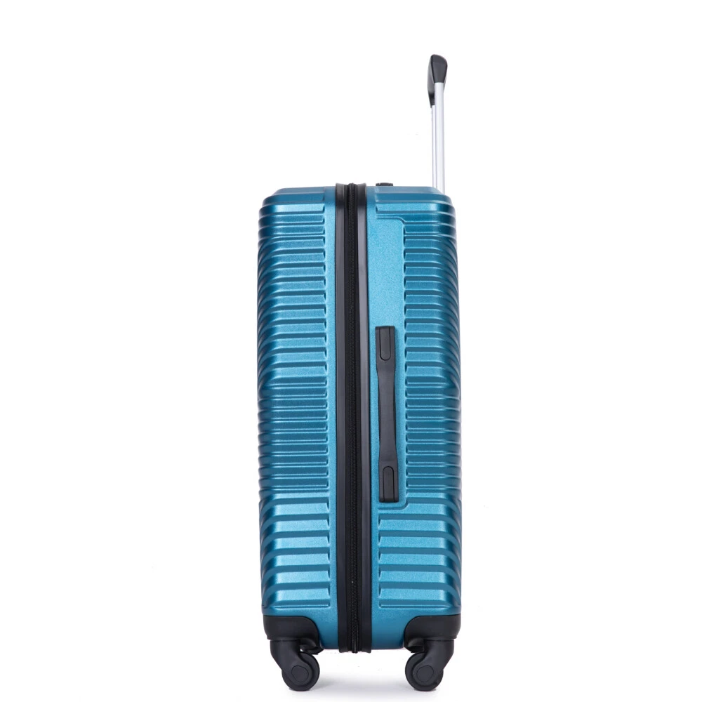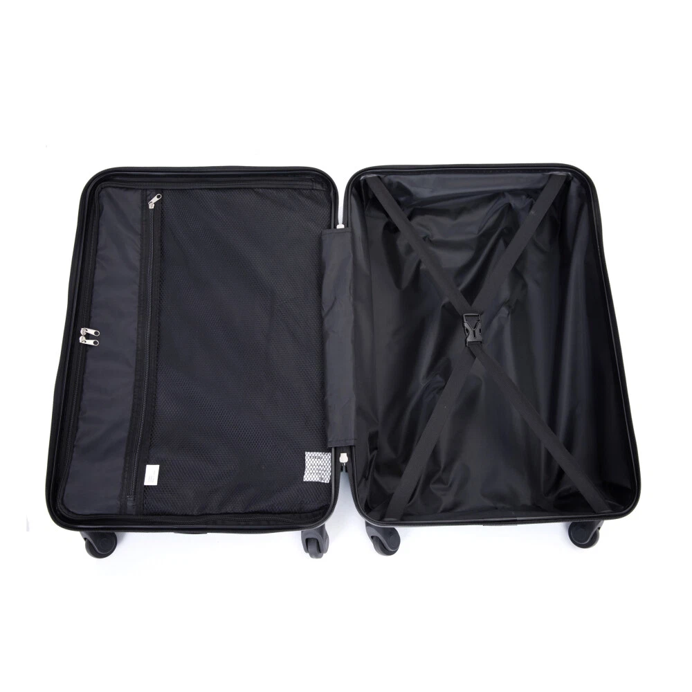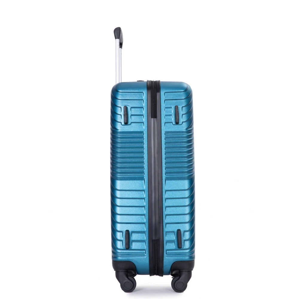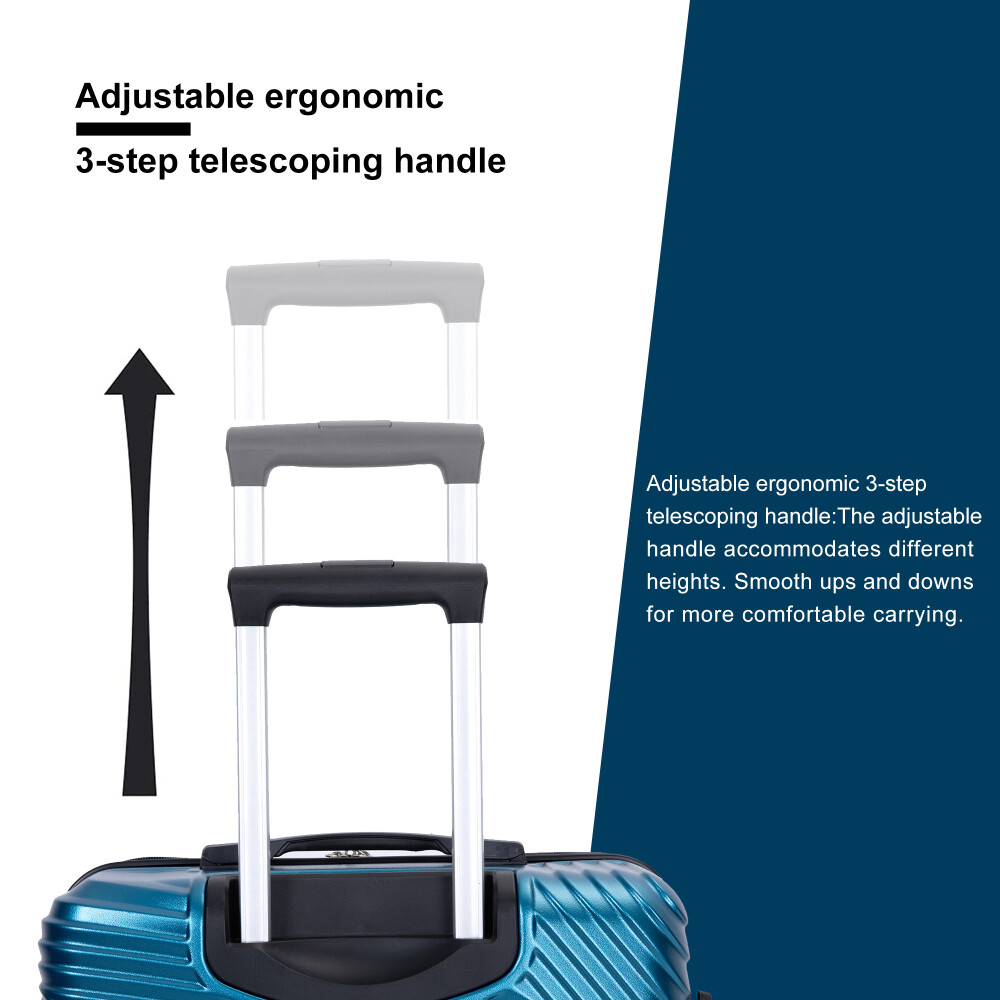 3 Piece Luggage Sets PC+ABS Lightweight Suitcase with Two Hooks, Spinner Wheels, (20/24/28) Product Features Appearance and Material: PC+ABS material makes the luggage more durable, lighter and impact-resistant. Electronic pattern with bright color makes the luggage metallic and textured, which can show off your individuality. Adjustable Ergonomic Pull Rod: The adjustable pull rod accommodates different heights. Smooth ups and downs for more comfortable carrying. Comfortable Telescoping Handles: Top and side handles. 24" and 28" have 2 side soakers with hooks on top for hanging items and 2 regular side soakers on the bottom. They can prevent the sides of the luggage from rubbing on the ground. Organized and Spacious Interior: The fully lined luggage includes a handy divider and an interior organizer with zippered pocket for smaller items. The internal tightening fixing straps can be adjusted to fix items according to the amount of items. Smooth Wheels: They can be adapted to a wide range of surfaces for easy and durable towing. Description Appearance and material PC+ABS material makes the luggage more durable, lighter and impact-resistant. Electronic pattern with bright color makes the luggage metallic and textured, which can show off your individuality. Pull Rod Adjustable ergonomic 3-step pull rod for more comfortable carrying. Handle Top and side handles. Interior Organized and spacious interior. Wheel Effortless maneuverability and strong bearing.