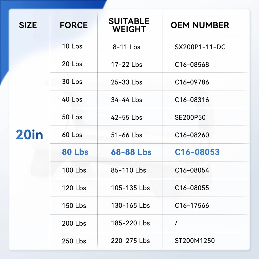 C16-08053 20 inch 80 lb Gas Strut Spring Shocks, 71794 20" 80 Pounds for Tanning Bed RV Bed Tonneau Cover Boat Hatch Engine Cover RV Basement Door Bed Cover Trap Door Jukebox Pistons, Pack of 2 Multi-scenario Usage: 20 inch 80 lb struts are widely used on rv queen size bed cover, motorhome bay door storage compartment door, tonneau cover, boat engine hood cover, large outdoor cabinet storage box lid, fiberglass topper, etc Interchange Number: attwood sl34-80-1, 71794, C1608053, C16-08053,4293,4293S10,SG359015, ML34-80 Direct Replacement: Extended length A (Center-to-Center): 19.7 inch, compressed length B (Center-to-Center): 11.8 inch; 80 Pounds per shock, 2 Shocks per Pair Precise Manufacturing: The gas struts sturdy, well-constructed and perform well, offering a controlled, gradual lift rather than a sudden jolt; With a 80lb capacity per strut, they provide enough support for heavy-duty lids Application Range: 20 inch spring will be suitable for heavy lids, with lid weight between 64-88 lbs, side length ≥ 32 inch, ensuring smooth lifting and secure hold; Note: do measure the lid weight or check the oem number to buy correct items Easy to Install: Installation was straightforward, requiring minimal tools, replaced just by loosening the clip, pop the new one into place, and click it on 18-Month Support: Every gas strut comes with 18 months replacement support, if any quality issues, buy wrong items or missing parts, please get in touch with team for in-time solution(No ball studs or mounting brackets included) [Function] -- This Set of 2pcs 20inch Gas Lift Spring Shocks could be used for rv queen size bed cover, motorhome bay door storage compartment door, tonneau cover, boat engine hood cover, large outdoor cabinet storage box lid, etc; Shipping We offer FREE shipping on all orders! We ship within Three business days of payment, usually sooner. We use a selection of shipping services such as UPS, FedEx, USPS etc. We only ship to the lower 48 states, no APO/FPO addresses or PO Boxes allowed. Local pickups and combined shipping options are not provided at this time. Return You can return a product for up to 30 days from the date you purchased it. Any product you return must be in the same condition you received it and in the original packaging. Please keep the receipt. Payment We accept payment by any of the following methods: PayPal Please pay as soon as possible after winning an auction, as that will allow us to post your item to you sooner! Feedback Customer satisfaction is very important to us. If you have any problem with your order, please contact us and we will do our best to make you satisfied. Contact Us If you have any queries, please contact us via ebay. We usually respond within 24 hours on weekdays. Please visit our eBay store to check out other items for sale! Thank you for shopping at our store.