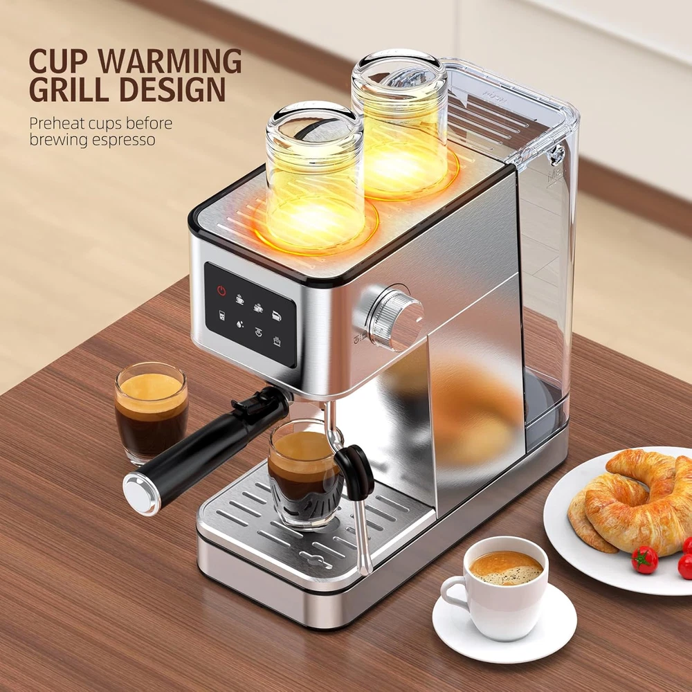 20 Bar Compact Espresso Machine with Milk Frother, Stainless Steel