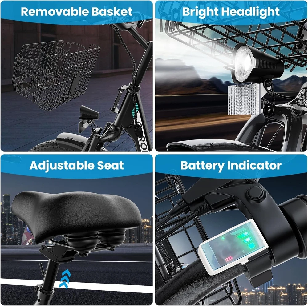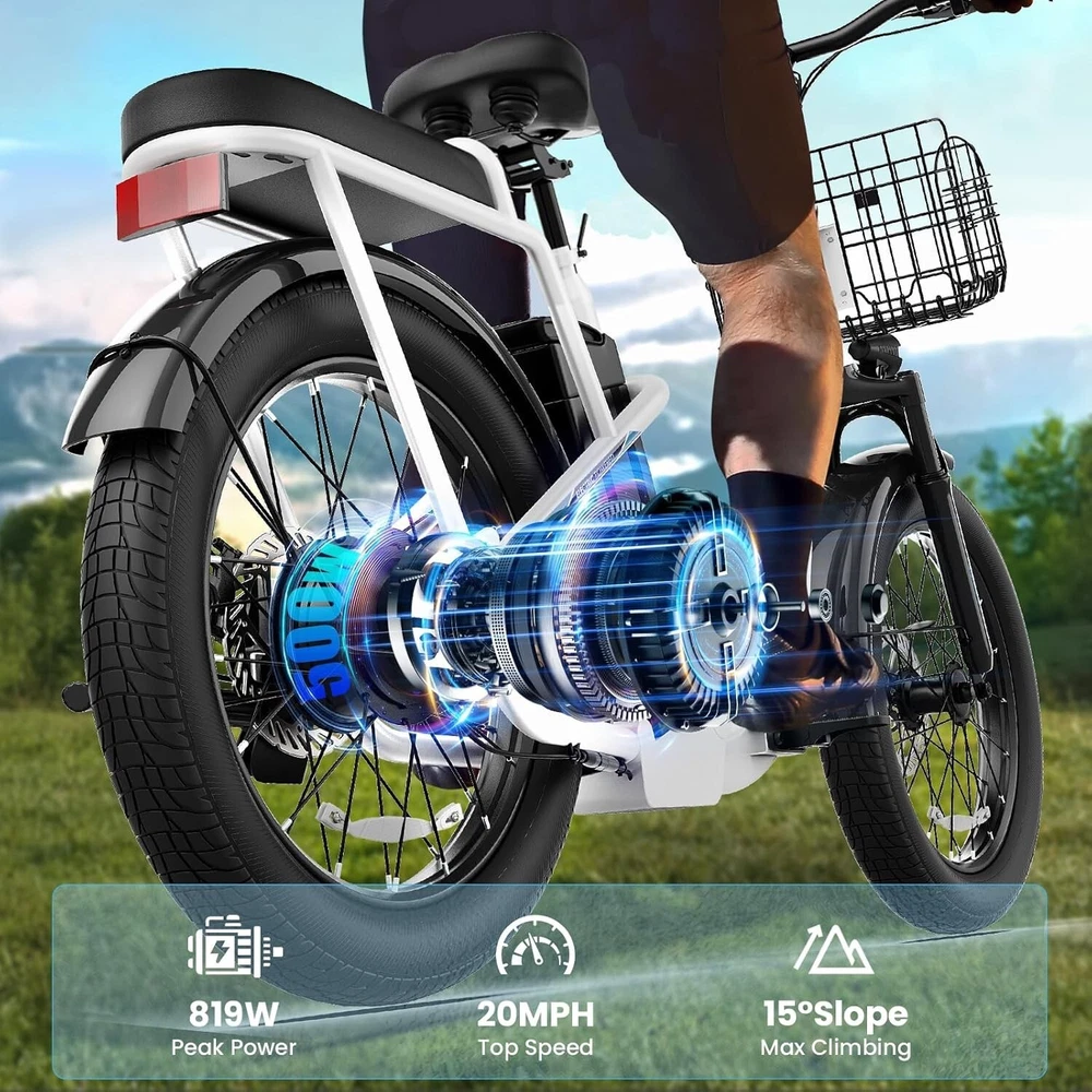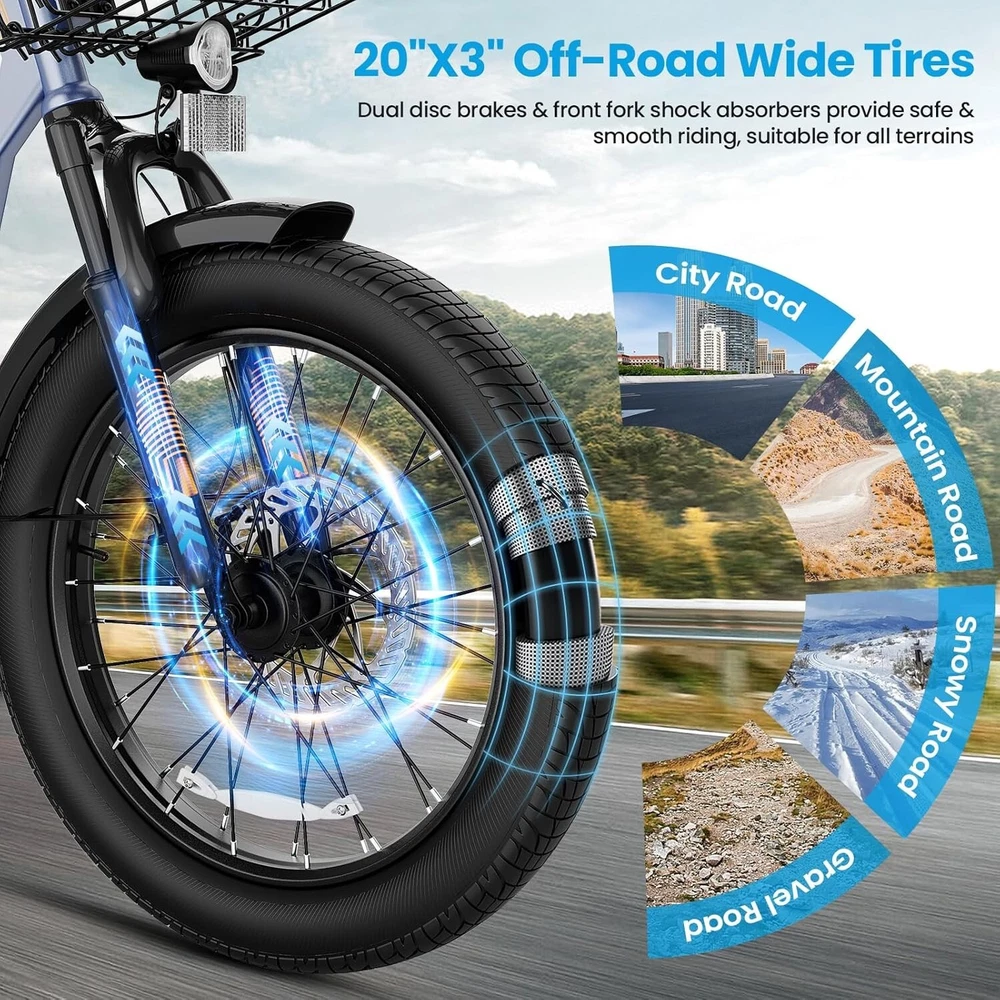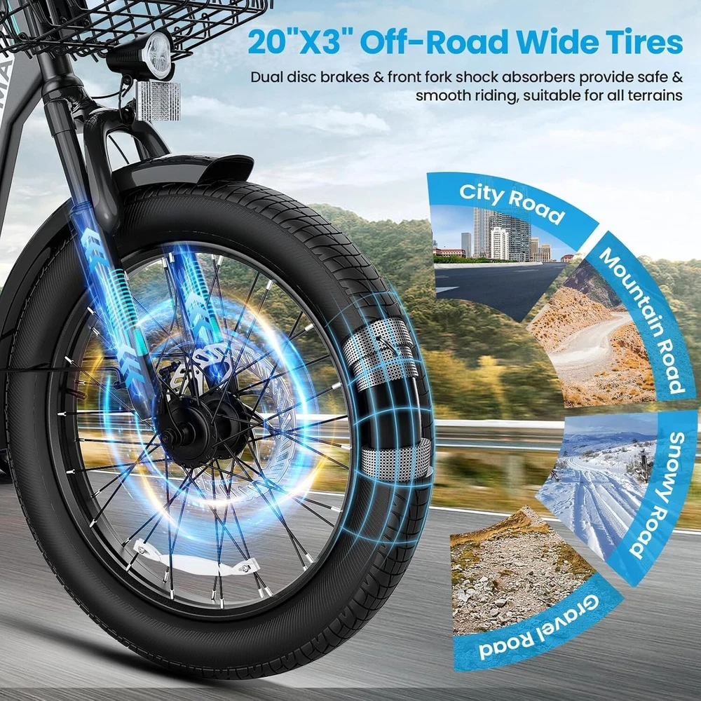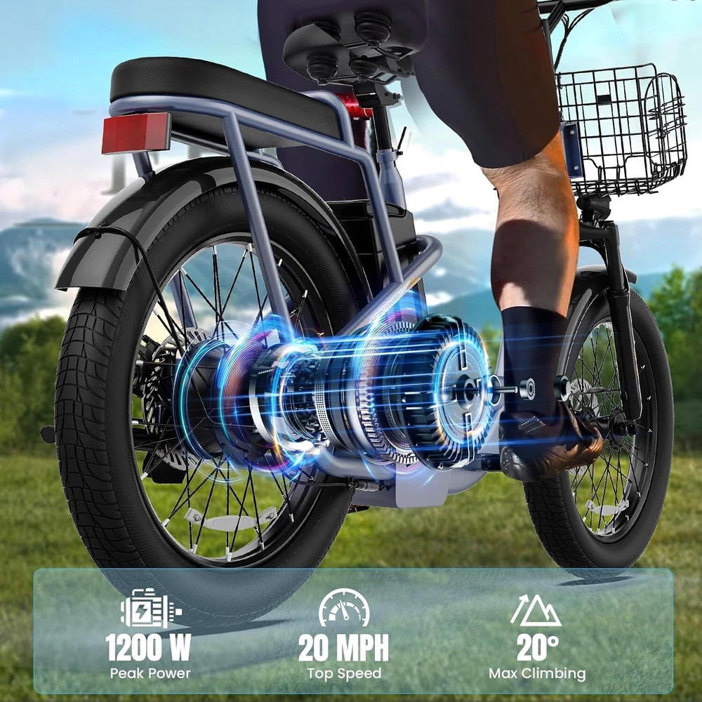 20" Fat Tire Electric Scooter with Seat & Basket Peak 1200W Commuter E Scooter~