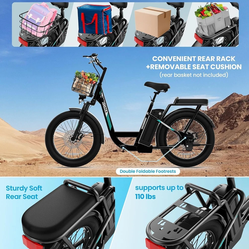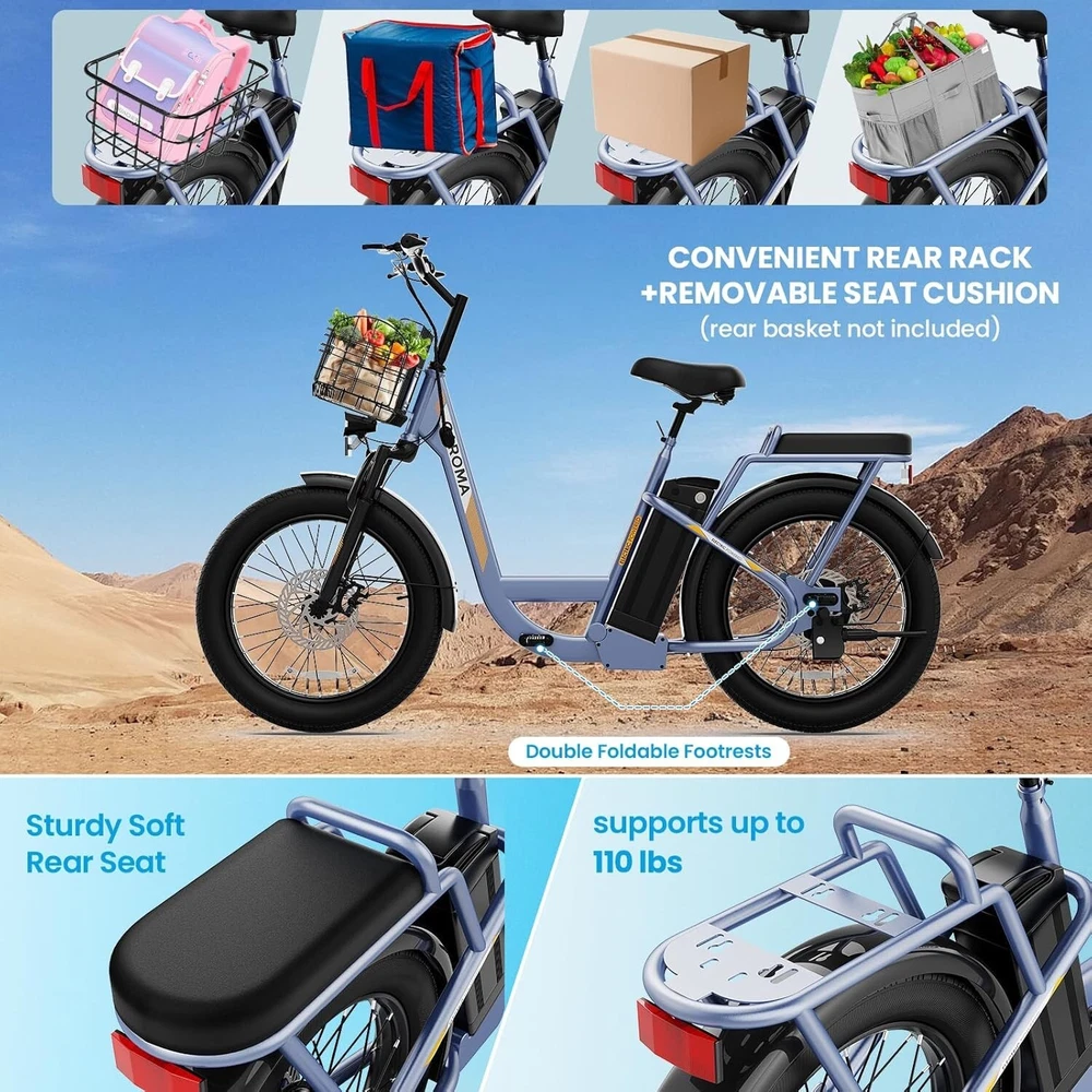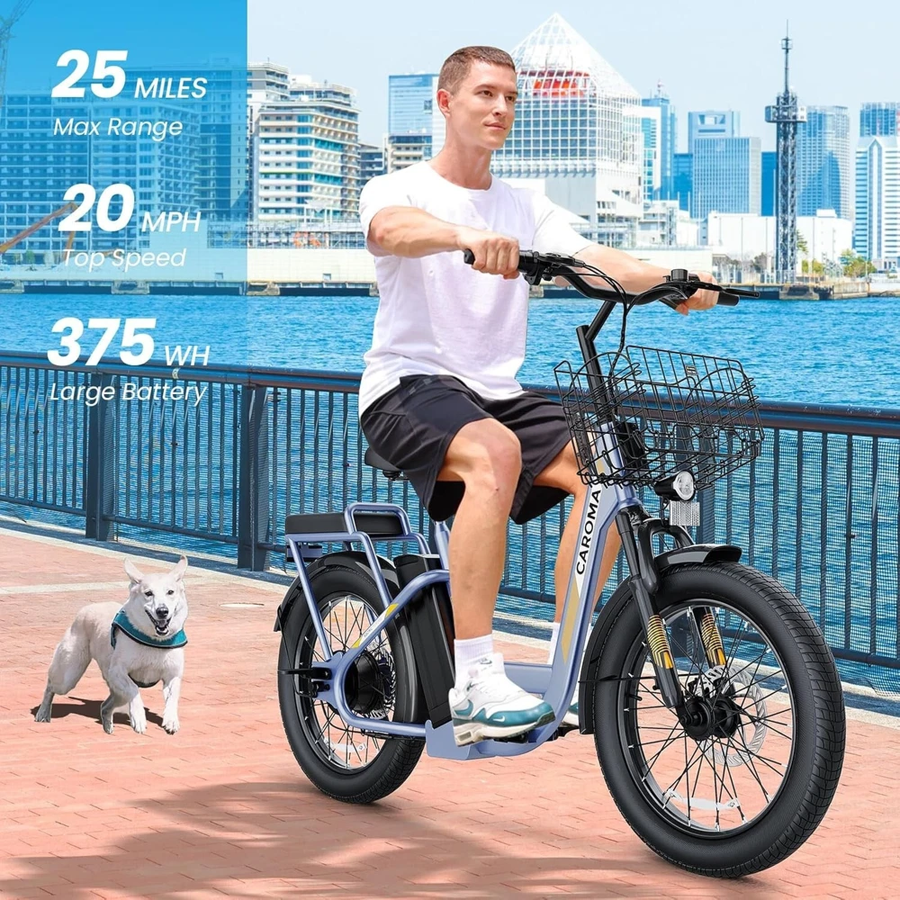 Product Description 20" X 3" Adjustable Caroma Electric Scooter With 2 Seats for Adults & Teens About this item 【20" X 3" Super Wide Off-Road Tires】: The thick and sturdy 20" tires of the adult electric scooters absorb most shock, offering a comfortable riding experience. Combined with a 3-inch width, the tire's stability is maximized, making it suitable for all road conditions and weather conditions. 【Convenient & Durable Two-Seated E-Scooter】: This electric scooter uses an integrated metal frame, which is sturdy and durable and can withstand a maximum weight of 300lbs. With a rear seat that can bear a maximum weight of 110lbs, it greatly improves the scooter's carrying capacity (the rear seat cushion is removable). 【Peak 1200W Motor & 500Wh Battery】: Caroma K5 electric scooter with seat is equipped with a 750W(Peak 1200W) brushless hub motor and 500Wh long lasting battery, so that it can reach 20MPH top speed and travel up to 30 miles on a single charge.The e-scooter can run smoothly even on a 20° road. 【LCD Display & Safe to Ride】: The LCD monitor shows the battery level of the e scooter, so you can get a clear picture of your riding. The effective front and rear disc brake on the e-scooters provide excellent stability and control. The high-brightness headlight and rear brake light keep your riding safe at night.