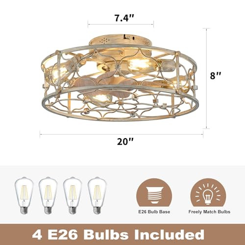 Menu 1. We require immediate payment. 2. We currently accept payment via eBay managed payments only. 3. Once payment is cleared, we will dispatch your shipment within 1-3 business days. Please refer to the "Shipping" tab for more information regarding shipping speed to your destination. Caged Ceiling Fans with Lights,20" Flush Mount Fandelier Ceiling Fan with Lights and Remote,6 Wind Speeds Smart Low Profile Farmhouse Ceiling Fan for Bedroom,Kitchen,Living Room,Include 4 Bulb Product description 【Modern Caged Ceiling Fan】Farmhouse ceiling fan is designed elegant gold metal frame , can well decorate the room at the same time and bring cool and comfortable air volume. 【Lighting & Ceiling Fans】You can use the remote control to only turn on the fan or light. Light and fan can be run separately,that will let you have the fan or the light separately 【Bulbs included】:4pcs E26 LED Edison vintage bulbs are ready for you. Standard sockets are easy to replace or upgrade. You can also purchase your own color changing bulbs for replacement! 【Safe&Unique Design】Our enclosed ceiling fans have been carefully designed so that t is no need to worry about accidental contact with the fan blades, ensuring a safe environment for your loved ones. Especially in bunk beds or spaces with children 【Ceiling Fan with Remote】Variable frequency mute remote control say goodbye to annoyingly loud remote beeps! you can adjust the 6-speed wind / timing function / fan blade forward and reverse / lights and fan blades work separately 【Quiet&Reversible DC Motor】Effortlessly adjust the fan's direction for changing seasons. With the included no beep remote control, toggle between downdraft and updraft modes to suit your needs. 【Easy to Install Ceiling Fan】most of the components we have already assembled, just you need to screw the bulb on and fix the light to the ceiling to run it Feel free to reach out to us for prompt support and solutions. PLEASE MESSAGE US IF YOU HAVE ANY OTHER QUESTIONS, AND MANY THANKS FOR READING ALL OF THIS. Copyright ©#. All Rights Reserved.
