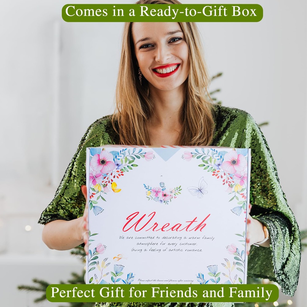 Transform your home with this stunning lamb's ear wreath designed for year-round elegance. Featuring soft lamb's ear leaves, eucalyptus sprigs, baby’s breath, and a charming burlap bow, this artificial wreath adds a touch of farmhouse charm to any space. Perfect for front door decor, it also works beautifully on walls, windows, or porches. Crafted with high-quality materials, this wreath for front door is both durable and weather-resistant, ensuring its vibrant beauty lasts throughout the seasons. Whether you’re looking for a spring wreath, summer wreath, or a versatile wreath for all seasons, this design complements a variety of home styles. Packaged in a premium gift box, it makes a delightful gift for friends and family. Elevate your front door decor today with this timeless farmhouse wreath! Wreaths for Front Door Year Round:This farmhouse-inspired lamb's ear wreath features lush greenery, eucalyptus, baby’s breath, and a rustic burlap bow, creating a timeless and natural look Lambs Ear Front Door Wreath:Perfect for front door décor, walls, windows, or porches, this wreath for all seasons enhances your home through spring, summer, fall, and winter Artificial Farmhouse Wreaths with Bow: Crafted with high-quality artificial materials, this durable and weather-resistant wreath adds a welcoming touch to farmhouse, rustic, or modern homes, indoors or outdoors Spring Summer Wreath for Home Decor:Arrives in a beautifully designed gift box, making it a thoughtful present for housewarmings, Mother’s Day, birthdays, anniversaries, or any celebration Door Wreaths for Front Door Outside: This wreath measures approximately 20 inches and has been securely packed to prevent any damage during shipping. Upon receiving, you can easily fluff and expand the wreath to achieve the best possible look