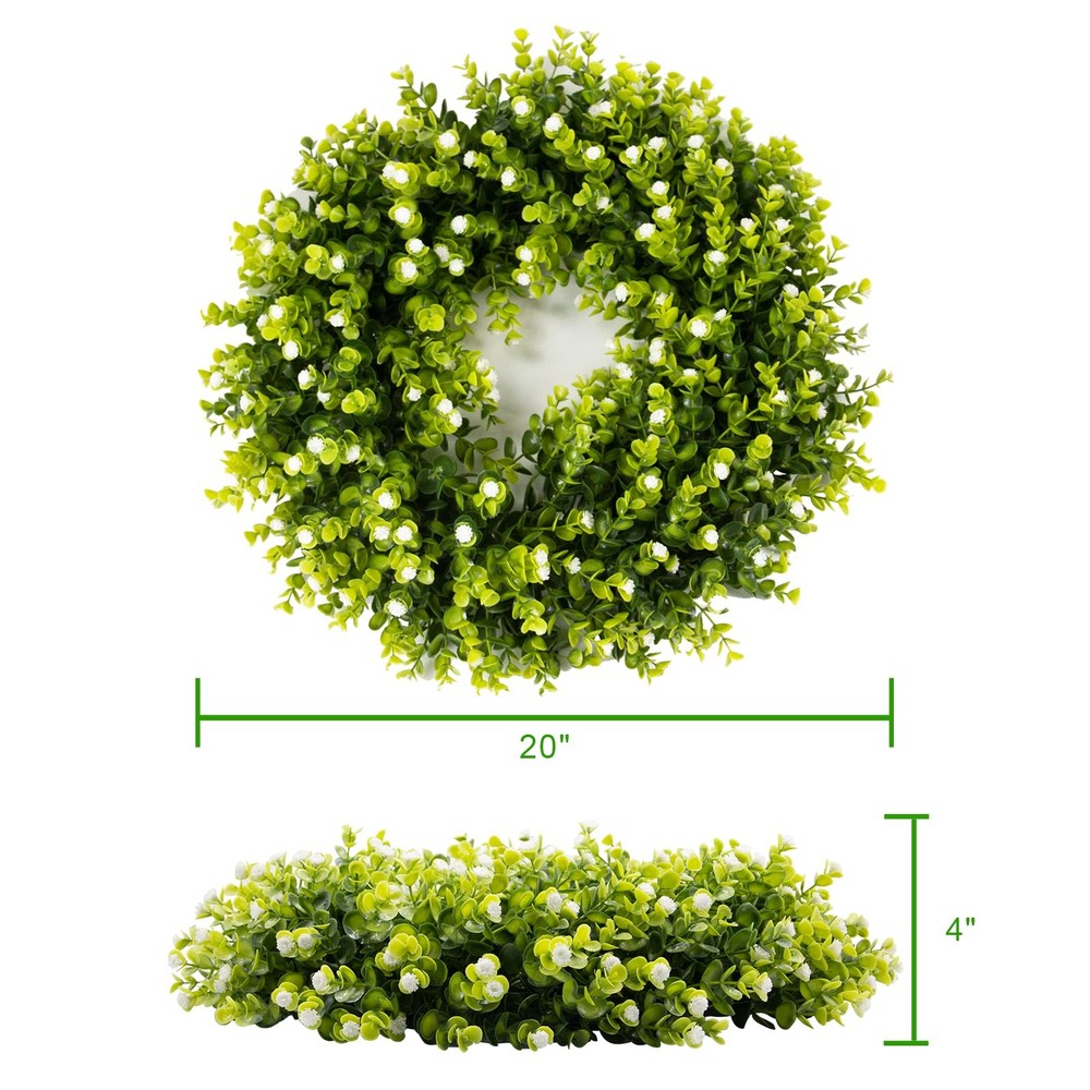 Available in many colors. Suitable for all year round, interior decoration, even Christmas, Thanksgiving, Halloween and other major holidays, you just need to superimpose some corresponding holiday elements on it yourself. WREATH SIZE: gypsophila green wreath has an inner diameter of 30cm (About 12 inch) and a fully expanded outer diameter of 50cm (About 20 inch). After receiving the fall wreath, arrange the garland to make it fuller. PREFERRED MATERIAL: Boxwood wreath of soft ight and dark green leafy branches and starry flowers are made of PE material with a sturdy round plastic ring on the back to effectively prevent the branches and leaves from falling off. UV & water protective and no fading. FOR ALL OCCASIONS: Simple color combination and elegant design allows this front door wreath very wide range of application. Indoor or outrdoor, wedding, Valentine, christmas, thanksgiving , party wreath decorations. You just need to superimpose some corresponding holiday elements on it yourself. CHOOSE WREATH: Because of the product material and style, wreaths are manually fixed to the round base one by one eucalyptus gypsophila, the shape is plump and good-looking. The wreaths received you can directly hang up, easy to use! After-sales SERVICE: Commodities are polyethylene plastic may have a little smell, please put in the ventilation can be dissipated in a day. If you have questions before and after the purchase please by , we will give you a satisfactory answer.