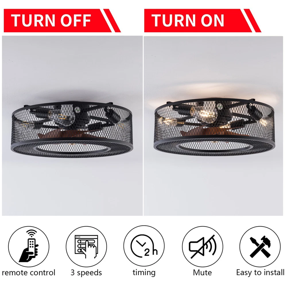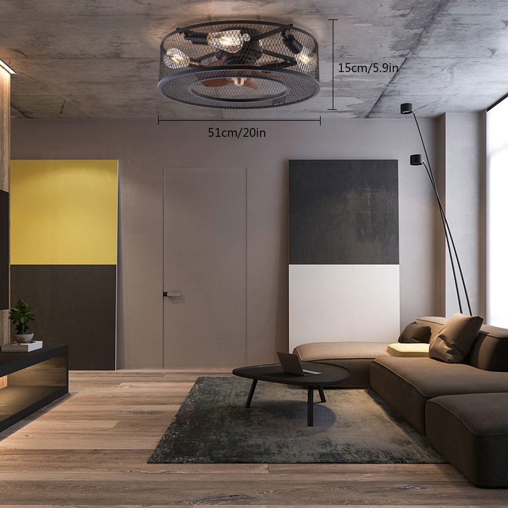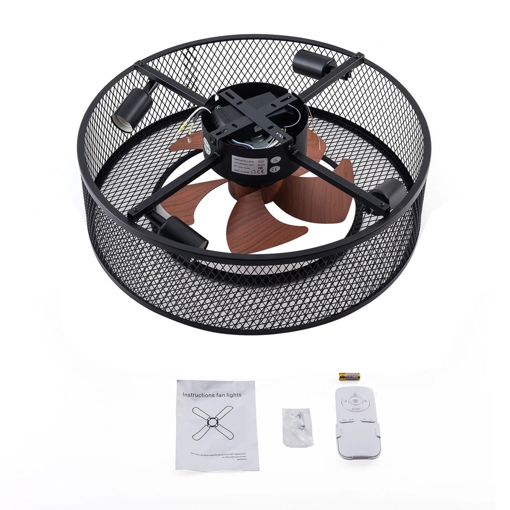 20 Inch Ceiling Fan Light Fanlamp Chandelier Flush Mount Fandelier & Remote Description Caged Ceiling Fan with Light Remove Control with 5 Bulbs, 20 ‘’ Rustic Low Profile Flush Mount Ceiling Fan Light, Enclosed Industrial Ceiling Fan Light for Bedroom Living Room Farmhouse About this item 【Unique and safe novel design】metal shade,Unique to say the least, thecomposition of cage ceiling fan is quite striking, combining modernity and elegance in one. The exterior bird cage lampshade a stylish theme while protecting the light bulb and the central fan blade. It's perfect for a loft or office space, hang in your eating area and enjoy the cool breeze. Light & Fan—This ceiling fan with is designed for who need marvelous update for your house. Suit for ceiling from 7.5-11.5 feet, and room from 8-15㎡like children room, bedroom, kitchen island or dinning room。 Easy to install: hard wire. perfect design to illuminate your space, whether it is a kitchen island, dining room, bedroom, foyer or any other place. 【Remote Control】: The Industrial ceiling fan lights fixture with 3-speed adjustment (low/medium/high) and 3 fan timing options (1/2/4H) sleep shutdown about multi-function remote control. The fan and lights can be controlled separately, which can control your ceiling fan quickly and easily!(max distance of 20 meters) 3 Gear Wind—The enclosed ceiling fan speed vary from soft to cool, match daily needs; ABS fan blades, durable, lightweight and easy to clean. Timing Function—Smart timing set to automatically POWER OFF light and fan after you fall asleep。 Mute Motor—Indoor/Outdoor ceiling fan is equipped with a whisper wind motor which makes no noise, stay away from any noise interference while providing a quiet and comfortable environment ✦Dimensions Fixture Height:5.9" (15cm) Fixture Width: 20" (51cm) ✦Bulb Information Bulb requirements: use (4) E26bulbs, maximum 40watts, options include incandescent, fluorescent, LED, halogen, etc. (bulbs are not included) Wattage: Max 40W Voltage: AC110-120V Remote control: yes ✦Material and Colour Material: metal+ABS Easy to install: surface mounted. Products include English manuals, remote control and installation instructions, with the provided bracket, providing easier installation and detailed installation instructions. Applicable scenarios: The chandelier is suitable for home and commercial spaces,such as living room, dining room, kitchen island, bedroom, foyer, farmhouse , bar, restaurant, gallery, exhibition room, hotel, coffee shop, office。 Package Included 1 *Fan Light (Bulbs Not Included) 1 * Accessories package 1 * User Manual ✦Suggestion: 1. For a safe and secure installation, please ensure that the electrical box to which this fixture will be mounted is properly attached to a structural member of the building. 2. All wires are connected. When unpacking, be careful not to pull with wires as a bad connection may result. 3. Do not connect electricity until your fixture is fully assembled. Payment Delivery details Terms of sales About us Contact us Payment We accept ebay payment 。 Fees such as import duties, taxes are not included in the item price or shipping costs. These charges are the buyer's responsibility. Delivery details Shipping: 2-9 working days to: USA Terms of sales We maintain high standards of excellence and strive for hundred percent customer satisfaction. Feedback is very important to us. We hope that you contact us immediately before you give neutral or negative feedback, so that we can address your concerns. It is impossible to address issues if we do not know about them! About us Your satis faction is our ultimate goal. We work hard to earn your trust and future business. Our certified technicians have tested each item before shipping. The unit comes with 1 year limited warranty on all manufacturing defects. a) If you receive a defective item, you may return it or ask for a discount. Please contact us within 14 days after you receive the package. b) What you returned must be intact and in its original packaging as re? u. Customer is responsible for shipping costs of the returned item. c) We will cover the cost of shipping back t with the shipping rate indicated in the registration page. We will send you a new unit or refund the full payment you paid. Thank you. Contact us Business Hour Business Hour: Monday To Friday: 8:30 AM to 5:00 PM (Beijing China time) Due to time zones, our reply to your questions may not be immediately. But within above working time, we will reply your email within 24 hours. If it's non-workdays, please kindly be patient and wait till Monday. Please contact us with ebay message. Please feel free to contact us if you have any questions. Monday To Friday: 8:30 AM to 5:00 PM (Beijing China time) Due to time zones, our reply to your questions may not be immediately. But within above working time, we will reply your email within 24 hours. If it's non-workdays, please kindly be patient and wait till Monday. Please contact us with ebay message. Please feel free to contact us if you have any questions. On Jan 6, 2025 at 22:23:05 PST, seller added the following information: