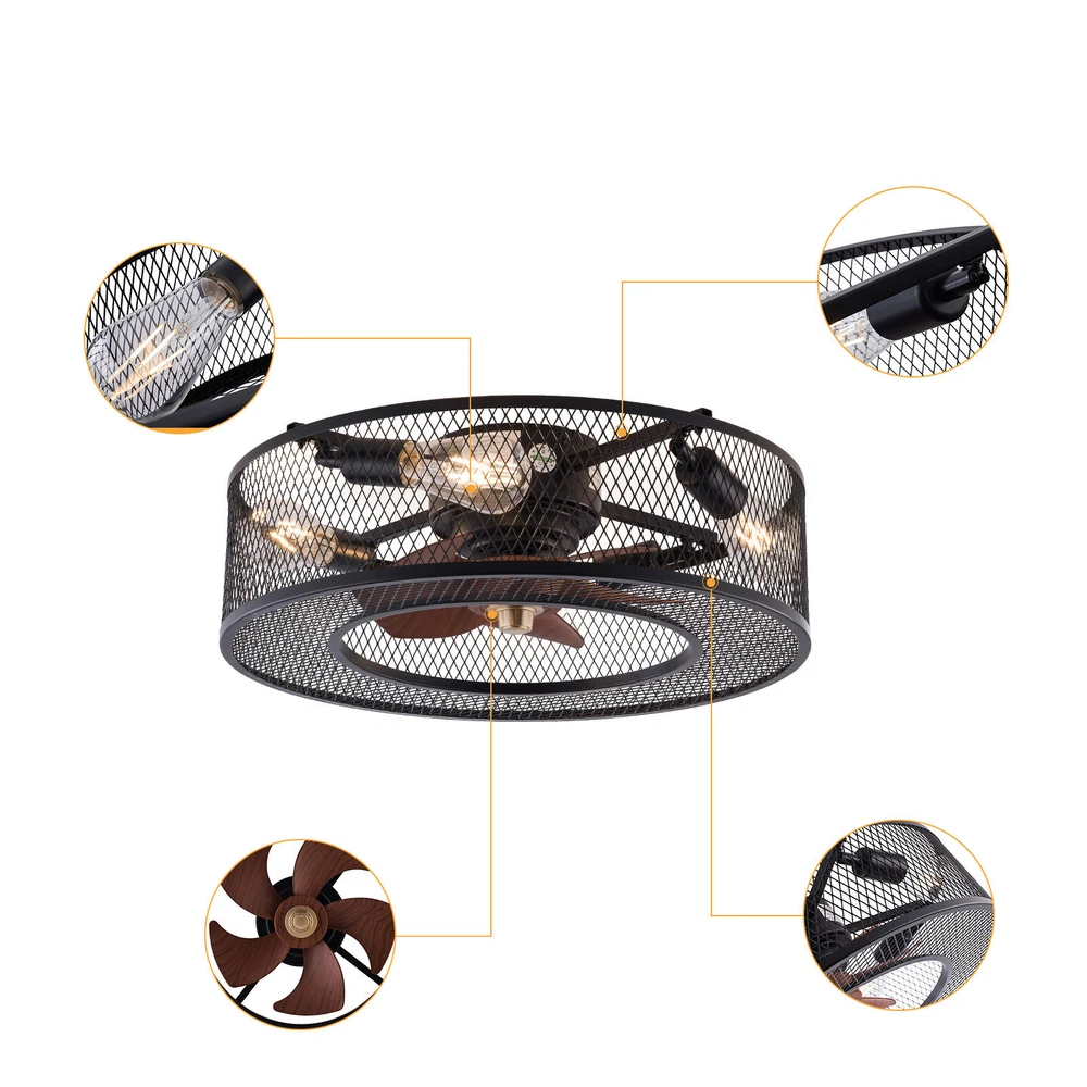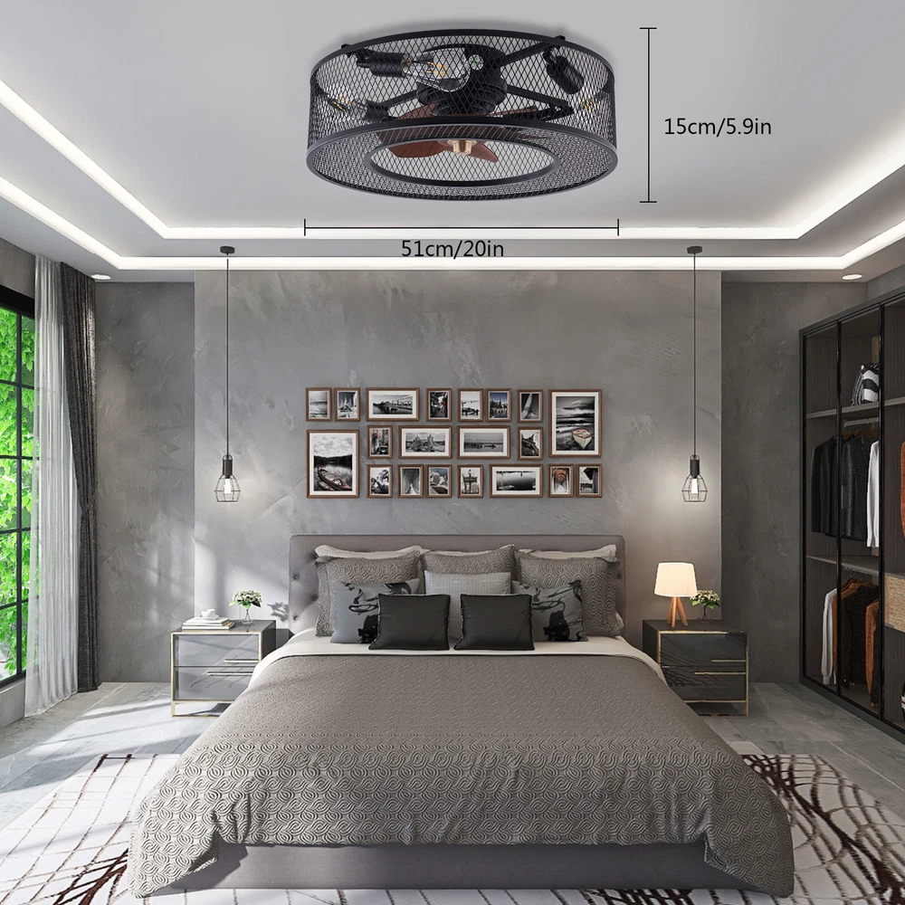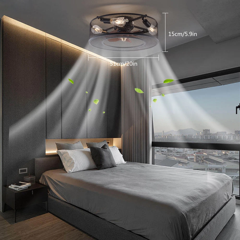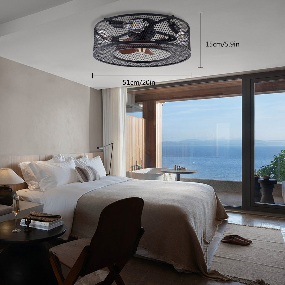 20 Inch Ceiling Fan Light Fanlamp Chandelier Flush Mount Fandelier & Remote Description Caged Ceiling Fan with Light Remove Control with 5 Bulbs, 20 ‘’ Rustic Low Profile Flush Mount Ceiling Fan Light, Enclosed Industrial Ceiling Fan Light for Bedroom Living Room Farmhouse About this item 【Unique and safe novel design】metal shade,Unique to say the least, thecomposition of cage ceiling fan is quite striking, combining modernity and elegance in one. The exterior bird cage lampshade a stylish theme while protecting the light bulb and the central fan blade. It's perfect for a loft or office space, hang in your eating area and enjoy the cool breeze. Light & Fan—This ceiling fan with is designed for who need marvelous update for your house. Suit for ceiling from 7.5-11.5 feet, and room from 8-15㎡like children room, bedroom, kitchen island or dinning room。 Easy to install: hard wire. perfect design to illuminate your space, whether it is a kitchen island, dining room, bedroom, foyer or any other place. 【Remote Control】: The Industrial ceiling fan lights fixture with 3-speed adjustment (low/medium/high) and 3 fan timing options (1/2/4H) sleep shutdown about multi-function remote control. The fan and lights can be controlled separately, which can control your ceiling fan quickly and easily!(max distance of 20 meters) 3 Gear Wind—The enclosed ceiling fan speed vary from soft to cool, match daily needs; ABS fan blades, durable, lightweight and easy to clean. Timing Function—Smart timing set to automatically POWER OFF light and fan after you fall asleep。 Mute Motor—Indoor/Outdoor ceiling fan is equipped with a whisper wind motor which makes no noise, stay away from any noise interference while providing a quiet and comfortable environment ✦Dimensions Fixture Height:5.9" (15cm) Fixture Width: 20" (51cm) ✦Bulb Information Bulb requirements: use (4) E26bulbs, maximum 40watts, options include incandescent, fluorescent, LED, halogen, etc. (bulbs are not included) Wattage: Max 40W Voltage: AC110-120V Remote control: yes ✦Material and Colour Material: metal+ABS Easy to install: surface mounted. Products include English manuals, remote control and installation instructions, with the provided bracket, providing easier installation and detailed installation instructions. Applicable scenarios: The chandelier is suitable for home and commercial spaces,such as living room, dining room, kitchen island, bedroom, foyer, farmhouse , bar, restaurant, gallery, exhibition room, hotel, coffee shop, office。 Package Included 1 *Fan Light (Bulbs Not Included) 1 * Accessories package 1 * User Manual ✦Suggestion: 1. For a safe and secure installation, please ensure that the electrical box to which this fixture will be mounted is properly attached to a structural member of the building. 2. All wires are connected. When unpacking, be careful not to pull with wires as a bad connection may result. 3. Do not connect electricity until your fixture is fully assembled. Payment Delivery details Terms of sales About us Contact us Payment We accept ebay payment 。 Fees such as import duties, taxes are not included in the item price or shipping costs. These charges are the buyer's responsibility. Delivery details Shipping: 2-9 working days to: USA Terms of sales We maintain high standards of excellence and strive for hundred percent customer satisfaction. Feedback is very important to us. We hope that you contact us immediately before you give neutral or negative feedback, so that we can address your concerns. It is impossible to address issues if we do not know about them! About us Your satis faction is our ultimate goal. We work hard to earn your trust and future business. Our certified technicians have tested each item before shipping. The unit comes with 1 year limited warranty on all manufacturing defects. a) If you receive a defective item, you may return it or ask for a discount. Please contact us within 14 days after you receive the package. b) What you returned must be intact and in its original packaging as re? u. Customer is responsible for shipping costs of the returned item. c) We will cover the cost of shipping back t with the shipping rate indicated in the registration page. We will send you a new unit or refund the full payment you paid. Thank you. Contact us Business Hour Business Hour: Monday To Friday: 8:30 AM to 5:00 PM (Beijing China time) Due to time zones, our reply to your questions may not be immediately. But within above working time, we will reply your email within 24 hours. If it's non-workdays, please kindly be patient and wait till Monday. Please contact us with ebay message. Please feel free to contact us if you have any questions. Monday To Friday: 8:30 AM to 5:00 PM (Beijing China time) Due to time zones, our reply to your questions may not be immediately. But within above working time, we will reply your email within 24 hours. If it's non-workdays, please kindly be patient and wait till Monday. Please contact us with ebay message. Please feel free to contact us if you have any questions. On Jan 6, 2025 at 22:23:05 PST, seller added the following information: