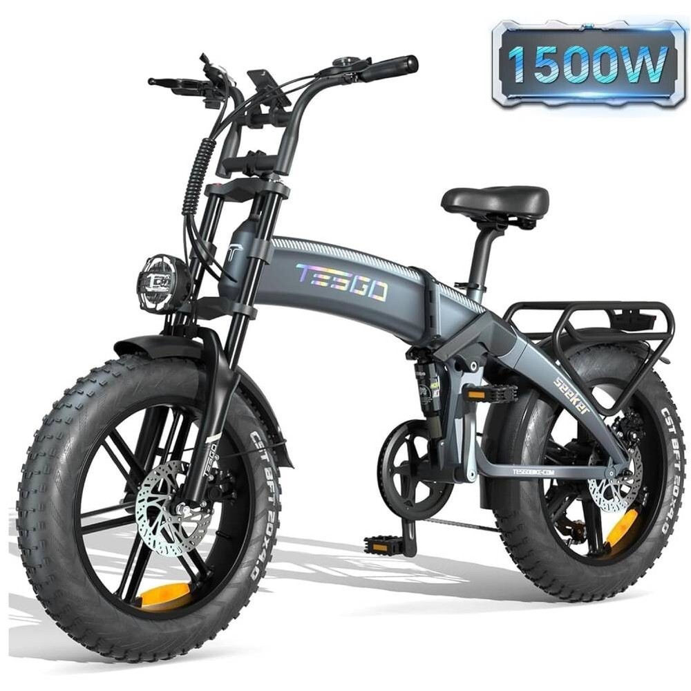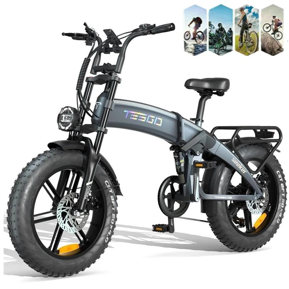 Charger: 54.6V 2A Department: Unisex Adults Motor Type: Rear Hub Motor Charging Time: More Than 5 Hours Frame Size: 20 in Brake Type: Disc Brake - Hydraulic Suspension Type: Full Suspension (Front & Rear) Maximum Range: Up to 45 mi Tire Type: Fat Tires Motor Power: 1000 W Maximum Speed: 28 mph Features: Adjustable Seat, Display, Front Light, Lithium Ion Battery Model: SEEKER PRO Color: Gray Wheel Size: 20 in Voltage: 48 V gtin13: Does not apply MPN: Does not apply Model Year: 2024 Custom-Built: No UPC: Does not apply Battery: 48V 16.8Ah Brand: Tesgo Material: Aluminum Alloy Bike Type: E-Folding Bike Frame Number: ### Number of Speeds: 7 Speed Manufacturer Warranty: 6 Months