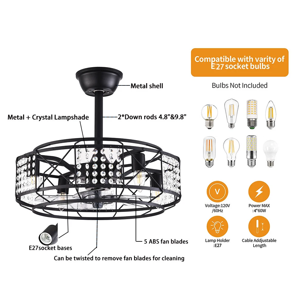 20 Inch Rustic Style Industrial Ceiling Fan With Cage Light LED+Remote Control ✦ Art design: The combination of fan and chandelier functions. Modern ceiling fans keep the trend and inspiration of home and indoor, and provide you with a comfortable sleeping environment. ✦ Light & Fan —This ceiling fan with is designed for who need marvelous update for your house. Suit for ceiling from 7.5-11.5 feet, and room from 10-25㎡like children room, bedroom, kitchen island or dinning room, Easy to install: hard wire. perfect design to illuminate your space, whether it is a kitchen island, dining room, bedroom, foyer or any other place. ✦ 3 Gear Wind —The enclosed ceiling fan speed vary from soft to cool, match daily needs; ABS fan blades, durable, lightweight and easy to clean ✦ Remote Control — smart ceiling fan include a remote for you to control the fan anywhere in the house(max distance of 20 meters). One 12V 23A alkaline batteries is needed and included ✦ Timing Function —Smart timing set to automatically POWER OFF light and fan after you fall asleep。 ✦ Mute Motor —Indoor/Outdoor ceiling fan is equipped with a whisper wind motor which makes no noise, stay away from any noise interference while providing a quiet and comfortable environment ✦Dimensions Fixture Height: 7.87" (20 cm) Fixture Width: 20" (50cm) ✦Bulb Information Bulb requirements: use (4) E27bulbs, maximum 40watts, options include incandescent, fluorescent, LED, halogen, etc. (bulbs are not included) Bulb Included Or Not: Not Bulb Included Wattage: Max 40W Voltage: AC110-120V Remote control: yes ✦Material and Colour Material: Retro metal Easy to install: Semi Flush Mount. Products include English manuals, remote control and installation instructions, with the provided bracket, providing easier installation and detailed installation instructions. Applicable scenarios: The chandelier is suitable for home and commercial spaces,such as living room, dining room, kitchen island, bedroom, foyer, farmhouse , bar, restaurant, gallery, exhibition room, hotel, coffee shop, office ✦ Package Included 1 *Fan Light (Bulbs Not Included) 1 * Accessories package 1 * User Manual Note: The fan is not reversible. ✦Suggestion: 1. For a safe and secure installation, please ensure that the electrical box to which this fixture will be mounted is properly attached to a structural member of the building. 2. All wires are connected. When unpacking, be careful not to pull with wires as a bad connection may result. 3. Do not connect electricity until your fixture is fully assembled. Payment Delivery details Terms of sales About us Contact us Payment We accept ebay payment 。 Fees such as import duties, taxes are not included in the item price or shipping costs. These charges are the buyer's responsibility. Delivery details Shipping: 2-9 working days to: USA Terms of sales We maintain high standards of excellence and strive for hundred percent customer satisfaction. Feedback is very important to us. We hope that you contact us immediately before you give neutral or negative feedback, so that we can address your concerns. It is impossible to address issues if we do not know about them! About us Your satis faction is our ultimate goal. We work hard to earn your trust and future business. Our certified technicians have tested each item before shipping. The unit comes with 1 year limited warranty on all manufacturing defects. a) If you receive a defective item, you may return it or ask for a discount. Please contact us within 14 days after you receive the package. b) What you returned must be intact and in its original packaging as re? u. Customer is responsible for shipping costs of the returned item. c) We will cover the cost of shipping back t with the shipping rate indicated in the registration page. We will send you a new unit or refund the full payment you paid. Thank you. Contact us Business Hour Business Hour: Monday To Friday: 8:30 AM to 5:00 PM (Beijing China time) Due to time zones, our reply to your questions may not be immediately. But within above working time, we will reply your email within 24 hours. If it's non-workdays, please kindly be patient and wait till Monday. Please contact us with ebay message. Please feel free to contact us if you have any questions. Monday To Friday: 8:30 AM to 5:00 PM (Beijing China time) Due to time zones, our reply to your questions may not be immediately. But within above working time, we will reply your email within 24 hours. If it's non-workdays, please kindly be patient and wait till Monday. Please contact us with ebay message. Please feel free to contact us if you have any questions. Country/Region of Manufacture China * Feature * Creative Design,Durable Material,Beautiful Appearance Brand Unbranded Type Ceiling Fan Sensor Type / Manufacturer / Features With Remote Control Fan Width as pics show Color Black Control Style Remote Control Style Vintage/Retro Number of Blades / Material Metal Installation Area Indoor Cord Color / Blade Color / Number of Settings 1 Lighting Technology E27 Room Attic, Dining Room, Home Office/Study, Kitchen, Living Room, Bedroom Design Novelty Number of Speeds 3 Power Source / LED String/Strip Type / MPN does not apply Voltage AC110-120V Mounting Semi Flush Mount