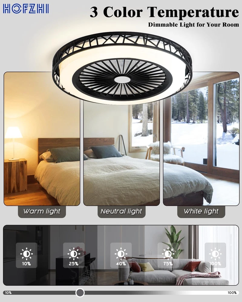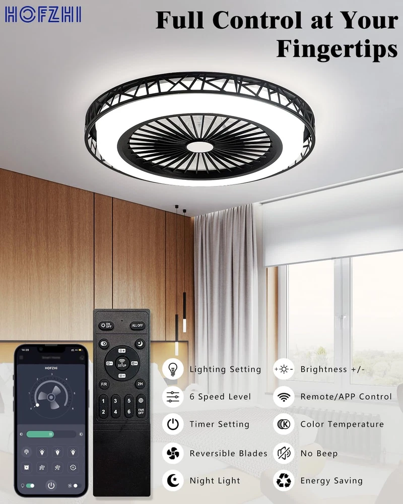 Store New Arrivals Add to Favorite View Feedback Contact 20" Low Profile Ceiling Fan with Light Bladeless Ceiling Fan Silent Reversible DC Motor Enclosed Ceiling Fan with Light Dimming LED 3CCT 6 Speed for Indoor Bedroom Living Room Kitchen (Black) Description Mounting Type Flush Mount Controller Type Remote Control Style Modern Power Source AC Control Method Remote Theme Modern Main Power Connector Type NEMA 5-15 (Edison) Number of Power Levels 6 Material Iron Number of Speeds 6 Product Dimensions 19.6"D x 19.6"W x 7"H Collection Name Modern Finish Type Powder Coated Indoor/Outdoor Usage Indoor Light Type LED Room Type Kids Room, Living Room, Bedroom, Study Room, Dining Room Connector Type NEMA 5-15 (Edison) Item Weight 7.58 pounds Special Feature Bladeless Electric fan design Ceiling Fan Color Black Form Factor Bladeless Low Profile Flush Mount Ceiling Fan Is Cordless? No Voltage 1.2E+2 Volts (AC) Recommended Uses For Product Cooling, Air Circulation Included Components Remote Speed 6 RPM Switch Type Pull Chain [ Bladeless Ceiling Fan ] Bladeless ceiling fan wiht a light design for an quiet and comfortable experience. Efficient air distribution for smooth airflow, keeping the indoor environment fresh. Ideal for low ceiling small rooms, like bedrooms, kitchens, living rooms, etc. [ Silent Reversible Motor ] This flush mount ceiling fan uses a high-quality copper motor that provides you with strong wind but quiet. The Reversible Design allows you to adjust the airflow direction according to the season, maintaining a comfortable temperature. [ Light Your Room ] Our Enclosed Ceiling Fan with Light is equipped with an energy-saving LED light that light your whole room, they can adjust the brightness and 3 color temperature by remote control and application in your phone. [ Easy to Install ] Detailed installation guide and video for low profile ceiling fan, we have assembled most parts of the ceiling fan, so even non-professionals can easily complete it in 1 hour. [ What You Get ] We endeavor to provide the reliable products to our customers and value your experience. You will enjoy our service policy. If you have any question with the purchase, please feel free to ask us. Product Description HOFZHi 20“ Low Profile Ceiling Fan with Light Metal Cover The one-piece die-casting cover combines stability with an avant-garde design. Thinner Body Ideal for low ceiling heights of 2.5m-3.2m. Easy to Install Almost no assembly is required , all-in-one design minimizes installation time. ABS Lampshade Gorgeous lampshade can make the light dispersion more uniform, soft, and eye-friendly. Control in One Hand You can download the Application through our user manual. Living Room Kitchen Hallway Bedroom Doorway HOFZHi Ceiling Fan Series Add to Cart Add to Cart Add to Cart Add to Cart Price $129.99 $ 129 . 99 $139.99 $ 139 . 99 — $99.99 $ 99 . 99 $69.99 $ 69 . 99 Size 20 Inch 20 Inch 36 Inch 42 Inch 52 Inch Light Dimming LED Dimming LED Dimming LED E26 / E27 Bulb Dimming LED Control Way APP/Remote APP/Remote Remote Controller Remote Controller Remote Controller Timer Setting ✔ ✔ ✔ ✔ ✔ Speed Level 6 6 6 6 6 ABOUT US We offer the best prices around on high quality products. Our E-store includes media such as books, movies, music and games while offering electronics, toys, sporting apparel, clothing, tools, general home, garden items and more. SHIPPING We are always working hard to ensure your package arrives as soon as possible. Please understand that some factors like weather, high postal traffic, and the performance of shipping companies are outside of our control. We offer free shipping to the lower 48 states and ship within 2 business days of payment, usually sooner. We do not accept P.O. Boxes. Please provide a physical address. For shipping outside of the continental USA, we only use eBay's Global Shipping Program.The item is shipped to KY and then sent to the rest of the world. International customers are responsible for all duties and taxes. Continue to check out in order to calculate costs for shipping the item to your country. Messages regarding eBay's Global Shipping Program MUST be directed at eBay EXCLUSIVELY. RETURNS We offer a 30-Day Return Policy on items which you are not completely satisfied with. You have the option for a full-refund or an exchange of the item. No returns are available on items shipped outside of the USA. PAYMENT We accept PayPal. CONTACT US This page content is yet to come Please ad us to your favorite seller and visit again later Thank You CUSTOMER SATISFACTION We try our very best to make sure every customer is completely satisfied. If there's a problem, message us! We're happy to help. WE ACCEPT Copyright © 2021 AutoDS. | All Rights Reserved