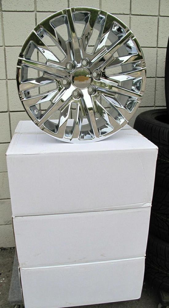 Shipping cost to some of the destinations in the USA may be different due to extra charges by shipping companies, for example city of NY, West coast like California, Washington State and others in that area, some rural delivery areas like the Mountains, Islands, Gated communities. If Extra charges are required, we will contact buyers after we receive orders or Buyers can sent us request for estimated shipping cost. EZBuy Wholesale Customer service available to answer all your questions. Per Ebay Policy our phone number will be available only to buyers after placing order. For any questions please use Ask a question link on the bottom of this page in Questions and answers about this item section. Compatibility provided by Ebay is not properly working and may provide wrong information. See our description for fitment or contact us You are bidding on set of four Brand New GMC Factory Style 20x9, 6 lug Chrome GMC Yukon, Denali, Sierra, Chevrolet Avalanche, Silverado, Suburban, Tahoe wheels rims. These are brand new wheels, never been used. GMC or Chevy center caps included. Decals may ship separately. All chrome GMC and Chevy caps available for $15 ea. TPMS sensors available for $40 ea. Chrome lug nuts available for $55 per 24 lugs. These wheels will fit most Chevy and GMC full size trucks with 6 lug models from 1992 to 2024 years. stk#198C, 20".chrome.896 TO ALL OUR CUSTOMERS: Please check our payment, shipping and return policy and place a bid if you accept it. Send your payment or contact us regarding your payment with in 24 hrs after winning the bid. If payment or information regarding your payment is not received, this item will be relisted or offered to another bidder. All international shipping quote including shipping and insurance. International recipients are responsible for any duty, tax, brokerage fee or any extra charge(s), regarding receiving the item in the recipient's country. We will be glad to assist you with any questions, please contact us on ebay site. For fitment questions and technical support customer service contact via ebay messages EZBUY247 is working for You 7 days a week. Our over 20 years of experience in wheel and tire business will help to meet Your satisfaction, we stand behind our products. BID WITH CONFIDENCE Customer service Problems with an order? If something is wrong with an order, we certainly do want to help you. Please read the following for more information on how to proceed. Shipping Problems: Please inspect your package immediately prior to accepting delivery. Damages and evidence of tampering on the outer packaging must be noted on the delivery receipt of the driver. Shipping Damage: Damages must be reported and filed with carrier immediately. Orders lost in transit must be reported to us immediately. We are not liable for carrier damages. A claim must be filed with Carrier Company to facilitate an exchange. If you received a damaged product, please report it to us within 48 hours from date of receipt. No exceptions. Wrong Items: If you received a wrong item, this should be reported within 2 business days from date of receipt. We shall provide you with a mailing label to ship back the wrong part. The replacement will only be sent once the wrong item has been received and confirmed by us. On Jul-31-06 at 05:16:37 PDT, seller added the following information: After purchasing, pay instantly with your credit card through PayPal! Shipping Instructions Large items like wheels/tires sets shipped via Freight, lift gate service is not included to a shipping cost. Items can be unloaded from the truck individually or lift gate service can be ordered per customer expense.