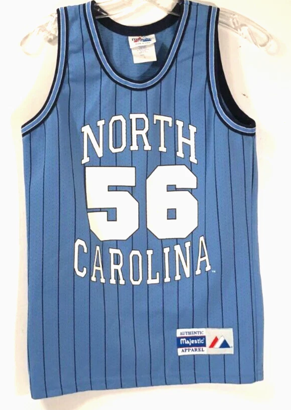 Vintage 90s NCAA Official Licensed Product Majestic North Carolina Tar Heels #56 Boys Basketball Jersey *100% Polyester *Screen-printed *Color: Blue Size: Boys L Measurements Approximately: *Chest: Armpit to Armpit 16.5" *Back of Neckline to Hemline 24" *Shoulder to Shoulder 11" Condition: Pre-owned.