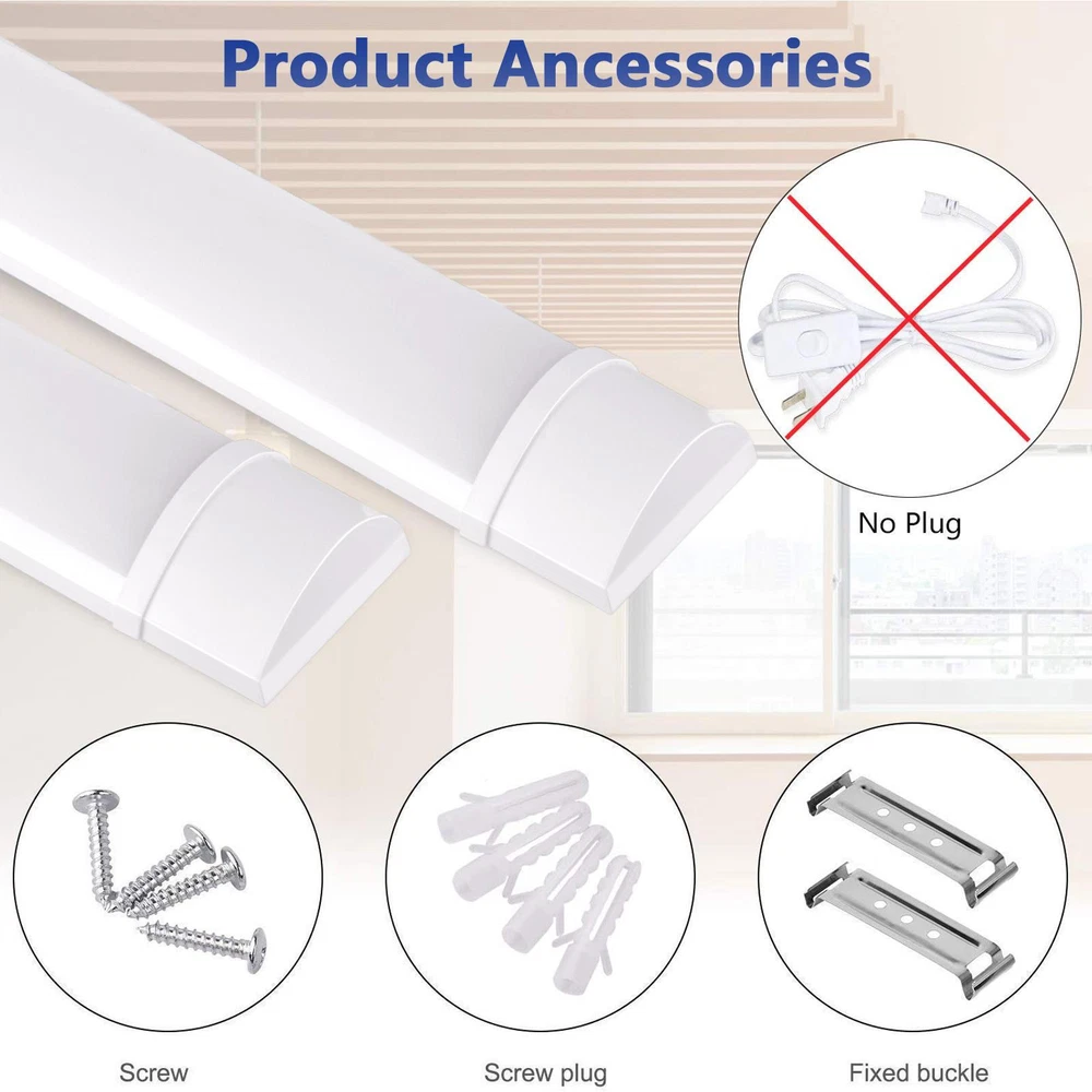 20 PACK 4FT LED SHOP LIGHT Natural White Fixture LED Ceiling Lights Garage Lamp 新建网页 1 [Super Bright] Adopting high-quality LED chips, high brightness, high color rendering index, low power consumption, and low heat. High quality LED driver ensures optimal performance, instantly turns on, without flickering. [Energy conservation and environmental protection] It saves more than 50% of electricity compared to fluorescent lamps. High quality PC material, flame retardant, no potential leakage, environmentally friendly material, recyclable. [Easy to install] The packaging comes with clips and screws, and the light will be securely fixed. The power cord of the lamp needs to be connected to the power supply before it can be turned on. [Widely used] Luminaires are suitable for lighting applications such as kitchen cabinets, storage rooms, basements, garages, warehouses, offices, factory workshops, etc. Specifications: Power: 40W Input voltage: AC 100-240V LED color temperature: Natural white 4000 K LED type: 2835 Luminous flux: 4000 Lm Beam angle: 120 ° LED quantity: 192 Pcs Display index:>80 Product size (length x width x height): 1150 * 75 * 25mm Product weight: 0.4Kg Material: PC/PVC Power cord length: 1.4 meters Protection level: IP22 (anti splash water on the illuminated surface) Working temperature: -25 ℃ to+40 ℃ LED lifespan:>50000 hours Energy efficiency level: F Certification: CE FCC Rohs Notes: 1. Due to the different monitor and light effect, the actual color of the item might be slightly different from the color showed on the pictures. Thank you! 2. Please allow 1-3cm measuring deviation due to manual measurement. Package: 20 * LED Tube Light We only accept Paypal . Payment is expected within 2 days from the end of the auction. We send all the items are based on your paypal address. Therefore, please make sure your paypal address is valid. * International Buyers Please Note: Import duties, taxes and charges are not included in the item price or shipping charges. These charges are the buyer’s responsibility. Please check your country’s custom office to determine whether these additional costs will be prior to bidding / buying. We only ship this item to United State! We ship to your eBay address. Each package will be shipped to USA by UPS or Fedex with tracking number. Please check your shipping address carefully before checkout, it can't be changed if order completed. Ship within 1-2 business day once payment completed. Orders placed on weekend will be shipped within 3 days. Seriously promise: Refund or resend will be offered if item still not arrive in 7-10 business days. Just send us an email ,we will give you a satisfied solution as soon as possible. We maintain high standards of excellence FIVE STAR and strive for 100% customer satisfaction! Positive Feedback is very important to us. We hope that you contact us immediately BEFORE you give us neutral or negative feedback, so that we can satisfactorily address your concerns. We promise to offer the lowest price and high quality produce. Our working time: From Monday to Friday(9:00 am to 18:00pm), we do not work on holidays in China,hope you can understand and know that , thank you. Please always talk to us via ebay Message. We appreciate your business and look forward to growing our e-Bay sales with satisfied customers. If you dissatisfied for any reason, Please don't leave negative or neutral feedback at once. We work hard to make sure EVERY CUSTOMER 100% SATISFIED and resolve any problem for you and always leave positive feedback for all our customers. If you are satisfied with the product you received ,please leave us positive feedback and 5 scores DSR. Dear buyers,Welcome to our store!Your satisfaction is our top goal,we appreciate your business. If you have any questions, please feel free to contact with us by ebay Message during our business hours ( 9:30a.m. to 5:30 p.m.), or email us through eBay, we will try our best to help you to resolve it. If you are satisfied with our service, please rate the details of the transaction (Detailed Seller Ratings) on eBay and We will do the same for you. If you are not satisfied with the product or service ,please contact us before leave negative or natural feedback, we will try our best to solve the issue to your satisfaction, thanks. For any presale or after-sale questions,please do feel free to email us! Due to the time difference, each email will be replied within 1 working day,and weekend will be delayed a bitThanks for your patronizing!
