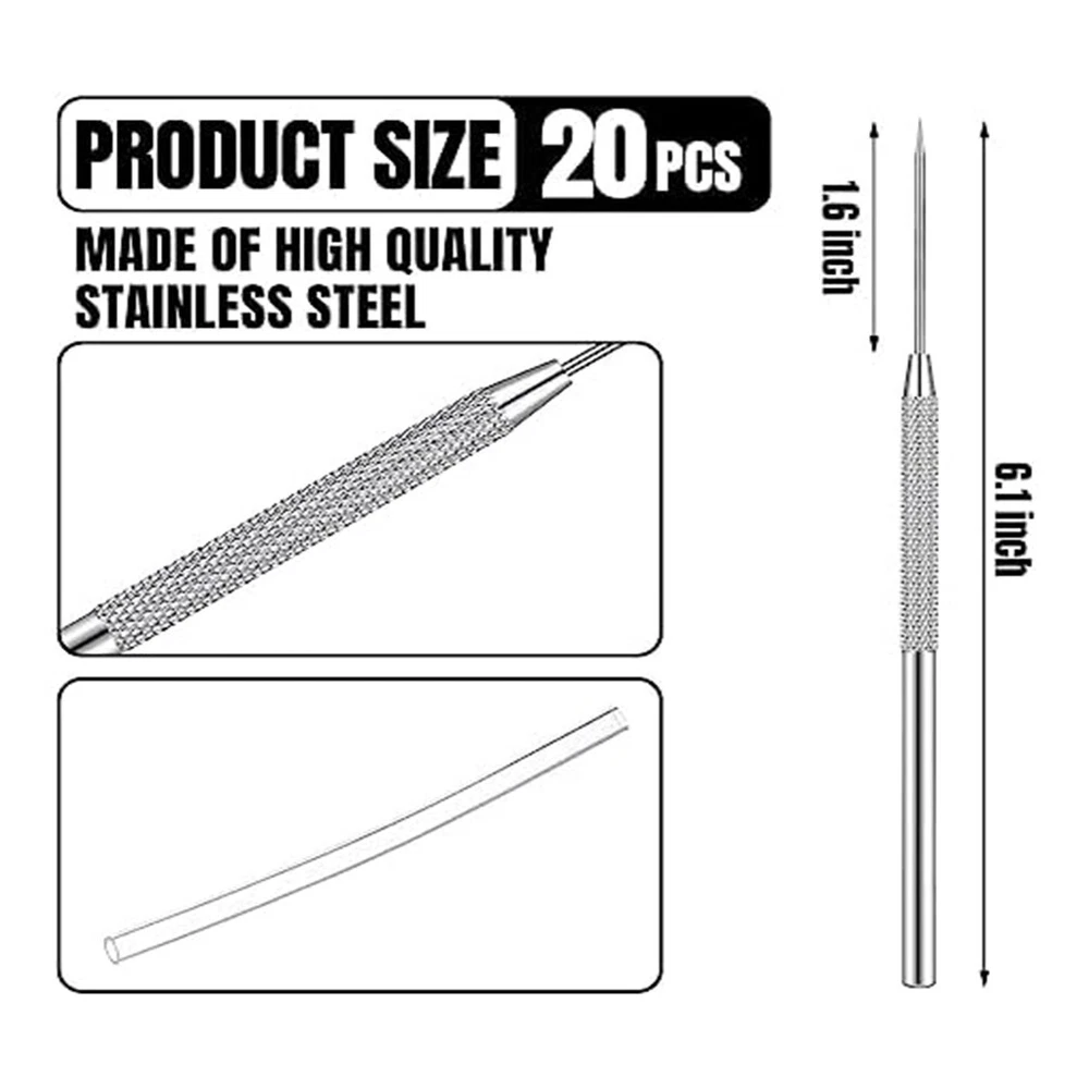20 PCS Ceramic Needle Shaped Clay Carving Tool Silver Metal for Carving4355 Rich usage: You will receive 20 ceramic tools, with a total length of approximately 6 inches/15.3 centimeters, a needle length of approximately 1.6 inches/4 centimeters, and a tip diameter of approximately 0.06 inches/1.5 millimeters; They can meet your daily replacement needs and be enough to share with others Reliable Material: Made of stainless steel, these ceramic tools are pointed to durability and can withstand frequent use; They are also and have lower costs for manual projects Texture handles: With finely textured handles, these clay tools provide precise and comfortable grip, allowing you to easily handle complex and delicate details Sturdy reminder: With a diameter of approximately 0.06 inches (approximately 0.6 centimeters), these polymer clay tools have sturdy tips, making them perfect for fine and complex handmade products; You can easily create holes, create lines and shapes, carve easily, while enjoying precision and durability Multiple applications: Whether you are a professional artist or a beginner, these clay sculpture tools are perfect for ceramic projects. They can be used to cut clay strips, carve wax, flip sugar, and more materials, so you can unleash your inner creativity and make what you desire in your heart Colour:Silver Material:Metal Package Contents: 1 * pottery tool kit