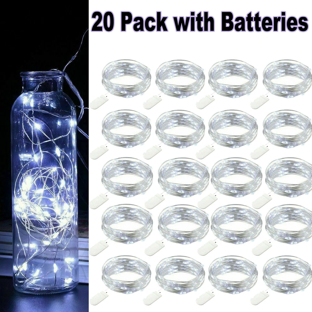 20 Pack 6.6ft 20 LEDs Battery Operated Mini LED Copper Wire String Fairy Lights