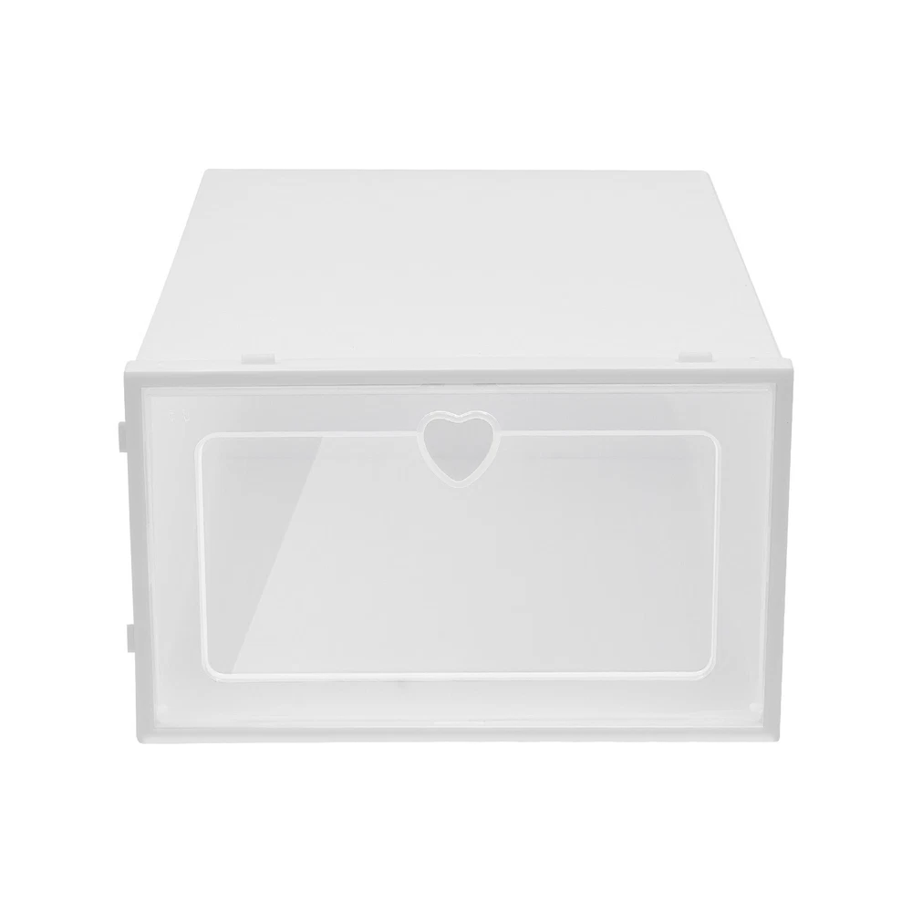 Specifications Material: PP Color: White, Clear Style: Simple, Modern Special Feature: Stackable Shape: Rectangular Number of Items: 20 Suitable Shoes: Up to 10 (Women, US), Up to 9 (Men, US) Frame Thickness: 1.1cm/0.43inch Each Organizer Size: 23*33*14cm/9*13*5.5inch Package Size: 47*37*12cm/18.5*14.6*4.7inch Gross Weight: 4.45kg/9.8lbs Net Weight: 4kg/8.8lbs Package Included 20*Shoe Organizers 20 Pack Foldable Shoe Box Organizer Stackable Clear Plastic Shoe Storage Case Description A beautiful life starts with organized storage. A set of 20 shoe organizers is enough for your neat storage needs. The transparent design ensures that your collection can be displayed and also allows you to easily find the right shoes without opening the box. In addition, it can maximize your space saving and keep your home neat and beautiful. If you are still struggling with messy shoes, try the stackable shoe organizers! Key Features High-quality Material: It is made of PP, which is harmless, environmentally friendly, impact-resistant, non-yellowing, and non-deformable, making it suitable for long-term use. Free Stacking: With the snap interlocking system, they can be firmly stacked up and down and be connected side to side to create different shapes without easy separation when you accidentally bump into them to suit different sized spaces and unique decorations. Stacking upwards saves a lot of space. Easy to Access: The transparent doors allow you to quickly find and select the shoes you want to match your outfit for the day. Flip-up doors allow for secure and easy shoe access. Powerful Storage Capacity: The combination of 20 shoe organizers can meet almost all your shoe storage needs. Besides, it can also store a large number of living and learning items to lighten the load of your cabinet. Placing boards on top of the stacked boxes can also hold keys and other miscellaneous items. Lightweight and Foldable: They can be folded for easy storage and transportation when not in use. The lighter PP organizer makes it easy for you to move it to any room to serve its storage and decorative purpose. Easy to Install: The already-made creases, simple construction, step-by-step installation diagram and installation video allow you to spend less time and effort on the installation. Easy to Clean: It is made of dirt-resistant PP. When it gets stained, you just need to rinse it with water and dry it to make it look new again. Life Assistant: This practical shoe storage assistant can help us organize our messy shoes, avoiding the panic of finding shoes in a pile and creating a cleaner, warmer living environment. Ideal Gift: With its simple appearance and good performance, this product can be used as a gift for housewarming, or you can give it to your family or friends so that they can also enjoy a neater environment. Details Heart-shaped Hollow Handle: The lovely heart-shaped handle not only is convenient for opening the door, but also promotes air circulation to prevent shoes from moisture and odor. Practical Door: Compared to a doorless organizer, it comes with a door to protect your precious shoes from dust and moisture. Flip-up doors are easier to open/close and also better protect your skin from scratches, compared to left and right opening doors. Smooth Rounded Corners: They protect your hands from being scratched during installation and movement for safer use. Application The set of shoe organizers can store flat shoes, leisure shoes and sneakers, and women's shoe size 10 (US) and men's shoe size 9 (US). It is widely used in the entrance, study, toy room, bedroom and closet to organize clothes, toys, toiletries, books, magazines, documents, sundries and so on. Installation Steps 1. Shape the box along this crease. 2. Bend the bottom of the box. 3. Snap the buckle into the bottom holes. 4. Fold the 3 tabs. 5. Snap the tabs into the frame of the box. 6. Installation is complete. Specifications Material: PP Color: White, Clear Style: Simple, Modern Special Feature: Stackable Shape: Rectangular Number of Items: 20 Suitable Shoes: Up to 10 (Women, US), Up to 9 (Men, US) Frame Thickness: 1.1cm/0.43inch Each Organizer Size: 23*33*14cm/9*13*5.5inch Package Size: 47*37*12cm/18.5*14.6*4.7inch Gross Weight: 4.45kg/9.8lbs Net Weight: 4kg/8.8lbs Package Included 20*Shoe Organizers Notes 1. Please note that this product is manual available in English, German and French, please contact customer service for more information. 2. Please measure your shoe size before your purchase. High-top shoes and boots can't be put up vertically, but can be placed flat if they are true to size. 3. For greater stability, it is recommended not to stack the boxes too high. 4. Please allow the slight color difference caused by the shooting light and 1-3cm error due to manual measurement, and make sure you do not mind before you order. Notes:Please note that this product is manual available in English, German and French, please contact customer service for more information. Payment Delivery details Terms of sales About us Contact us Payment We accept ebay payment 。 Fees such as import duties, taxes are not included in the item price or shipping costs. These charges are the buyer's responsibility. Delivery details Shipping: 2-9 working days to: USA Terms of sales We maintain high standards of excellence and strive for hundred percent customer satisfaction. Feedback is very important to us. We hope that you contact us immediately before you give neutral or negative feedback, so that we can address your concerns. It is impossible to address issues if we do not know about them! About us Your satis faction is our ultimate goal. We work hard to earn your trust and future business. Our certified technicians have tested each item before shipping. The unit comes with 1 year limited warranty on all manufacturing defects. a) If you receive a defective item, you may return it or ask for a discount. Please contact us within 14 days after you receive the packa
