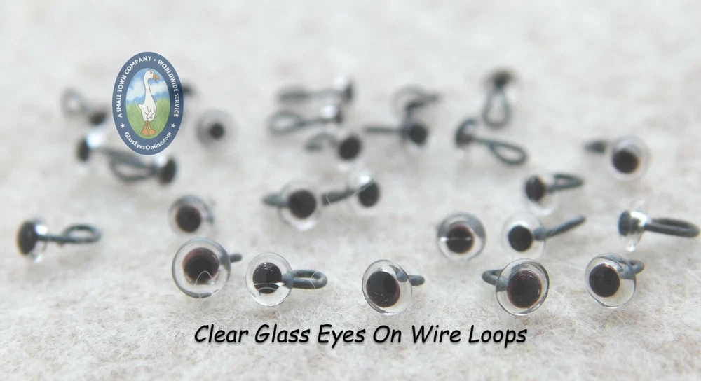 20 Pair Glass Eyes On Wire BENT INTO LOOPS 3mm or 4mm or 5mm For Sculpture, Carving, Polymer Clay, Needle felting, Arts & Crafts ON SALE because the loop is not embedded on both ends. One wire is embedded in the glass and bent with needle nose pliars into a loop. ON SALE while they last. See multiple photos of the eyes and the wire that has been bent into a loop. This Sale is for: 20 PAIRS of Glass Eyes On Wire BENT INTO A LOOP Choose Size 3mm or 4mm or 5mm in available Colors. Dimensions of Glass Eyes: 3mm (approx. 1/8 inch or 0.118 inch) Diameter 4mm (approx. 3/16 inch or 0.158 inch) Diameter 5mm (approx. 3/16 inch or 0.197 inch) Diameter Many Sizes, Colors AND Styles of Glass and Plastic Eyes, Noses, and Joints are available in GlassEyesOnLine eBAY Store Click on Links Below to Find Exactly What You Need Plastic Safety Eyes Glass and Plastic Doll Eyes Fishing Lure Eyes Glass Eyes On Wire Glass Eyes with Wire Loops Insertion Tools and Accessories Joints Noses On Sale YES, we combine orders for cheaper shipping. Foreign Taxes and / or Custom Duties are Not Included in International Shipping. Thank You for viewing this listing. You are invited to visit my eBay Store often for a large selection of Eyes, Noses, and Joints available for all your arts & craft projects.