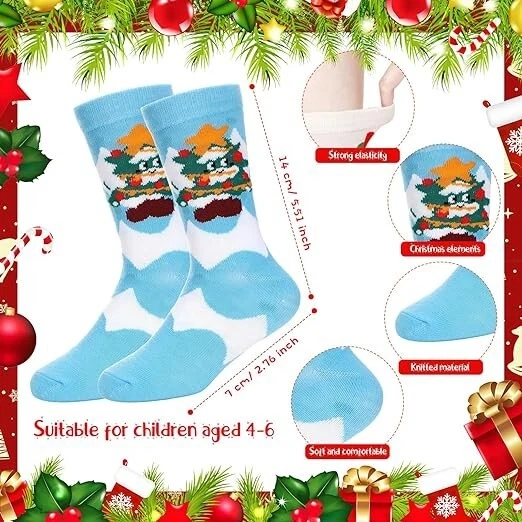 (( Shipping will be in one day, sometimes the same day if possible. )) Please visit my store for more great deals 20 Pairs Kids Christmas Socks Bulk Thermal Warm Children Christmas Socks About this item Appropriate Size to Help Your Operation: these Christmas socks for kids bulk are designed with your children comfort in mind; The measurement is approximately 5.51 x 2.76 inches/ 14 x 7 cm, a suitable size for 4-6 years kids; Neither too tight nor too loose, these socks will fit your kids just right, making them suitable for school or leisure Charming Christmas Theme Design: in bright, festive colors and patterns inspired by the Christmas theme, including Christmas tree, snowman, deer and other classic elements, these kids socks Christmas will add to the holiday atmosphere; Children will love the vibrant illustrations, and it will make dressing fun for them Sufficient Quantity to Use: saving time and effort for parents, the package comes with a whopping 20 pairs of child Christmas socks, designed with 20 styles, 1 pair of each; This provides the enough quantity without worrying about quickly running out of Rigorous Quality to Satisfy Diverse Require: the material is responsible for product quality, these bulk Christmas socks kids are made of a blend of cotton and polyester, ensuring their durability, ensuring the softness and breathability, adds a layer of comfort, can withstand numerous wear and use Various Functions in Daily Life: the practicality of these Christmas holiday socks kids extends beyond the festive season; Despite having a distinct Christmas theme, their comfort and warmth make them suitable for multiple uses, whether it is for school, playing outside, or lounging at home, these socks are versatile for various needs in daily life