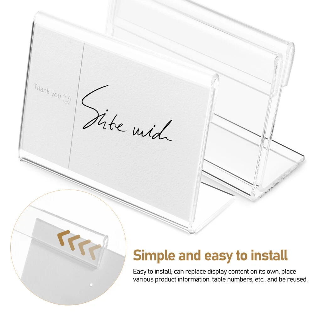 Related Hot Sale 1pc men watches Pocket Watch Box Portable Pocket Watch Case Pocket Watch US $5.68 3 Pcs Secateurs Spring Replacement Springs for Garden Shears Pruning US $4.65 Adult Funny Bib Disabled Feeding Bibs Senior Eating Apron Gift US $8.58 10 Pcs Pet Toothbrush Finger for Cat Dog Toothpaste and US $5.75 1 Pair sewing appliques Embroidery Sequin Patch Clothing Gold/Silver Angel US $5.49 Ink Filler 8x Fountain Pen Ink Converter Ink Absorber Convenient Fill Ink US $8.99 | Baby | | Books & Magazines | | Business & Industrial | | Cameras & Photo | | Clothing, Shoes & Accessories | | Collectibles | | Computers/Tablets & Networking | | Crafts | | Home & Garden | | Jewelry & Watches | | Cell Phones & Accessories | | Consumer Electronics | | Sporting Goods | | Toys & Hobbies | | Video Games & Consoles | | Health & Beauty | Product Description Collecting listings has surprises Description . They are good additions to any wedding decorations or any display uses. That's because our product can meet your requirements. Small but multi-purpose, this table price place card is suitable for displaying reception location cards, table number cards, menus and other items. If you are in search of some practical and delicate sign holders, then your research is here Features -Transparent design: The acrylic sign holders are highly effective for displaying the contents inside, for you to have good using feeling. -Sufficient quantity: Enough quantity of the table place cards can be used as place cards at weddings and receptions, or as a stand for name cards, of great use. -Long service life: Different from traditional disposable table number sign, our acrylic blank signs are reusable for long time. -Wide : These acrylic signs are suitable for home, hotel, wedding, birthday, housewarming, party, banquet and other occasions. -Easy to use: Side panel slot sign holders for displaying menus and cards in horizontal format, bring you much convenience. -Color:Transparent -Material:Acrylic -Size:9.00X6.00X3.00cm/3.54X2.36X1.18in table place card holders Package includes 20 x acrylic signs Contact US 1.If you have some inquires or problems, Please feel free to contact us. 2.We will reply your email within 1 business day (except weekend). 3.When delivery is delayed or items are damaged during delivery, please email us first before you leave feedback. Thank you. People Who Viewed This Item Also Viewed Toilet Vacant Sign Occupied Vacant Slider Sign Vacant Occupied Door Sign for Hom US $4.68 Do Not Knock Sleeping Hanger Sign Exquisite Wooden Sign for Baby Room US $6.47 Vintage DIY Door Address Numbers Cast Iron Metal Door Gate Number 4 for House US $9.53 ID Plate Office Door Signs Bathroom Occupied for US $4.59 50 Pcs Retail Signs Tags Advertising Commodity Price Explosion Stickers US $4.64 Window Opening Auxiliary Lever Push and Pull Rod Blind Curtain Tools Tie US $9.68 2pcs Flamingo Welcome Plaques for Outdoor Door Decor US $12.38 DIY Practical Creative Birthday Reminder for Home Office Club US $9.73 4 Pcs Sucker Pads With a Bolt Suction Cups for Glass Table Tops windows US $5.73 4pcs Carved Wood Corner Decals Unpainted Furniture Corner Applique US $6.88 20 Pcs Candle Empty Cup Aluminium Tea Light Metal Holder Tealight US $6.0 Evil Eye Hanging Handmade Hanging Ornament Evil Eye For Car for Car Key Decor US $5.71 3D Squirrel Toilet Seat Sticker Removable Bathroom Decals Self Adhesive Toilet US $4.25 6Pcs Anti-Collision Window Stickers Bird Decal Bird Alert Decals US $5.89 Classification Labels Clothes Storage Decals Label Clothing Sort Stickers US $6.15 Artificial Plants Indoor Wood Knot Decor for Living Room Bed US $5.75 Lighthouse Home Decoration Wood Lighthouse Nautical Theme Large US $12.76 10PCS heavy duty wall hangers Home Utility Hooks Transparent Wall Hanger Rubber US $8.44 10 Pcs Desktop Display Support Photo Frame Easel Back Picture Holder Crystal US $6.2 Bamboo Wood Carved Corner Onlay Applique Furniture Large Molds US $7.79 6 Pcs Photo Frame Ornaments Small Picture Frames Tiny Retro Model US $4.81 20 Pcs Plastic Invisible Sticky Board Hook Vertical Plate Holders Wall Hanger US $5.55 Wall Decor Stickers Living Room Mirror Decorative Mirrors Three-dimensional US $6.55 Pyramid Jewelry Holder Sculpture Egyptian Figurine Decor Desktop US $18.27 On Feb 9, 2025 at 17:58:10 PST, seller added the following information: