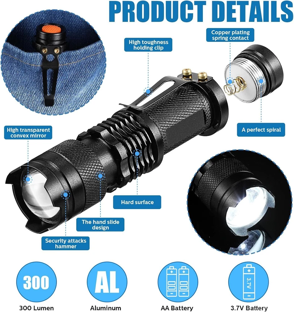 20 Pieces LED Flashlight Torch Mini 3 Mode Tactical Flashlights Small Water...