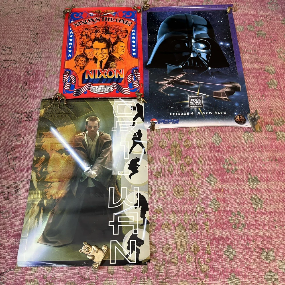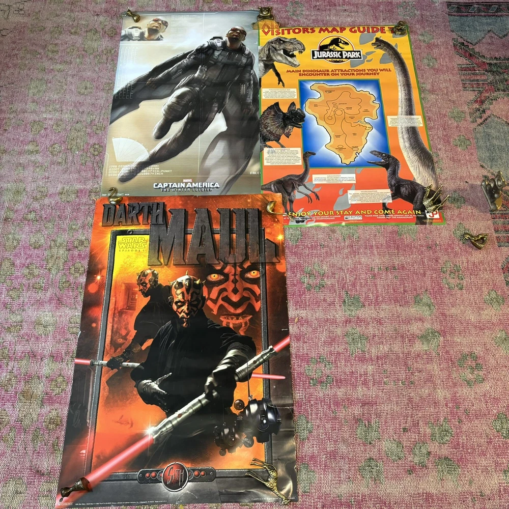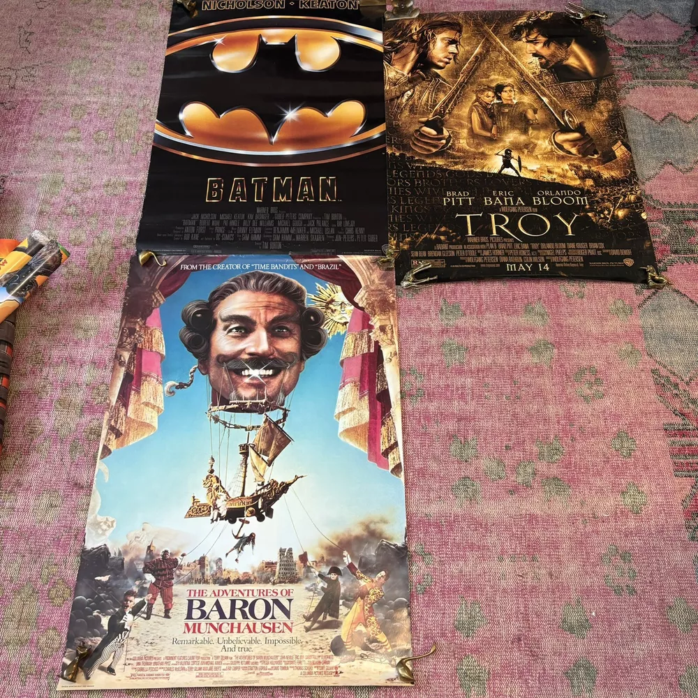 All are used. Some have rips, pin holes and some are rolled. I have about 30 or so in total. Did not nor will I photograph them all. I priced them low. What is photographed is enough to justify my price. I’m not separating. One of the star wars posters sales for my asking price so don’t message me about a better deal. They will ship rolled in a proper tube.