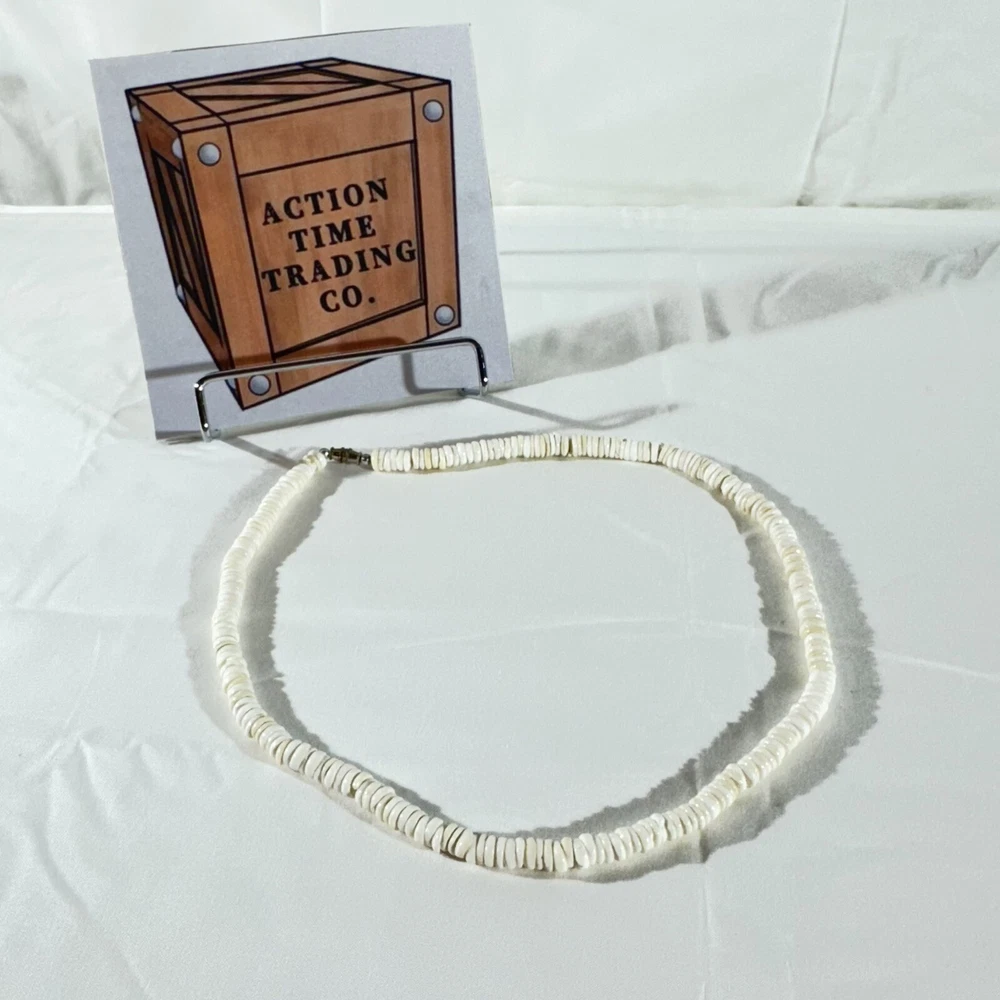 ACTION TIME TRADING CO. Details about this item: 20" Puka Shell Necklace Authentically Hand Made - Screw Clasp - Pre-Owned This item has been cleaned using safe disinfectants and cleaning materials. You can't go wrong with a Puka Shell Necklace! This item is in very good condition but is an item that has been owned previously. Photographs may not translate all conditional discrepancies and the item may have some signs of cosmetic wear not visible to the camera but may be seen with the naked eye. Please, see the item listing and photographs for fuller details. A small Christian faith tract will be included in the order. I have accumulated much positive feedback regarding how I do business here on eBay. My faith, and want to share it, will not change this. *Thank you* Shipping Information: All items are hand-packed using quality locally sourced packaging materials. Items are shipped via USPS Ground Advantage (unless otherwise listed) and typically takes 2-5 Days to receive. However, shipping can take up to 20 days depending on USPS, Weather Conditions, Service Failures, and other circumstances. Items are shipped, upon receipt of payment, typically within 1 to 3 Business Days. Shipping is only available within the Continental United States. Returns: Returns are not accepted. Please purchase this item at your own regard. *Ai induced descriptions are vetted but may not be 100% accurate. * This 20" Puka Shell Necklace is a beautiful piece of jewelry that is authentically hand made with natural cream-colored shells. The necklace features a barrel clasp closure and is 20 inches in length. The shells are arranged in a stylish and unique design that showcases the beauty of nature. This vintage necklace is perfect for unisex adults who appreciate the beauty of natural materials. The Puka brand is known for its high-quality jewelry, and this necklace is no exception. It is a perfect addition to any collection and is sure to make a statement.