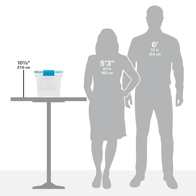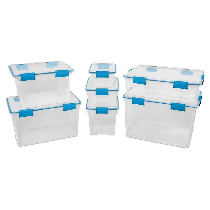 You may also like Clear Plastic Storage Bin 18Qt Stackable Container W/ HI-Rise Lid 8 Pack New 67.59 USD 71.15 USD Free shipping 5% off 30 Compartment Wall Mount Storage Organizer Bins Home Garage Office Crafts New 28.68 USD 30.19 USD Free shipping 5% off Airtight Plastic Storage Bins W/ Lids Stackable Heavy Duty Clear Containers New 38.05 USD 40.05 USD Free shipping 5% off Large Stackable Plastic Storage Bin Tools Accessories Organization Garage Use 17.8 USD 18.74 USD Free shipping 5% off Large Plastic Storage Bin Snap-On Lid Stackable Container W/ Carrying Handles US 10.2 USD 10.74 USD Free shipping 5% off 17 Gallon Plastic Storage Bin Stackable Lid Lockable Tote Organizer Container US 19.71 USD 20.75 USD Free shipping 5% off Airtight Clear Plastic Storage Bins W/ Lids 5Pk Stackable Organizing Containers 28.84 USD 30.36 USD Free shipping 5% off Stackable Storage Bins W/ Lids Durable Plastic Containers Home Organization New 24.74 USD 26.04 USD Free shipping 5% off Large Clip Box Clear Plastic Storage Bin W/ Latching Lid Stackable Organizer New 10.58 USD 11.14 USD Free shipping 5% off 2 Pack Clear Plastic Desktop Drawer Organizer 3 Drawer Stackable Storage Unit US 25.87 USD 27.23 USD Free shipping 5% off Stackable Plastic Drawer Storage Organizer Modular Living Room Office Garage New 20.48 USD 21.56 USD Free shipping 5% off Durable Lockable Storage Box Hunting Gear Camping Supplies Outdoor Equipment New 23.3 USD 24.53 USD Free shipping 5% off 's Gasket Box line is the ideal storage solution for keepsakes, photographs, important documents, linens, and other items that need to be stored away and protected. Gasket Boxes offer a gasketed seal to safeguard items from both air and moisture, keeping those special belongings safe from the elements, dust and pests. Durable, tight-fitting latches keep the lid secured to the base, and the clear lid and base allow contents to be easily identified, without opening the lid. The 20 Quart size is ideal for organizing school projects, paperwork and photographs that need to be protected, and fits conveniently on 16" wire closet shelving, making it ideal for organizing and storing small items in the closet. The gasketed seal also helps to keep pet food and other bulk foods fresh longer. The Gasket Box line has eight sizes, ranging from 7. 5 Qt to 120 Qt, providing a variety of storage options for those items that need to be kept safe as well as for longer term storage needs. The 12 Qt and 20 Qt Gasket Boxes use the same lid, allowing both the shallow and deep sizes to be stacked in same footprint. The overall assembled dimensions of this item are 16 1/8" L x 11 1/4" W x 10 7/8" H. 20 Quart Gasket Box, Weather-Resistant Clear Storage Bin with Lid, Blue, 6 Count Outside Dimensions: 16 1/8" x 11 1/4" x 10 7/8" Interior Dimensions at bottom: 12" x 8 5/8" x 9 5/8" Ideal solution for those items that need to be stored away and protected Gasketed seal safeguards items from air and moisture, dust and pests Durable, tight-fitting latches keep the lid secured to the base Clear base and lid allow for easy identification of contents, without having to open it BPA-free and phthalate-free You may also like Wall Mounted Folding Desk Space Saving Floating Table Home Office Tool Room New 49.58 USD 52.19 USD Free shipping 5% off Mountable Paper Towel Holder Portable Design Easy Install Space Saving RV Home 16.98 USD 17.87 USD Free shipping 5% off Thermogenic Weight Loss Drink Mix Tangerine Mimosa 20 Sticks Energy Supplement 27.5 USD 28.95 USD Free shipping 5% off Wrought Iron Log Holder W/ Canvas Tote Heavy Duty Firewood Storage Solution New 48.38 USD 50.93 USD Free shipping 5% off Ceramic Blade Peeler Soft Grip Ergonomic Kitchen Tool Easy Vegetable Peeling New 8.44 USD 8.88 USD Free shipping 5% off Modern Wall Mount Toilet Paper Holder Satin Nickel Finish Bathroom Accessories 21.88 USD 23.03 USD Free shipping 5% off Soft Bolstered Dog Bed 36 Inch Crate Fleece Cushioning Non Slip Design New 26.26 USD 27.64 USD Free shipping 5% off Durable Foldable Duffel Bag Lightweight Travel Gym Sports Bag Shoe Compartment 41.21 USD 43.38 USD Free shipping 5% off Smart Air Purifier Pets 3-Stage Filtration Quiet Auto Mode Allergens Removal New 245.08 USD 257.98 USD Free shipping 5% off Traditional Mahogany Captains Chair W/ Casters Brass Trim Durable Vinyl New 143.7 USD 151.26 USD Free shipping 5% off High Protein Poultry Variety Pack Wet Cat Food 32 Cans Complete Nutrition New 28.11 USD 29.59 USD Free shipping 5% off Bariatric Rollator Walker Steel Frame Foldable 8in Wheels Padded Seat Backrest 153.12 USD 161.18 USD Free shipping 5% off