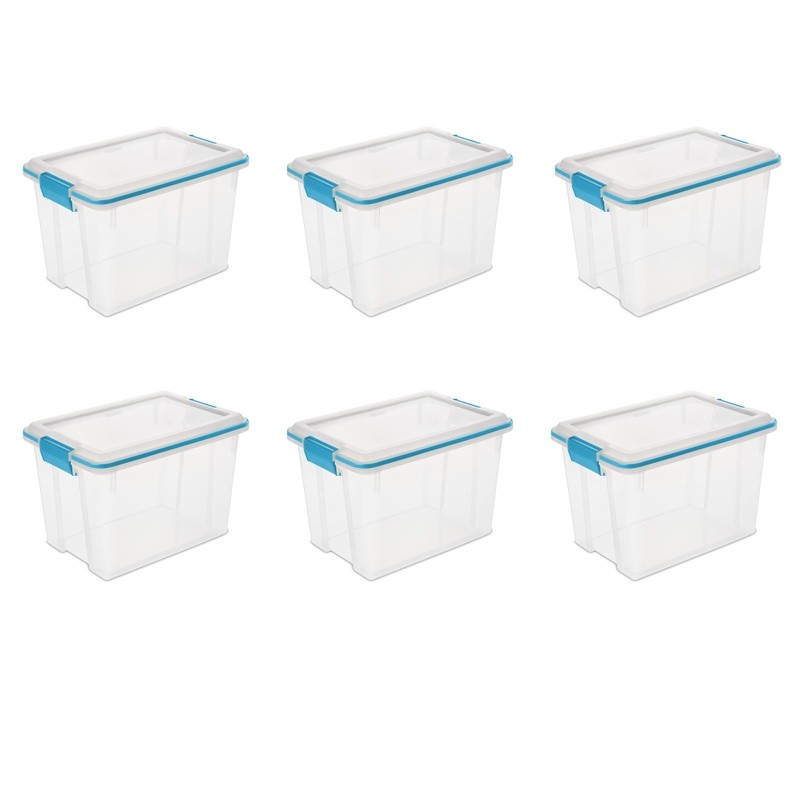 20 Qt Clear Stackable Plastic Storage Bins with Gasket Lids - 6 Pack Organizers
