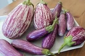 20 Spanish Heirloom striped eggplant vegetable plant seeds flowers rare colorfu