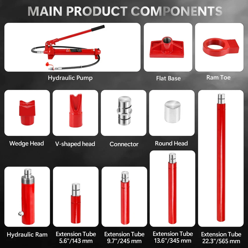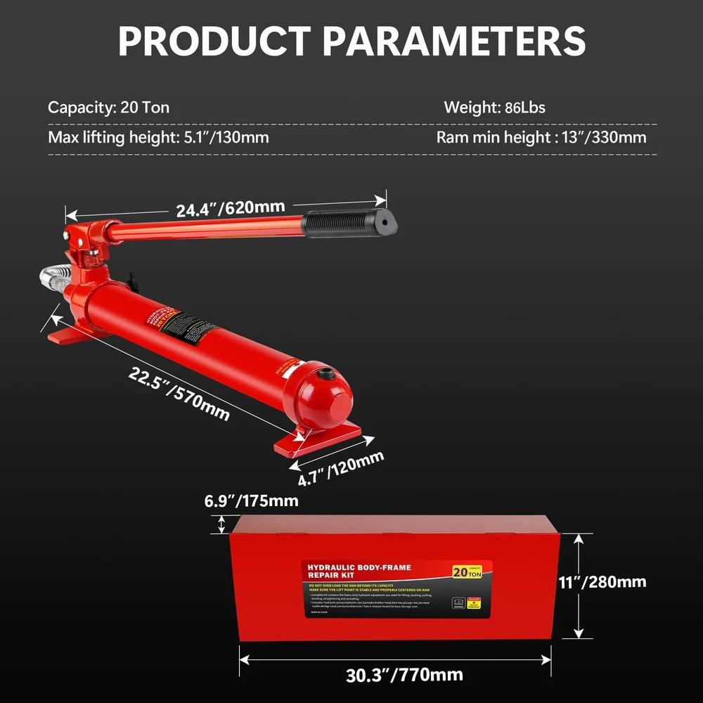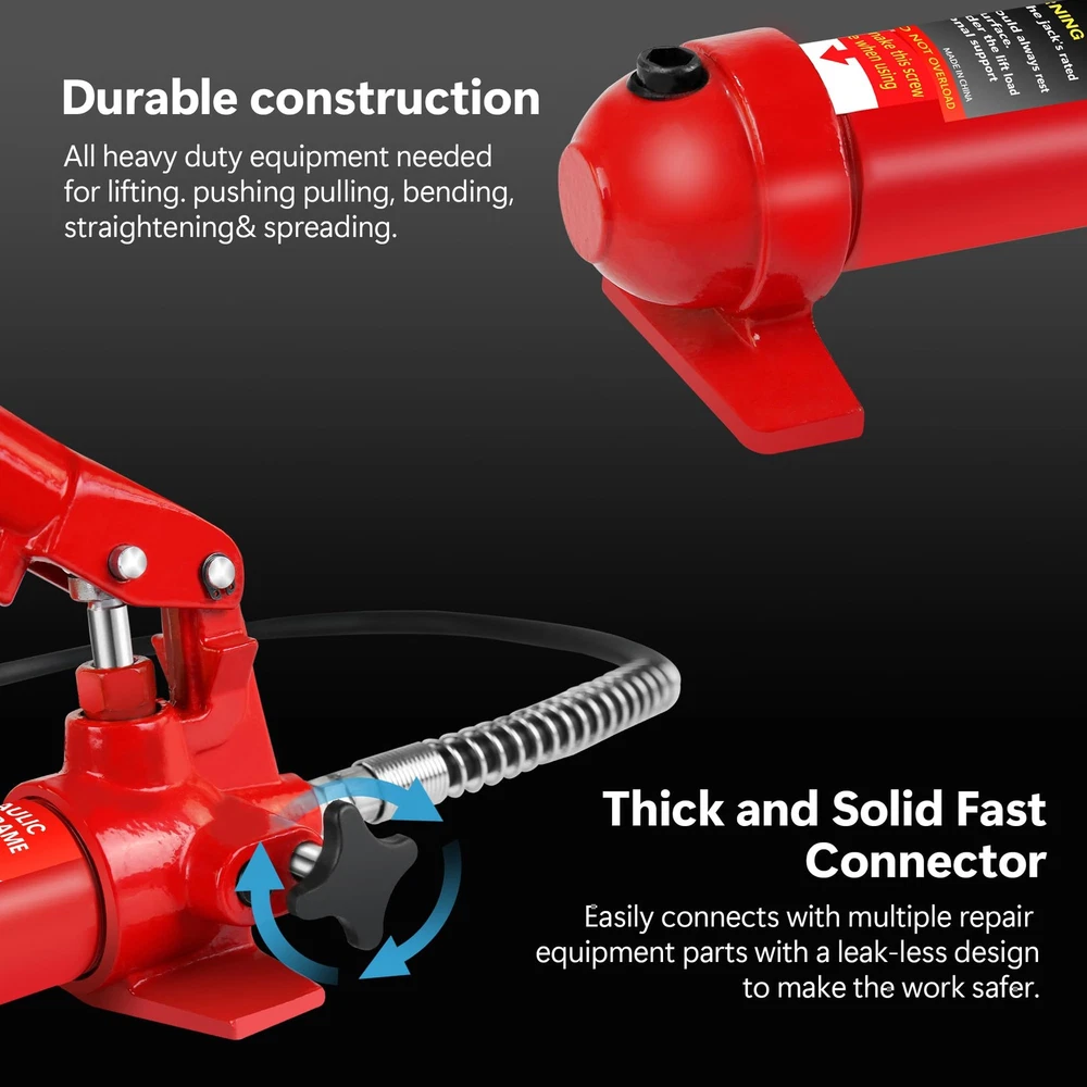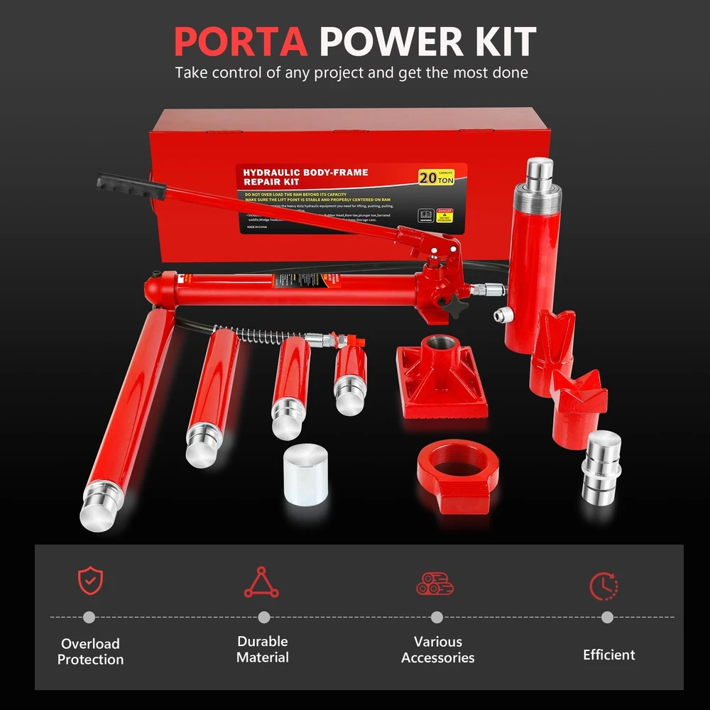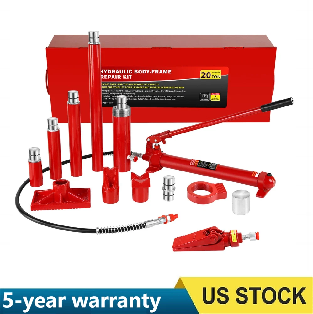 Robust Load Capacity: This 20 Ton Porta Power Kit boasts an impressive 10-ton load capacity, making it suitable for a wide range of repair tasks, including automotive, truck, agricultural machinery, and heavy equipment. Max Lifting Height: 5.1" / 130mm; Ram min Height: 12.4" / 315mm. Comprehensive Accessory Set: The porta power hydraulic kit comes equipped with a serrated saddle, spread wed-ge, rubber head, flat base, ram toe, plunger toe, wed-ge head, V-base, male connector, and hydraulic hose, catering to diverse repair needs. Safe & Reliable Design: Featuring an automatic overload system, the porta power helps prevent damage to hydraulic rams and equipment, enhancing safety and reliability during use. Portable Design: The porta power kit includes a plastic carrying case for convenient s 20 Ton Porta Power Kit Portable Hydraulic Jack 17 Pcs Ram Max Lifting Heigh 5.1" About the item: Robust Load Capacity: This 20 Ton Porta Power Kit boasts an impressive 10-ton load capacity, making it suitable for a wide range of repair tasks, including automotive, truck, agricultural machinery, and heavy equipment. Max Lifting Height: 5.1" / 130mm; Ram min Height: 12.4" / 315mm. Comprehensive Accessory Set: The porta power hydraulic kit comes equipped with a serrated saddle, spread wed-ge, rubber head, flat base, ram toe, plunger toe, wed-ge head, V-base, male connector, and hydraulic hose, catering to diverse repair needs. Safe & Reliable Design: Featuring an automatic overload system, the porta power helps prevent damage to hydraulic rams and equipment, enhancing safety and reliability during use. Portable Design : The porta power kit includes a plastic carrying case for convenient storage and transport of all components, ensuring neat organization and efficient handling of repair tasks. Reliable Assistant for Challenging Tasks: With user-friendly operation, this 20 Ton Porta Power Kit effortlessly tackles a variety of demanding tasks, providing an ideal repair solution for your workshop or garage and helping you effectively overcome challenges. Payment Delivery details Terms of sales About us Contact us Payment We accept payment either via PayPal or any of the following credit cards; Visa, MasterCard, Discover, and American Express. Delivery details 1. We will delivery out at the handing time when we receive the payment. 2. The delivery time is 3-5 business days to US by usually time.The parcel maybe delay 1-2day of the weekend.Due to the bad weather,Holidays,Hot Season ect.the parcel maybe delay,If you have any problems,mssage us,we will try our best to solve it. 3. We ship to your eBay address. Please make sure your eBay address is correct before you pay. 4. If you want to change the shipping address,message us before our send out. Terms of sales If you are not satisfied with the item for any reason, please do not quick to leave negative/neutral feedback even open request and case without any communication with us. We devote ourselves making EVERY CUSTOMER in 100% Satisfactory and resolve any problem. Thank you for your understanding and recognition,we are always leave positive feedback to all our customers. About Reply: All replies will be sent to your email box, if you do not get response within 24 hours (Sat. & Sun. excluded) please check your eBay My Messages in case that our emails will be filtered automatically by your settings. About us skybridge99 is a brand new store but we are one of North America’s top online suppliers of specialized, high-quality aftermarket online retailers and suppliers, committed to developing new markets. We primarily offers tool sets, auto parts, home goods, etc..With over 20 years of product selection and manufacturing experience, we delivers unparalleled quality, value, service and satisfaction. Our highly-trained, professional staff offer in-depth knowledge and personalized assistance for customers worldwide. Providing our customers with a simple, hassle-free experience with best-in-class customer service is more than a goal. Contact us Any problem please rest assure to contact us by eBay message first. We will reply you as soon as we can. We will deal with it within 24hs on working days. Brand GARVEE Manufacturer Part Number Porta Power Hydraulic Jack Kit, Type Hydraulic Jack Number of Pieces 1 Drive Hydraulic Vehicle Type Heavy Duty/Commercial Material Steel Capacity per Stand 44000 Lbs Warranty 5 Year Weight 89.40 lb Maximum Lift Height 5.1"