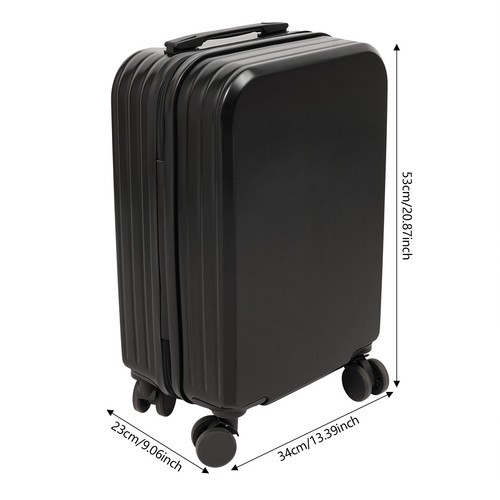 Welcome to my store!!! Welcome to alwaytty01~ Description This 20" travel luggage suitcase is specially designed for convenient travel. It is made of tough materials, which are sturdy and durable, safeguarding the safety of items during the journey. The 3-digit password lock design can ensure privacy. It can be freely switched between carrying and dragging, making it easy to handle various travel scenarios. Come and buy it! 【创意表达】 This 20-inch suitcase is specially designed for convenient travel and is meticulously crafted from sturdy and durable materials to ensure the safety of items during the journey. The three-digit password lock it is equipped with not only provides privacy protection but also adds a sense of security. Whether carried by hand or towed, this suitcase can handle it with ease and meet the needs of travel scenarios. It is not only your capable assistant during your journey but also the ideal companion for business trips. Key Features Premium Material: This product is made of premium ABS, PVC, and polyester materials with a vacuum-forming process that is lightweight, durable, impact-resistant, and wear-resistant , ensuring a long service life. Suitable Size: The size of 13.39*9.06*20.87 inches meets the maximum boarding luggage size specified by the International Air Transport Association and various airlines. You can rest assured to bring it on the plane without going through check-in procedures. 【创意表达】 Ideal Carry-on Size : Measuring 13.39×9.06×20.87 inches, this luggage complies with the maximum carry-on size regulations set by IATA and major airlines. It allows hassle-free boarding without the need for check-in procedures, eliminating baggage claim waits for hassle. Safe and Reliable: High-strength double zips and three-digit combination lock provide security to keep contents safe. The smooth inner lining effectively protects the internal items from damage. 【创意表达】 Secure & Damage- Resistant : Equipped with reinforced double zips and a precision 3-digit combo lock, it defends against unauthorized access. Its inner lining is made of fine and smooth material, which can effectively prevent any wear or damage to the internal items, ensuring that your valuable items remain safe and sound under elegant protection. Adjustable Design: The thickened pull rod adopts a two-step retractable design on the outside, so as to meet the needs of different heights and usage scenarios. 【创意表达】 Ergonomic Adjustable Mechanism : The reinforced telescopic handle features a 2-stage retractable design, making the height adjustment both flexible and convenient. This exquisite design aims to meet the needs of users of different heights and diverse usage scenarios. High Load Capacity : The rectangular construction and premium materials give this product a load-bearing capacity of 88.18 lbs , giving you peace of mind. 【创意表达】 Reinforced Load-Bearing : The reinforced rectangular framework, combined with high-class material, enables this product to support up to 88.18 lbs, bringing you a sense of security and peace of mind. Its sturdy and durable design ensures that you enjoy a worry-free experience during use. Easy to Move: It has four shock-absorbing universal wheels that can swivel 360°, gliding smoothly on smooth and slightly uneven surfaces with less noise interference. Easy to Clean: A simple construction and smooth surface make this product easy to clean, you just need a towel (not included) and water to easily remove dust and residue. Ideal Gift: Its classic design and large capacity make this product a great gift to your family, friends, and loved ones. Buy with Confidence: We stand behind all our guests and look forward to assisting you with your purchase. It is our pleasure to answer your confusion and questions. The end of the story between us is not "we sell and you buy". Details Top Handle: The convenient handle makes lifting and carrying your luggage easy. 【创意表达】 Ergonomic Top Grip : This ingenious handle not only greatly enhances the convenience of luggage handling but also endows you with a sense of composure and elegance during your journey. Cup Holder: It is convenient for you to place an umbrella, water cup, and drinks, keeping your hands free and facilitating easy access . At the same time, the foldable design allows it to free up more space when not in use. 【创意表达】 Quick-access Utility Cup Holder: It provides you with an ideal space to store umbrellas, water cups, or various beverages. It ingeniously frees your hands while ensuring that these items are within easy reach, greatly enhancing the convenience and comfort of use. At the same time, its foldable design can ingeniously free up more space when not in use, effectively improving the space utilization efficiency. USB Port: It is convenient for charging electronic devices when needed. 【创意表达】 Hidden Power Port : It is equipped with a USB charging interface, providing convenience for charging electronic devices. This ingenious function enhances practicality and convenience, enabling you to infuse electronic devices with vitality. Application It can be widely used in short-distance domestic and international tourism, business trips, vacations, exchange visits, academic conferences, and other occasions, which is suitable for most people such as students, business people, and tourists. Specifications Material: ABS, PVC, Polyester Process: Vacuum Forming Process Color: Black/Light Yellow Shape: Rectangular Style: Modern Assembly Required: No Mount Type: Freestanding Initial Password: 000 Wheel Type: 4 * Shock-absorbing Universal Wheels Trolley Bar Length: 2 Stages(Outside); 1 Stage (Inside) Total Load Capacity: 40kg/88.18 lbs Product Size: 34*23*53cm/ 13.39*9.06*20.87 in Package Size: 56*35*25cm/22.05 *13.78*9.84 in Gross Weight: 3.1 kg/6.83 lbs Net Weight: 2.94kg/6.48 lbs Package Included 1* 20" Travel Luggage Suitcase Notes Please ca