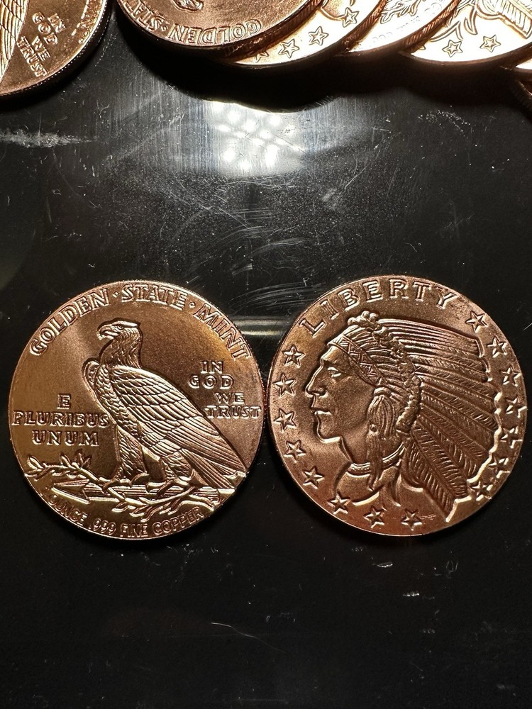 The product is a full tube of 20 one ounce .999 fine copper rounds featuring an incuse Indian design, minted by Golden State Mint in the United States. These uncirculated medals are a valuable addition to any coin or medal collection, showcasing the unique craftsmanship and artistic design of the mint. With no modifications made to the original product, these copper rounds are a classic representation of American numismatics. ALL ITEMS ARE SIGMA TESTED!!!) - [ ] Positive,Negative, Neutral!!! Please do not be quick to leave a neutral or negative feedback if you have an issue with your purchase. PLEASE contact me first! There is almost no problem I am unable to solve from my end. Except maybe world hunger and mental health! 😜 I can’t help you there. But, if you have some issue with your item I will work on your behalf .Please give me a shot at resolving any problem for you first. (What you see in picture is “EXACTLY” what you will receive!!!!) If you have any questions about anything please feel free to reach out at anytime I truly appreciate yalls time and bids. Thx The item being sold is sold exactly as shown in the photo. Please note that the item will be shipped via Canada Post with tracking. The condition of the item is based on my personal opinion; please review the photos carefully to make your own judgment regarding its condition. All sales are final. If there are any issues with your order, please message me directly before leaving any feedback. I am committed to providing customer satisfaction and will work with you to resolve any concerns. Refunds and returns will be considered if you are not 100% satisfied with your purchase. Thank You for Considering My Listing! Thank you for taking the time to view my item! I truly appreciate your interest and consideration in making a purchase from me. Please feel free to check out all the other items I have for sale—I may have something else that catches your eye. Your support means a lot! ONCE PACKAGE IS MARKED DELIVERED, I AM NOT RESPONSIBLE FOR PACKAGES THAT ARE LEFT IN MAILBOXES, PORCH, OR PROPERTY, ETC THAT ARE AT RISK FOR THEFT IF YOU DO NOT HAVE A PO BOX!!!