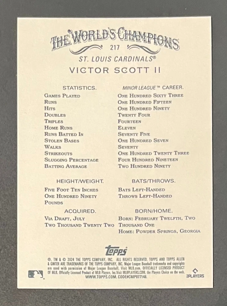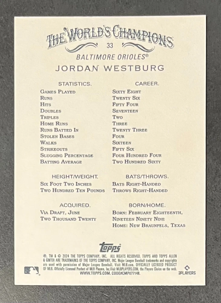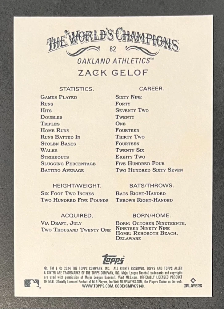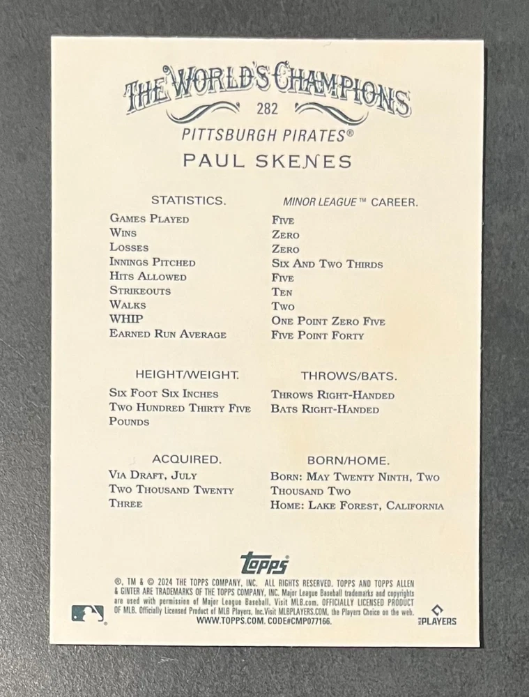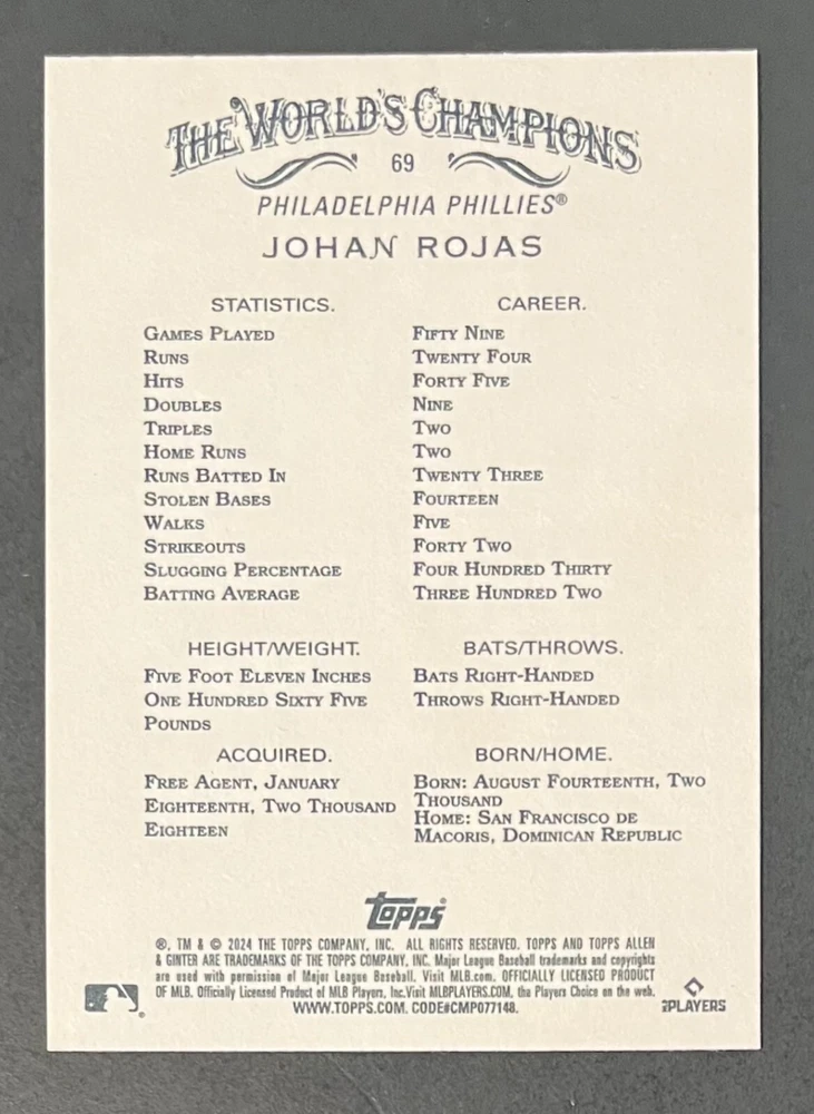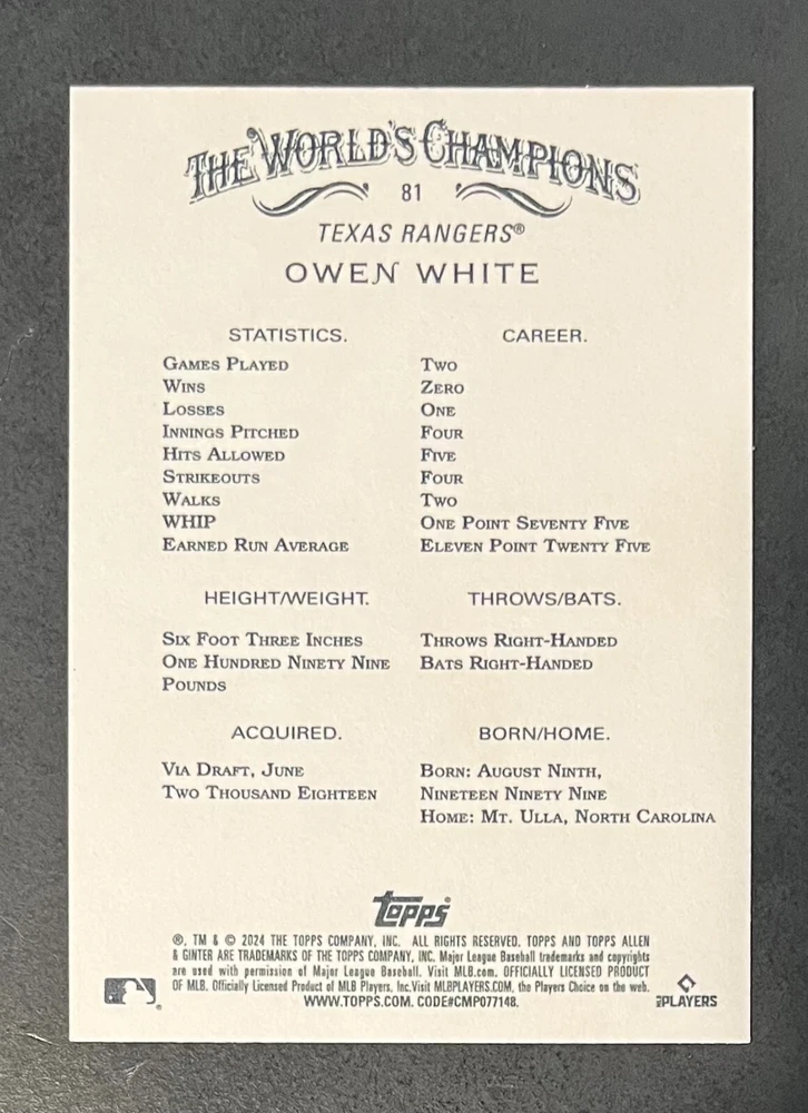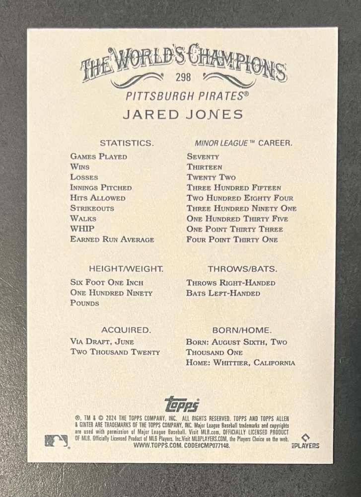 Features:Base Set, Framed, Parallel/Variety, RookieType:Sports Trading CardParallel/Variety:RelicLeague:Major League (MLB)Signed By:Lane ThomasManufacturer:ToppsSeason:2024Estado del artículo:UngradedTeam:Milwaukee Brewers, New York YankeesAutographed:YesSport:BaseballSet:2024 Allen & GinterPlayer/Athlete:Aaron Judge, Babe Ruth, Bob Gibson, Derek Jeter, Jackson Chourio, Nolan Ryan, Paul Molitor, Randy Arozarena, Rickey Henderson, Shohei Ohtani, Olivia Pichardo