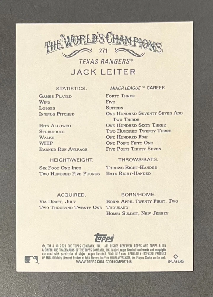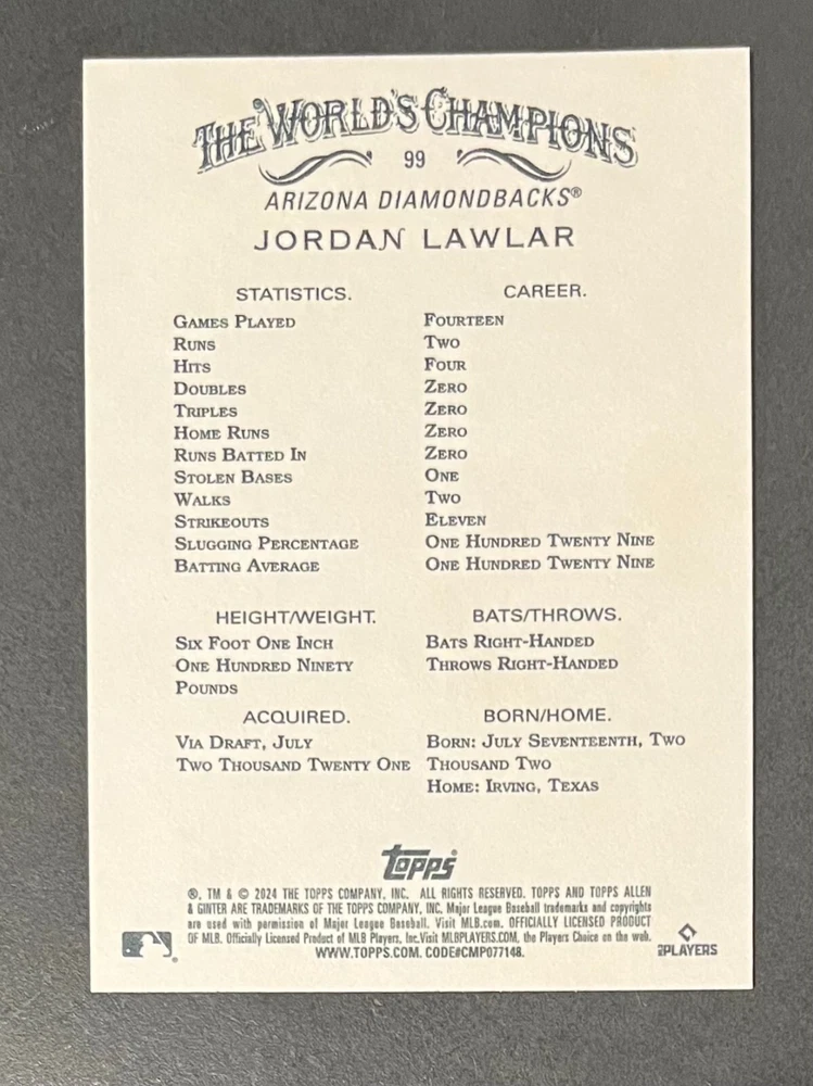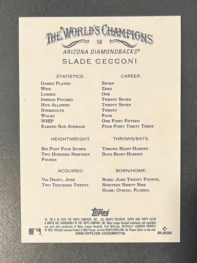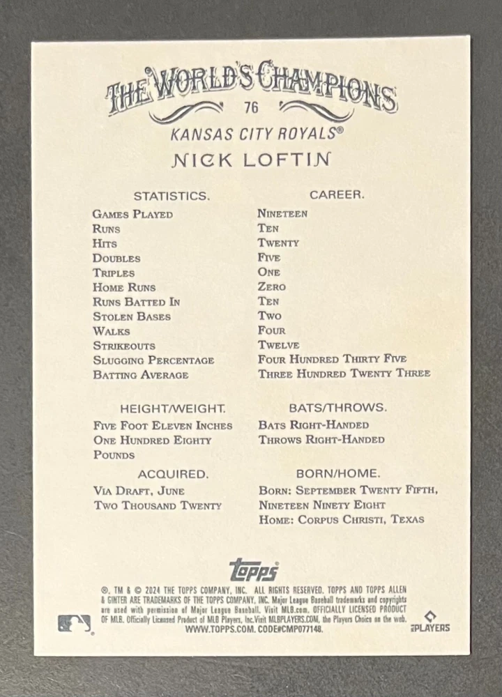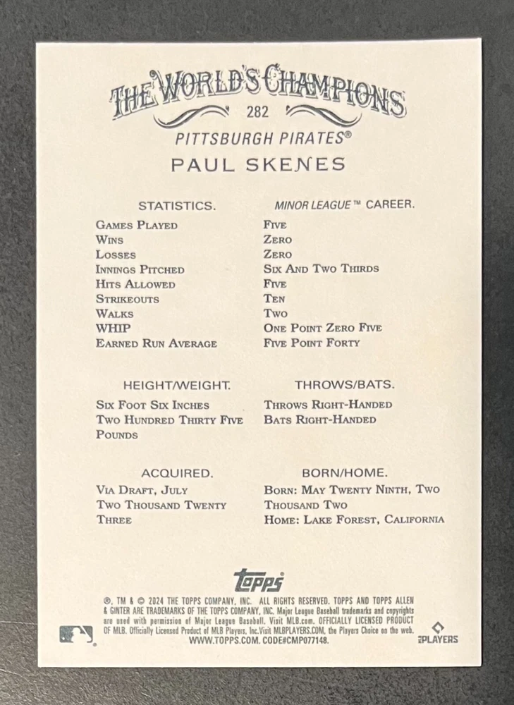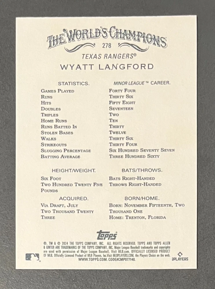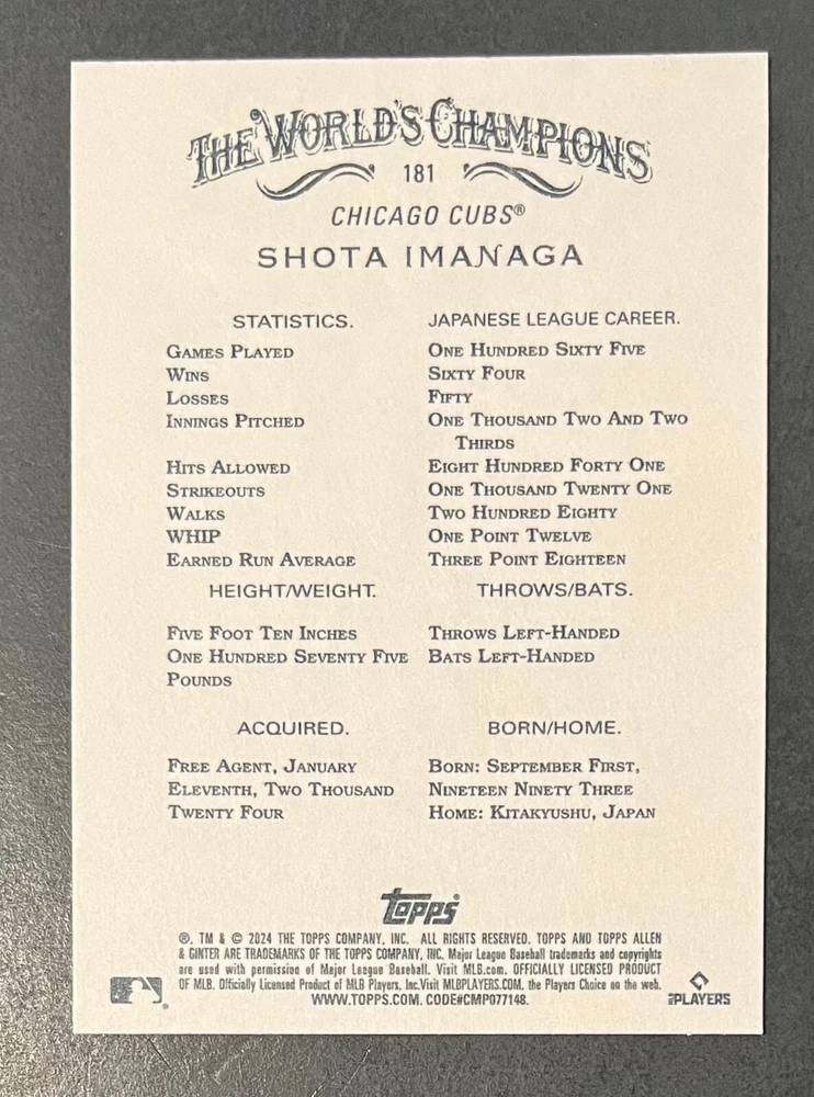 Features:Base Set, Framed, Parallel/Variety, RookieType:Sports Trading CardParallel/Variety:RelicLeague:Major League (MLB)Signed By:Lane ThomasManufacturer:ToppsSeason:2024Estado del artículo:UngradedTeam:Milwaukee Brewers, New York YankeesAutographed:YesSport:BaseballSet:2024 Allen & GinterPlayer/Athlete:Aaron Judge, Babe Ruth, Bob Gibson, Derek Jeter, Jackson Chourio, Nolan Ryan, Paul Molitor, Randy Arozarena, Rickey Henderson, Shohei Ohtani, Olivia Pichardo