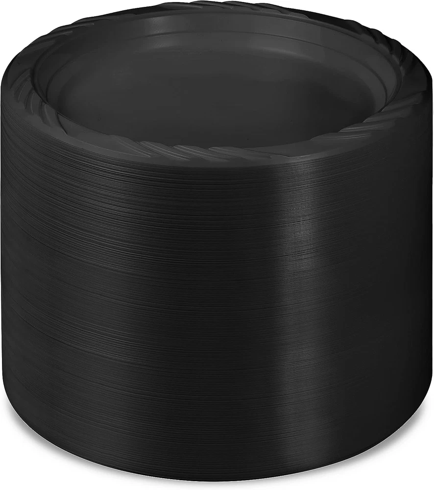 Premium quality decorative black plastic plates made to save your time and energy, just toss the plates when you’re done, no clean-up necessary Great set to serve 200 guests, Includes: 200 small 7“ appetizer, salad, dessert, plates Ideal for weddings, receptions, birthday parties, holidays, picnics, catered events and all occasions Made of durable high quality 100% food grade BPA free non-toxic heavy duty plastic Bulk pack of 200 plastic plates to accommodate all your guests. Premium quality decorative black plastic plates made to save your time and energy, just toss the plates when you’re done, no clean-up necessary. Great set to serve 200 guests, Includes: 200 small 7“ appetizer, salad, dessert, plates. Ideal for weddings, receptions, birthday parties, holidays, picnics, catered events and all occasions. Made of durable high quality 100% food grade BPA free non-toxic heavy duty plastic. Bulk pack of 200 plastic plates to accommodate all your guests.