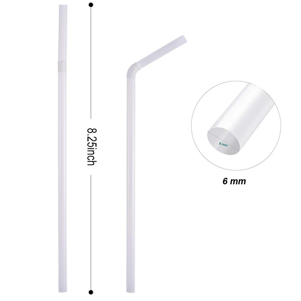 200 Count 8.25" Eco-friendly Bendable Compostable PLA Straws 200, White Product Details Originated from Nature: Petrochemicals free, no pollution.Made of plant based material in accordance with the standards of ASTM 6400, EN13432,BPI (CERT# 10529115) and OK COMPOST. Eco Flexible PLA Straws: You can comfortably enjoy the drinks on the sofa or bed without getting up or turning your neck.Being bendable, they are friendly to disabled and bedridden people. A Fantastic Alternative to Plastic Straws:They are sturdy, bendble and as convenient as regular straws. These biodegradable straws will neither become soggy nor disintegrate into your drink. Good for Your Health: No hazardous substances will be released due to overheating, and no ingredients will be blended into the drink due to oily substances contact (cream, etc.). What You Get: 200 compostable bendy straws with the size of 8.25" * 0.25"(8 1/4 inch* 1/4 inch). Suitable for most beverages, containers and different occasions. Plasticless 100% Compostable Flexible Drinking Straws - A fantastic alternative to plastic straws.They are made of materials such as modified corn starch and PLA. The maximum heat-resisting temperature of these plant-based straws is 150°F. Please note: Each batch of products may have an error of ± 1/5 inch.Composting is the process of breaking down organic waste through microbial digestion to create compost. Our straws meet all the requirements in the European Norm EN 13432 and/or the US Standard ASTM D6400. Both specifications require that biodegradable/compostable products completely decompose in a composting setting in a specific time frame, leaving no harmful residues behind. The proper composting environment is warm, humid, and rich in nutrients and microorganisms. Therefore, simply putting the straw into water or burying it in the soil can't quickly complete the entire degradation process.However, even in a dry room, the straws will begin to degrade within 12 months. Please use them as soon as they arrive.