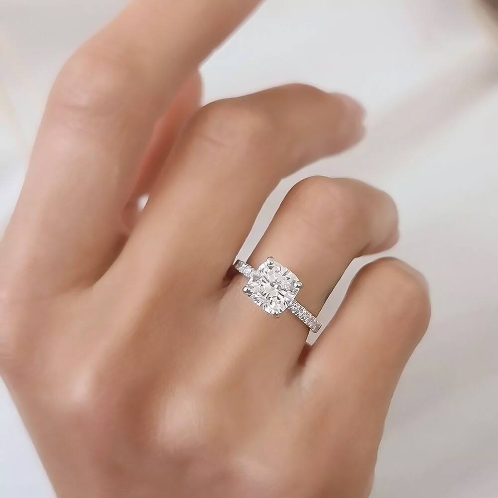 2.00 Ct Certified Cushion Cut White Diamond 925 Sterling Silver Ring For Women
