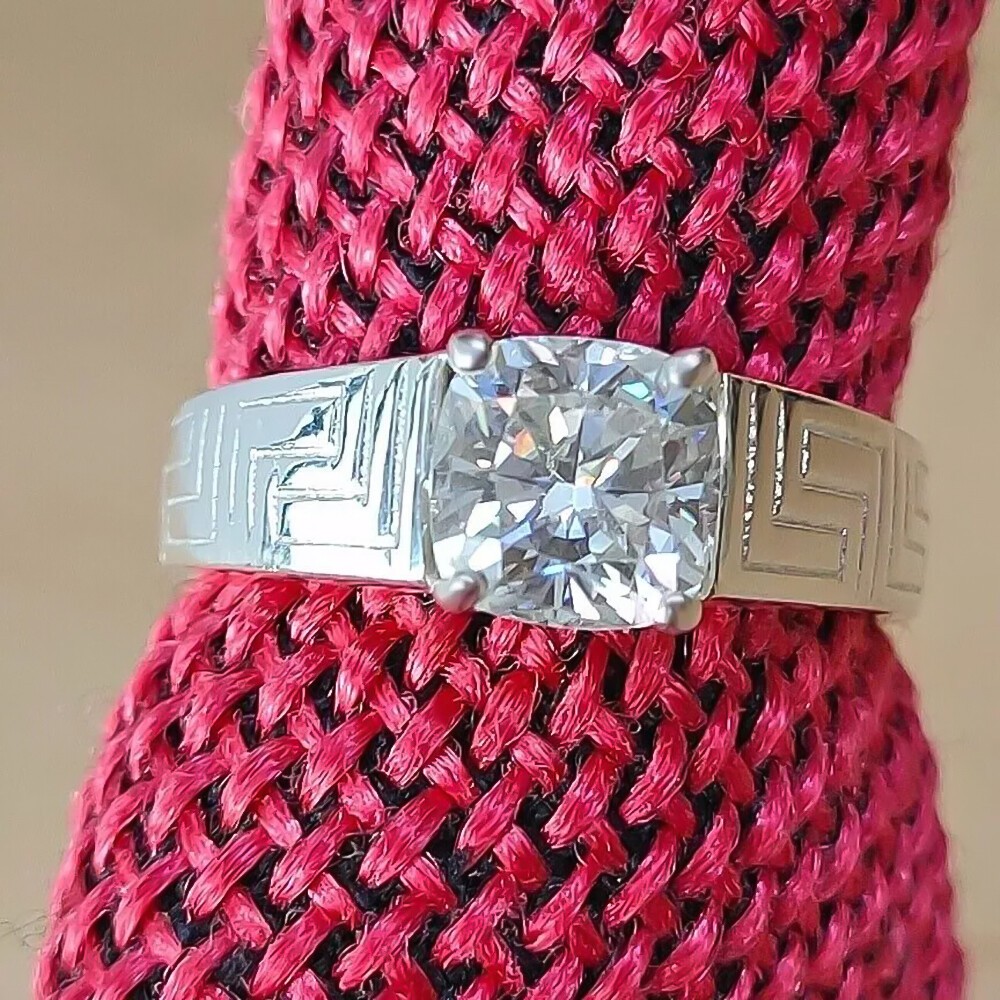 $ 92.82.00 Ct Certified Cushion Cut White Diamond 925 Sterling Silver Solitaire Ring