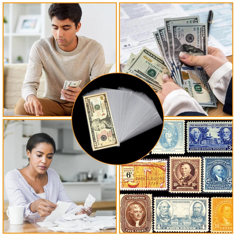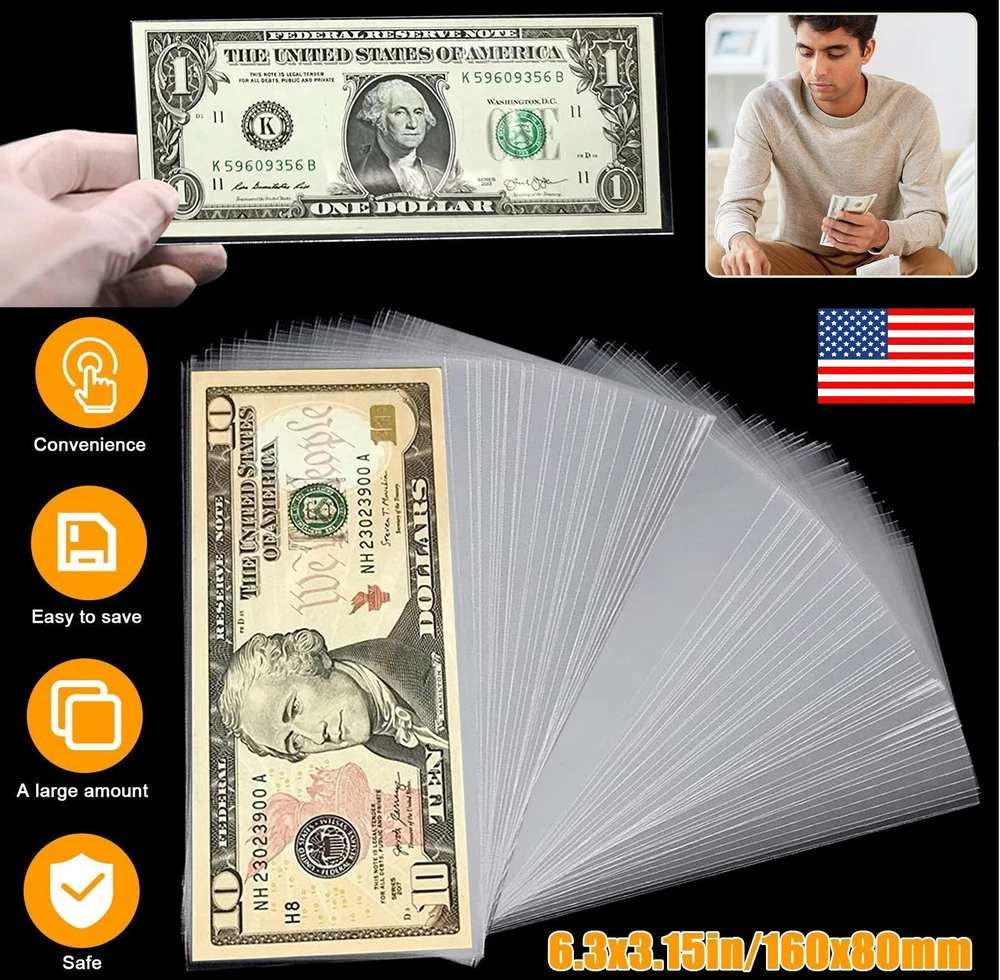 200× Currency Sleeves Paper Money Bill Holder Banknote Storage Protector Case US