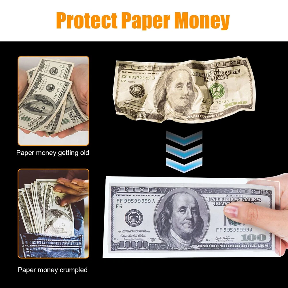 Manufacturer Part Number: Does not apply Color: Transparent Features: strong flexibility and strong moisture resistance Modification Description: Money Protection Bag Type: Banknote Protection Bag Suitable for: collecting banknotes, bills, etc. Brand: Unbranded Dimensions: 160x80mm (6.3x3.15in) MPN: Does Not Apply