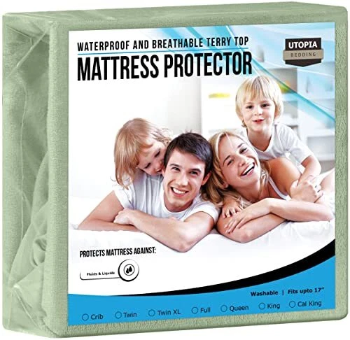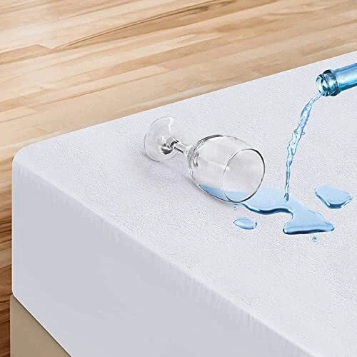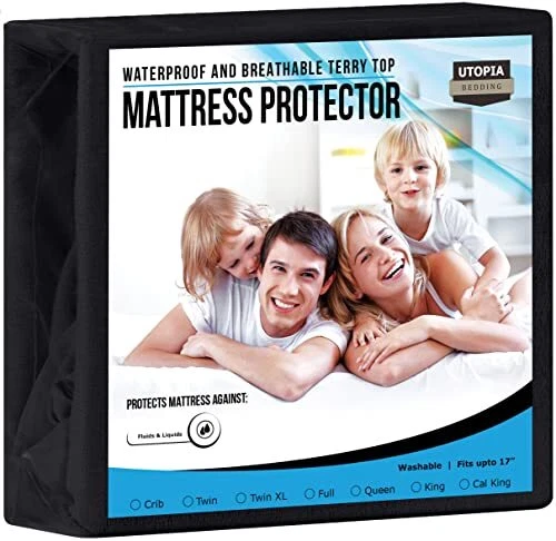 MATTRESS PROTECTOR - Fits Twin XL size mattress perfectly with dimensions 39 inches by 80 inches by 15 inches, featuring professionally turned hems and deep fitted pockets Fits Queen size mattress perfectly with dimensions 60 inches by 80 inches by 17 inches, featuring professionally turned hems and deep fitted pockets Fits Twin size mattress perfectly with dimensions 39 inches by 75 inches by 15 inches, featuring professionally turned hems and deep fitted pockets Fits California King size mattress perfectly with dimensions 72 inches by 84 inches by 17 inches, featuring professionally turned hems and deep fitted pockets Fits Full size mattress perfectly with dimensions 54 inches by 75 inches by 15 inches, featuring professionally turned hems and deep fitted pockets Fits King size mattress perfectly with dimensions 78 inches by 80 inches by 17 inches, featuring professionally turned hems and deep fitted pockets COMFORT SURFACE: Soft blended surface is extra absorbent, cozy and breathable. The specially designed waterproof top and high quality seam construction stops liquids from passing through. FITTED STYLE ALL AROUND ELASTIC - Mattress protector with a fitted style all round elastic band creates a secure fit on mattress depths WATERPROOF PROTECTION - Mattress protector protects your mattress from unwelcome spills and keeps your mattress clean and safe. High quality TPU backing resist any leakage into the mattress CARE INSTRUCTIONS - Machine wash cold on gentle cycle; tumble dry low; do not iron; do not bleach; do not use fabric softener Product Description January February March April May June July August September October November December 1 2 3 4 5 6 7 8 9 10 11 12 13 14 15 16 17 18 19 20 21 22 23 24 25 26 27 28 29 30 31 2022 2021 2020 2019 2018 2017 2016 2015 2014 2013 2012 2011 2010 2009 2008 2007 2006 2005 2004 2003 2002 2001 2000 1999 1998 1997 1996 1995 1994 1993 1992 1991 1990 1989 1988 1987 1986 1985 1984 1983 1982 1981 1980 1979 1978 1977 1976 1975 1974 1973 1972 1971 1970 1969 1968 1967 1966 1965 1964 1963 1962 1961 1960 1959 1958 1957 1956 1955 1954 1953 1952 1951 1950 1949 1948 1947 1946 1945 1944 1943 1942 1941 1940 1939 1938 1937 1936 1935 1934 1933 1932 1931 1930 1929 1928 1927 1926 1925 1924 1923 1922 1921 1920 1919 1918 1917 1916 1915 1914 1913 1912 1911 1910 1909 1908 1907 1906 1905 1904 1903 1902 1901 1900