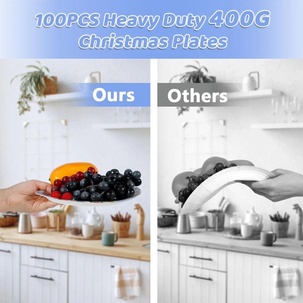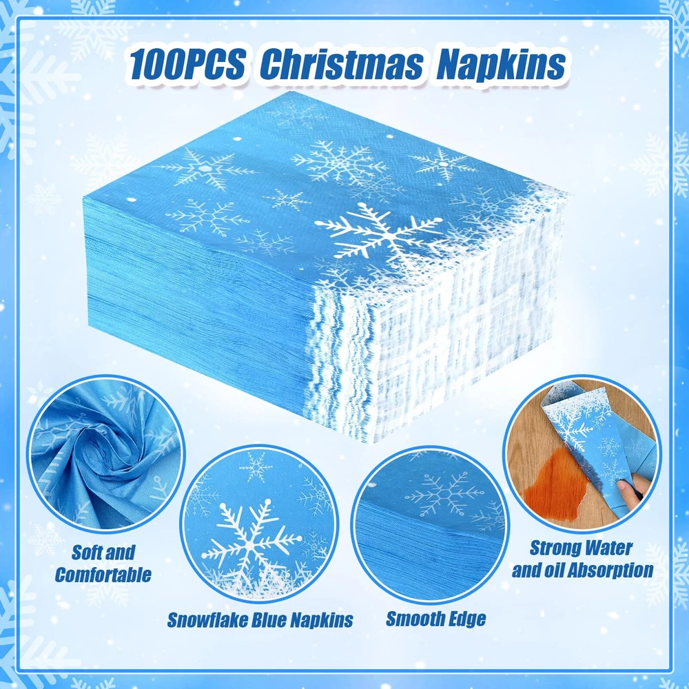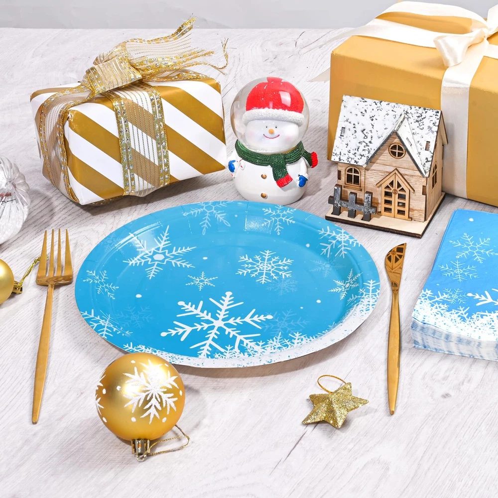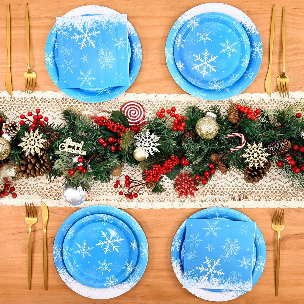 PAPER PLATES AND NAPKINS PARTY SUPPLIES: The beautiful Christmas plates and napkins will be a great decoration for Christmas gatherings. This Christmas plates and napkins set is ideal for any occasion and daily life. It suits for birthday, barbecues, wedding, Celebration, Christmas themed parties. SERVES 50 GUESTS: Our Christmas plates and napkins set comes with 50PCS of 9" dinner paper plates, 50PCS 7" paper dessert plates, 100PCS luncheon napkins (folded 6.5" x 6.5"). 200PCS disposable heavy duty plates and napkins sets ideal for Christmas party. CHRISTMAS Snowflake PATTERN: The blue Christmas disposable plates and napkins set is printed with Christmas Snowflake patterns.The Christmas plates and napkins will be the best Christmas table decoration. HIGH QUALITY: Thickened Christmas paper plates allow for holding various foods. Leakproof and microwave oven safety disposable plates fit every party. Highly absorbent & no crumbs Christmas dinner napkins will your good cleaning helper. DISPOSABLE & CONVENIENT: Do you worry about cleaning after every party? The disposable Christmas dinnerware set can be throwed directly inside the trash without washing.They will make your Christmas parties more relaxed and enjoyable.
