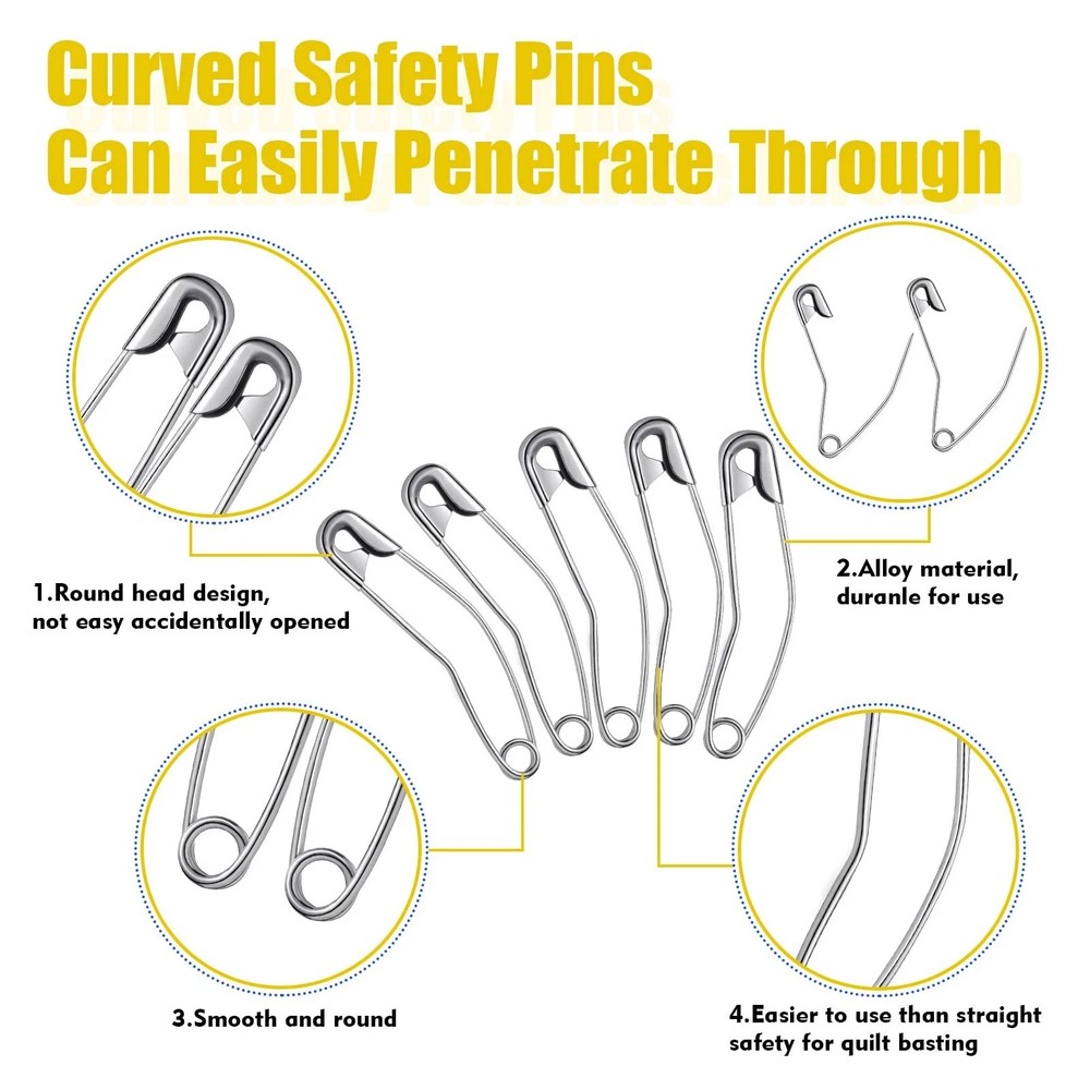 100% Money Back Guarantee if you are not satisfied with your purchase! ___________________ Description: 200 Pcs Curved Safety Pins 2 Inch Quilting Basting Pin Bent Safety Pins for Quick Basting Knitting and Quilting, Silver Package Includes: the package will provide you with 200 pieces of curved safety pins, they are composed of quality material and adequate in quantity, can well meet your daily use and replacement needs, you can also share them with your friends Quality Material: the quilting pins are composed of iron and steel, which are of reliable quality, not easy to rust, corrode, break, deform or fade, serviceable for long time use Practical Curved Design: the quilt pins safety curved are curved with right angle, which makes it much easier to insert into multiple layers and fix on clothing than straight safety pins, more practical to apply in daily life Widely Applicable: the quilting supplies and tools enjoy a wide range of applications, such as quilting, sewing, knitting, jewelry making and other DIY projects, which can not only effectively reduce the risk of goods broken, but also exercise your manual dexterity Size Information: the quilting basting pins measure about 2 inches/ 50 mm and of Size 3, can fit your different craft projects demands, providing you with a convenient using experience ________________________ 100% Money Back Guarantee: We offer 30 Day Money Back Guarantee from the day you purchased if you’re not satisfied with your product. If you have any questions about our products, please contact us as soon as possible. Customer satisfaction is our absolute priority. Shipping: We are always working hard to ensure your package arrives as soon as possible. Please understand that some factors like weather, high postal traffic, and the performance of shipping companies are outside of our control. We offer free shipping to the lower 48 states and ship within 3 business days of payment, usually sooner. We do not accept P.O. Boxes. Please provide a physical address. You will be notified via eBay messages as soon as your items ship. Delivery: We will ship out the item in 2-3 working day after receiving the payment. Usually the delivery takes 2-5 business days. If you don't receive the items after 10 days, please feel free to contact us. You will get a replacement or a full refund. Please DO NOT open a return request or leave negative feedback without asking for help . Returns (Get Free Return Label): We offer a 30-Day Return Policy on defective/wrong items or items which you are not completely satisfied with. You have the option for a full-refund or an exchange of the item. No need to buy eBay return label. Contact us via eBay messages and get free return label. Returned items must be in all of the original packaging and include all of the original accessories or items that came with it. The item and package should be in original condition. Contact Us: Any queries or issues incurred, please feel free to contact us via eBay message, we will get back to you within 24 hours. Please DO NOT open a return request or leave negative feedback without asking for help. Feedback: Your feedback is very important to us. After you get your package and you are satisfied with our service, please leave us positive feedback. We are highly appreciated for your POSITIVE feedback and 5 stars. Enjoy shopping.