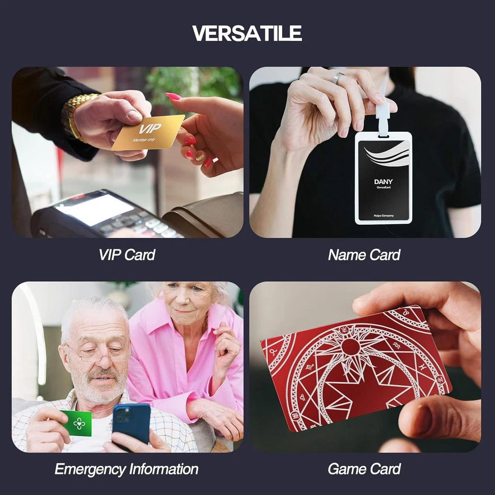 Durable Material: Our engraving blanks are made of high-quality aluminum alloy, ensuring long-lasting use and resistance to bending or breaking. Generous Quantity: This package includes 200 colorful laser blanks in 10 different colors, with 20 cards in each color, providing you with ample options for your various needs. Suitable Size: Each card measures 3.38 x 2.12 inches (8.6 x 5.4 cm) and 0.21 mm/0.01 inch thick, similar to the size of a bank or credit card, making it convenient for carrying and storage. Versatile Use: These metal business card blanks can be used for various purposes, such as business cards, luggage tags, emergency contact cards, thank-you cards, game cards, and more, allowing you to express your creativity and meet different needs. Compatible with Laser Engraving Machines: Our cards can be used with various laser engraving machines, such as Circut, CNC, Glowforge, Silhouette, CO2, and more, making it easy for you to customize your cards with your desired text, pattern, or design. Looking for a durable and versatile solution for your business or personal needs? Our Laser Engraving Blanks are made of high-quality aluminum alloy, ensuring long-lasting use and resistance to bending or breaking. [Package includes] 200 colorful aluminum cards in 10 different colors 20 cards in each color Suitable size: 3.38 x 2.12 inches (8.6 x 5.4 cm) and 0.21 mm thick, convenient for carrying and storage [Versatile use] Business cards Luggage tags Emergency contact cards Thank-you cards Game cards And more Perfect for entrepreneurs, artists, travelers, and anyone who wants to stand out from the crowd. Ideal for creating unique business cards for your company or personalized gift cards for your friends and family. Order now and experience the durability and versatility of our aluminum cards!