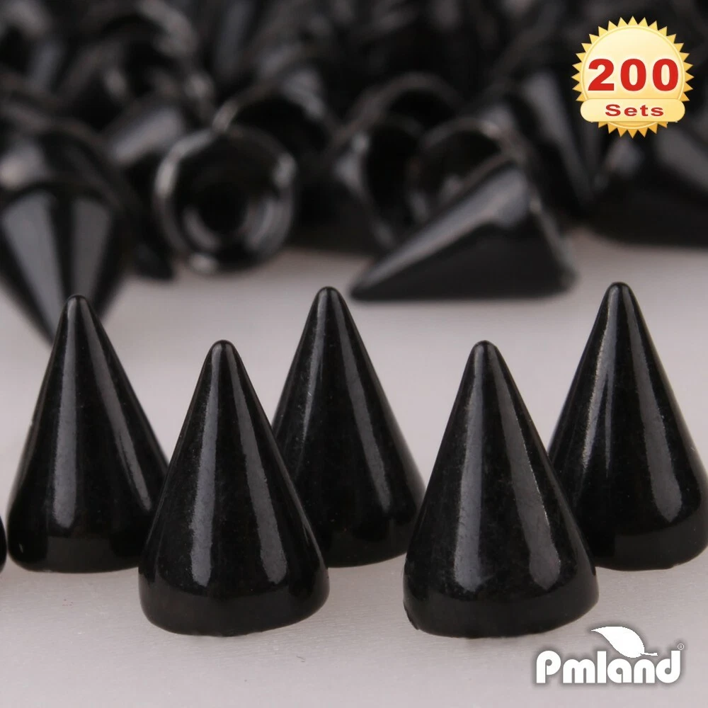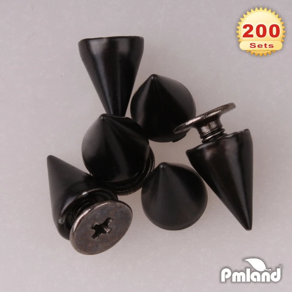 200 sets cone spikes studs with screw 0.38inch x 0.28inch ( 9.5mm x 7mm ) Top quality zinc alloy material Smooth and high quality finish Suitable for shoes, leather, and any type of apparel item Product Description High Quality Material ----- PMLAND cone spikes screwback studs are manufactured by top quality zinc alloy metal. Each spike is smooth with high quality finish, and no casting lines Screwback spikes are designed for perfect fit and easy applications. Easy to apply by simply screwing on. Diverse decoration usage in leather accessories, jackets, belts, shoes, bags, necklace etc. Wonderful DIY crafts & decoration supplies that you cannot miss. In each package, you will get 200 pieces of cone spikes and 200 pieces of screwback studs with screws (together 200 sets), enough pieces to meet you daily project needs. High quality zinc alloy material DIY making leather craft Create your own unique style Different colors meet your needs PMLAND Brand Philosophy PMLAND values our customers by keeping YOUR shopping concerns in mind, therefore, we deliver products with our best: CREATIVITY for your convenient use and fun experience QUALITY by using durable materials, delivering best-in-industry design and monitoring on manufacturing/packaging control SUSTAINABILITY by supplying environment-sustainable, family-friendly, safe and healthy choices.