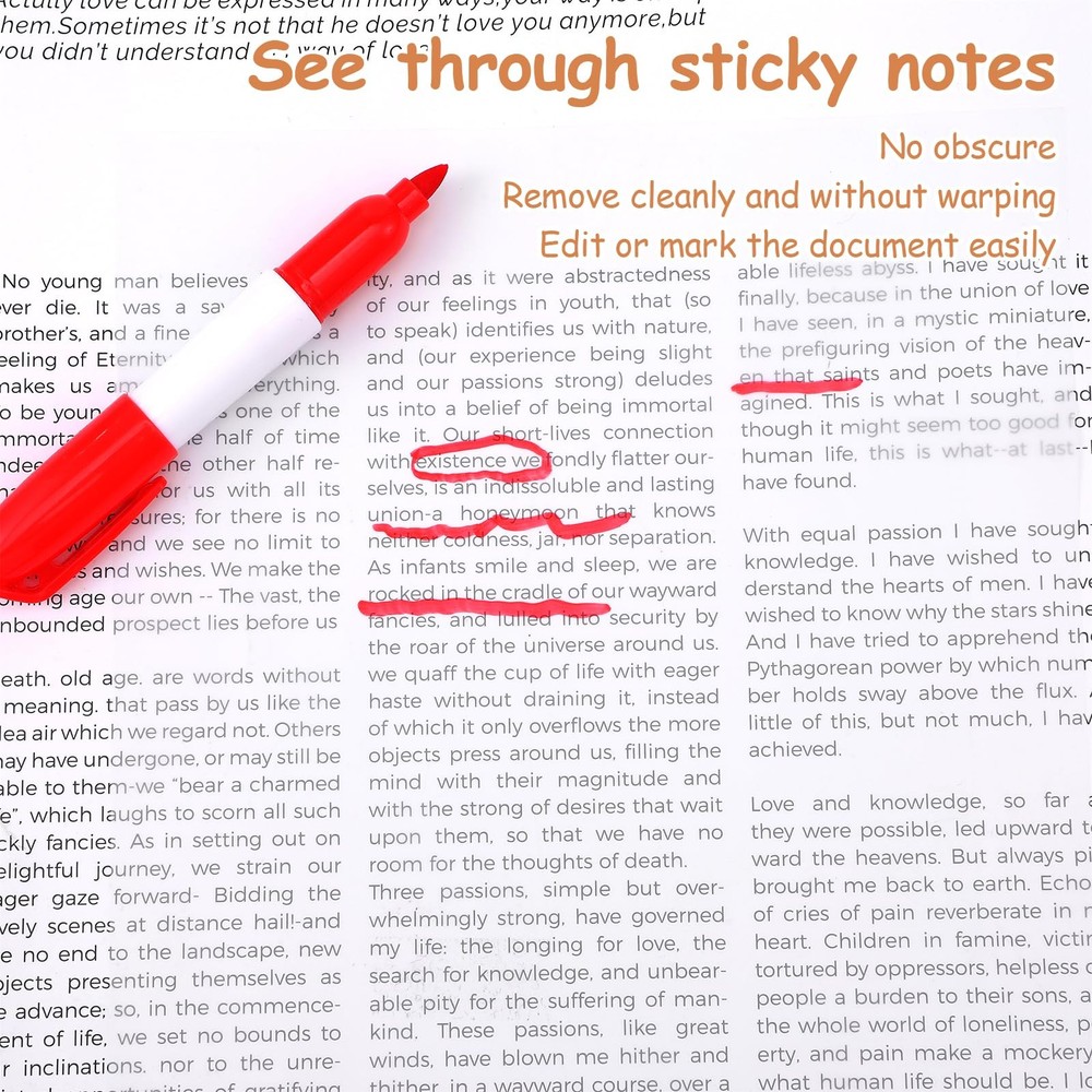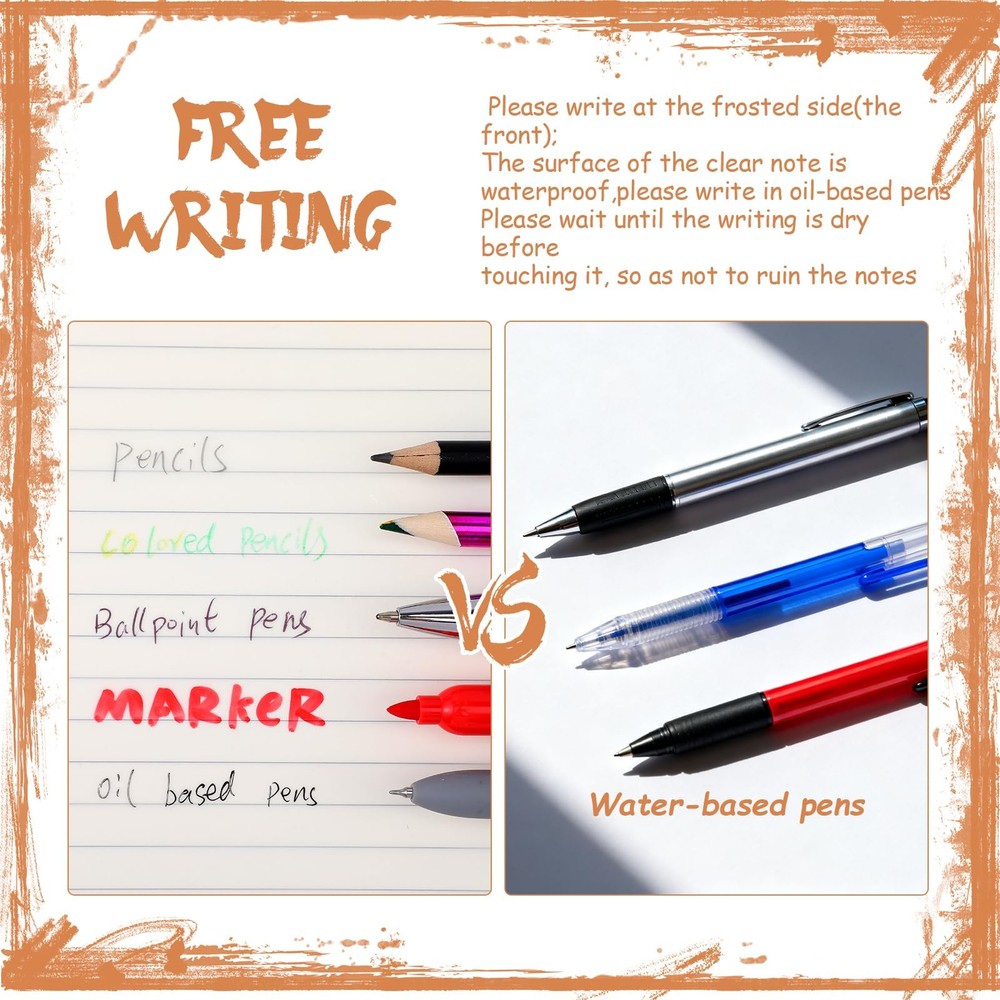 The color may exist a slight difference due to different screen displays. Large Sticky Notes: you will receive 200 sheets of 5.5 x 8 inch sticky transparent notes, each pad has 50 sheets, 2 pads in total; The large size allows you to use these notes on the wall or on large books, and suitable for use in A5 sized documents Warm Reminder: since the transparent note pads are made of waterproof material, it's recommend that you use oil based pens, ballpoint pens, oily markers or pencils, instead of water based pens (pen, fountain pen, water based highlighters, water based marker and so on) to write or draw for a nice experience Wide Range of Uses: these translucent stick notes are suitable for many places, it is recommended to paste on a flat surface, also can be applied in classrooms, offices, and even homes Transparent Color Benefits: featuring a clear coloring, the sticky nursing supplies improve the overall visibility of your writing, the clear color choice lets you overlay the notes on documents without obscuring text, adding convenience to your daily tasks Waterproof Material: crafted from quality PET material, the note taking supplies can make you have a smooth writing experience; The waterproof aspect turns these papers into a reliable choice for long lasting use, whether it to jot down important notes or to organize your tasks efficiently