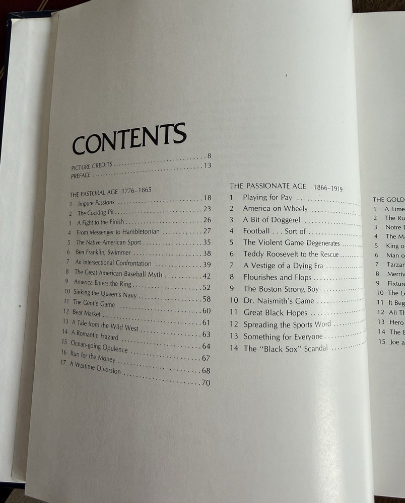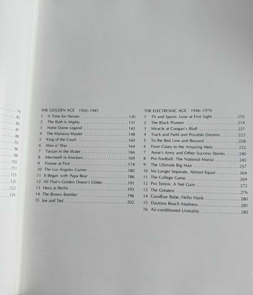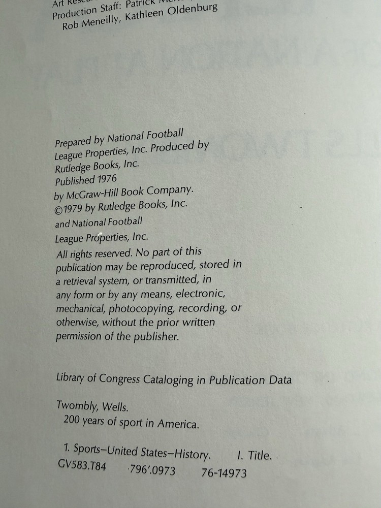 The product is a vintage 1976 edition of "200 Years of Sport in America" by Twombly, a classic sports book in English language. This leather-bound hardcover edition is a collector's item, making it a valuable addition to any sports enthusiast's library. The classicism topic, along with the focus on American sports history, makes it a timeless piece of literature that captures the essence of sports in the United States over the last 200 years. Was Personalized. Very Good Condition. Measures 11 1/4" X 8 1/2" with 287 pages. Packaged Securely