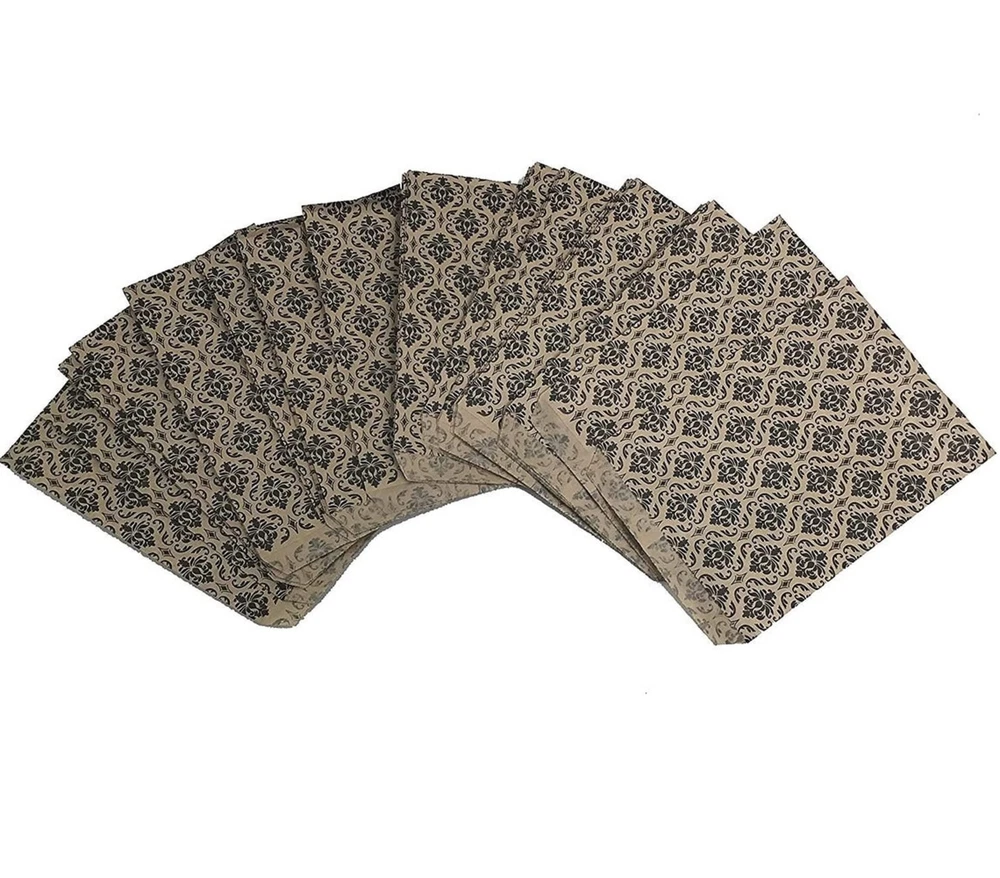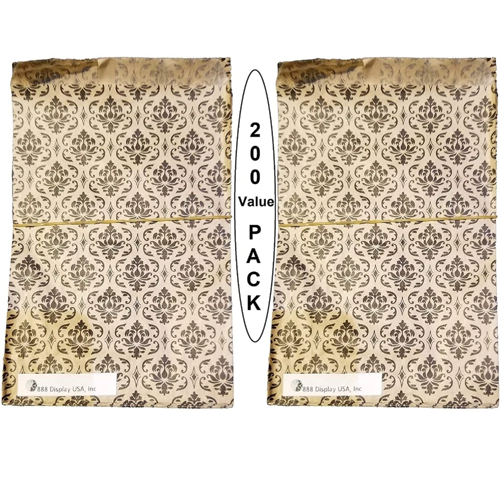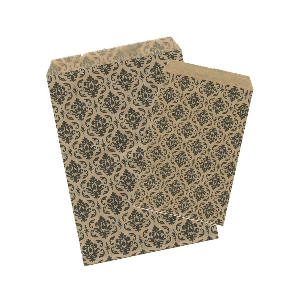High Quality. Damask Black Print Paper Bags. Shipped from New York City. 4 Sizes available Perfect for any parties, weddings, events, or just for your business. Kraft paper flat merchandise bags Conveniently packaged for ease of use. Durable paper for a no tear application Set of 100 bags