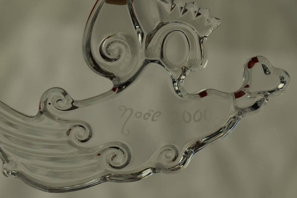 This features a beautiful clear crystal ornament of a flying angel holding a heart with the original box and brochure. Etched on body Noel 2000. Original packaging. Unsigned Mold Blown Etched Noel 2000 Approx 3” x 3" Original box & brochure Made in France Excellent condition See my other listing for a huge estate collection of extraordinary and very fine Christmas ornaments in glass and sterling silver collected from the 1970s until 2015. Check back often as it will take weeks to list the thousands of Christmas items. Shipping: We ship USPS, UPS or Fedex unless requested otherwise Return Policy: Please notify of return within three days of receiving. Return with original tags/security marks and in original received condition. International Buyers: Postage does not include any customs, duties or delivery fees.